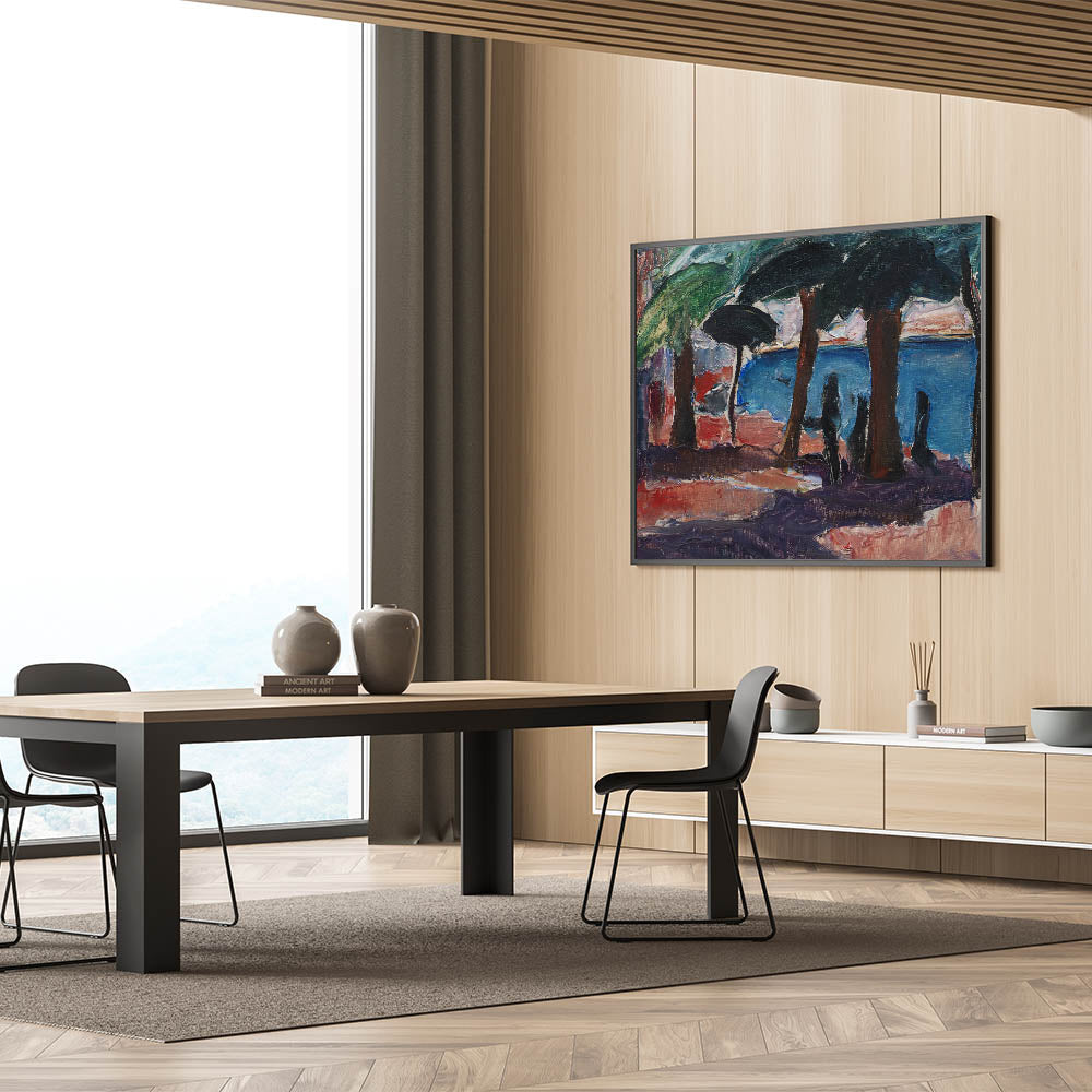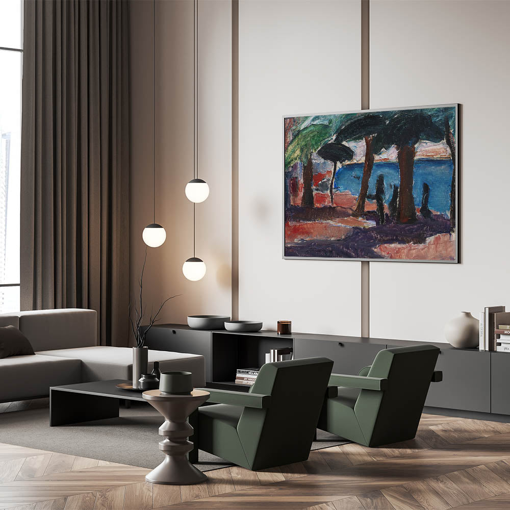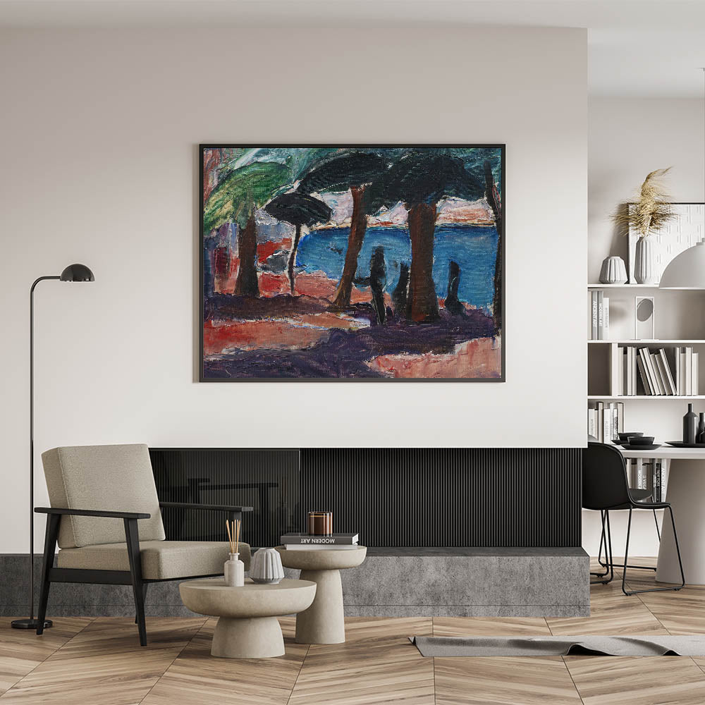 Add a bold, expressive touch to your space with "The Quay, Bandol" Realism Art Print by Jens Adolf Jerichau. This artwork captures a lively coastal scene with rich, dynamic colors and textured brushstrokes. The deep blues of the sea contrast beautifully with earthy reds and greens, creating an energetic portrayal of the quay. Ideal for those who appreciate expressive realism, this piece brings the charm and vibrancy of a seaside setting into your decor, enhancing any room with a unique blend of color and atmosphere.