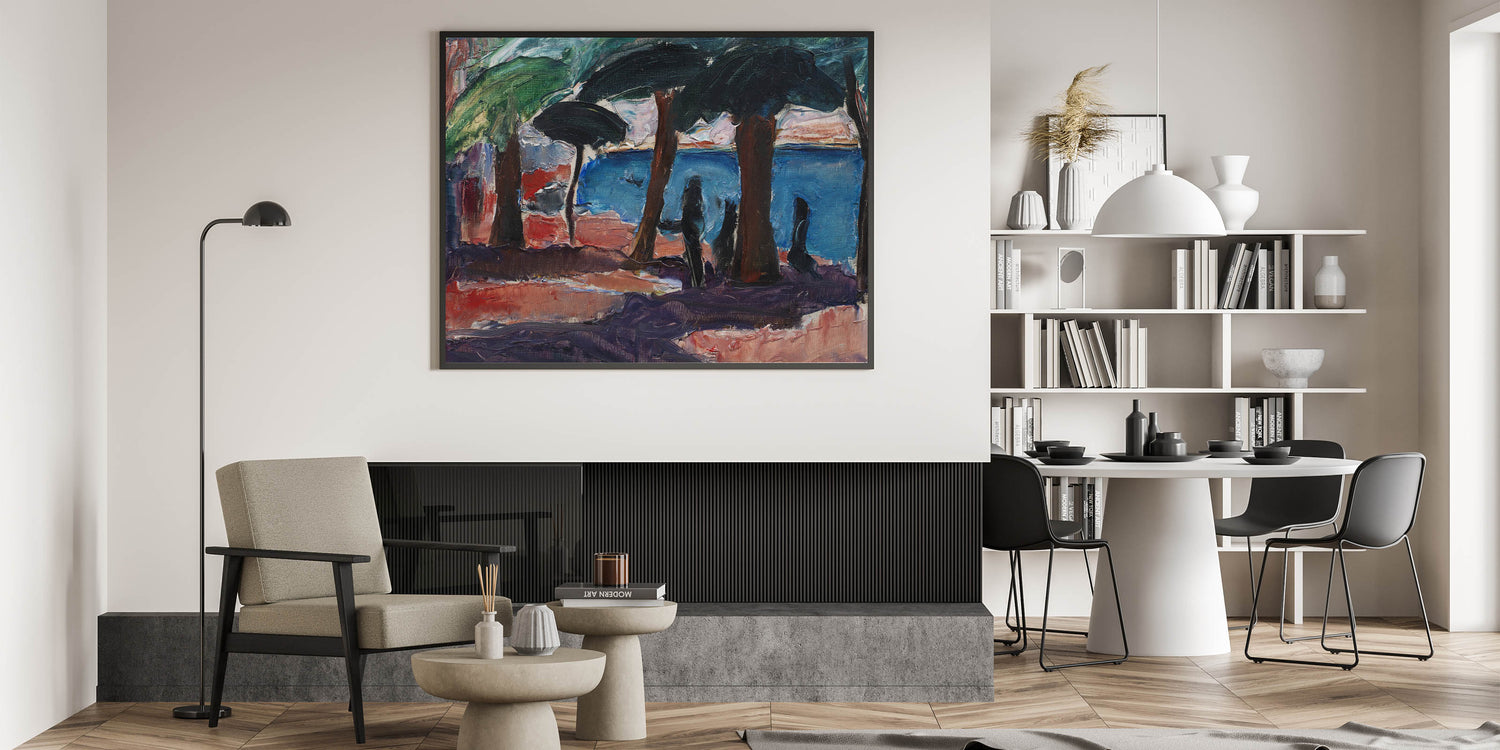 Bring the vibrant essence of coastal life into your home with this expressive art print, ideal for creating a colorful and dynamic atmosphere.