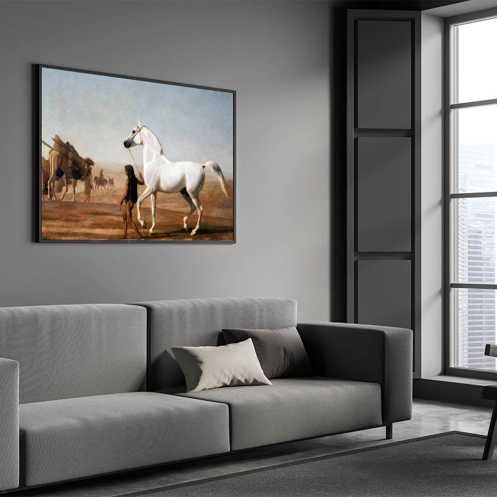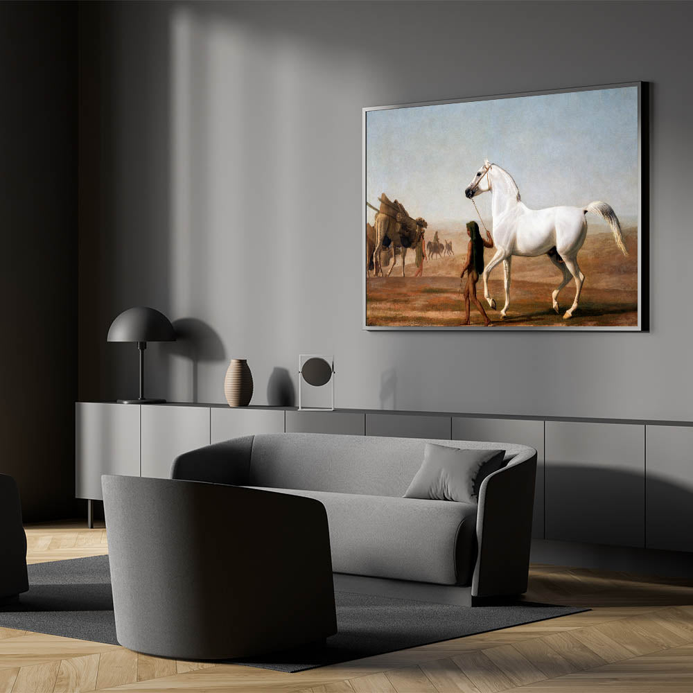 The Wellesley Grey Arabian Realism Art Print - Elegant Desert Canvas