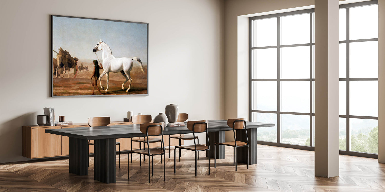- A timeless realism piece, capturing the grace and beauty of Arabian horses