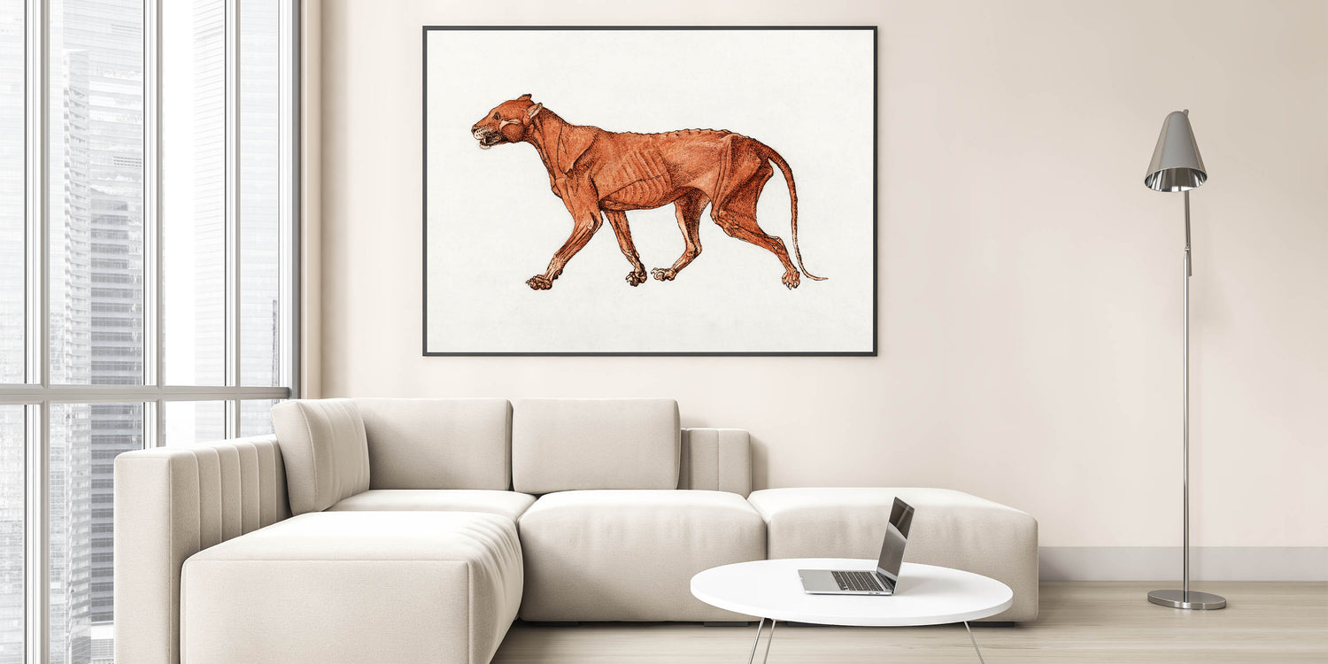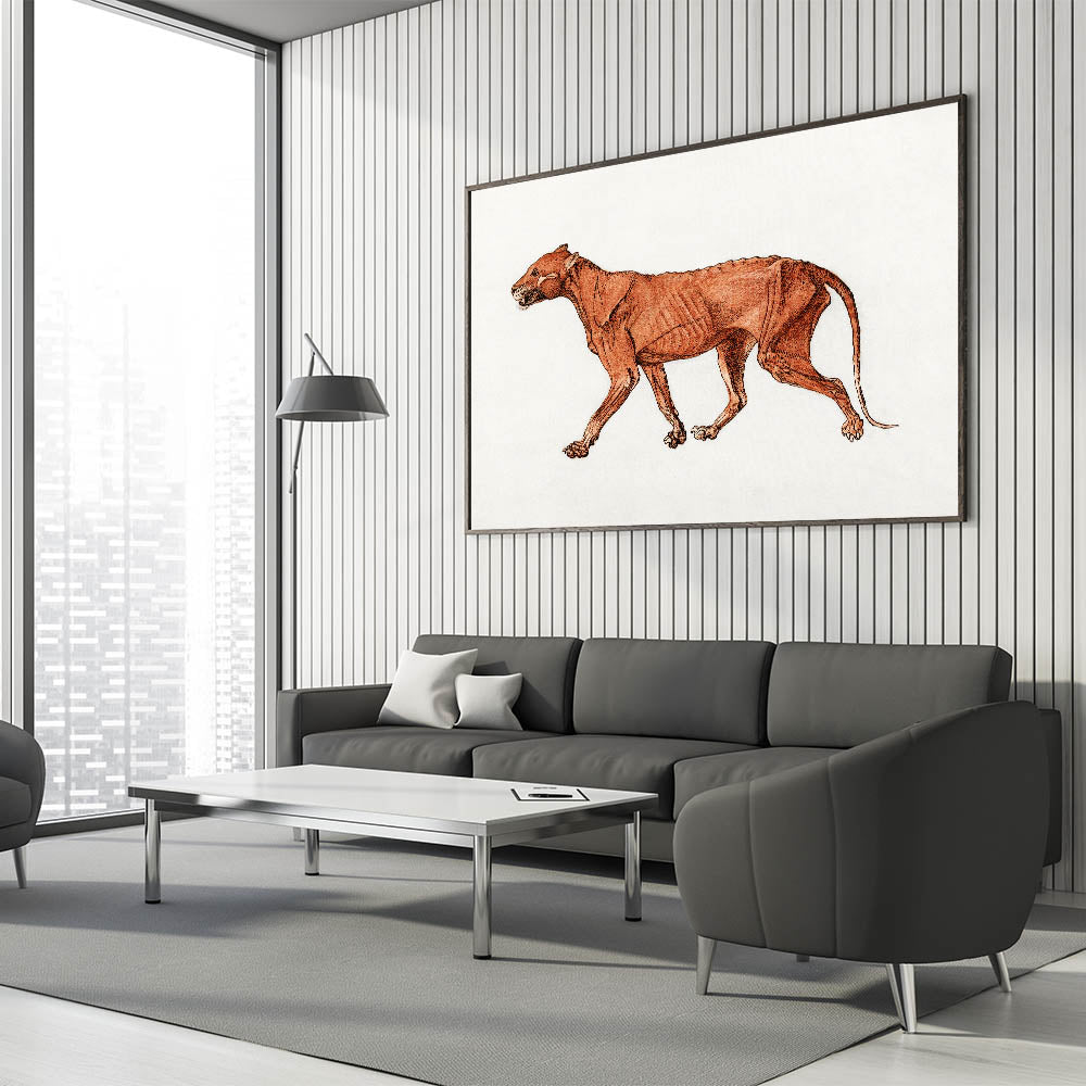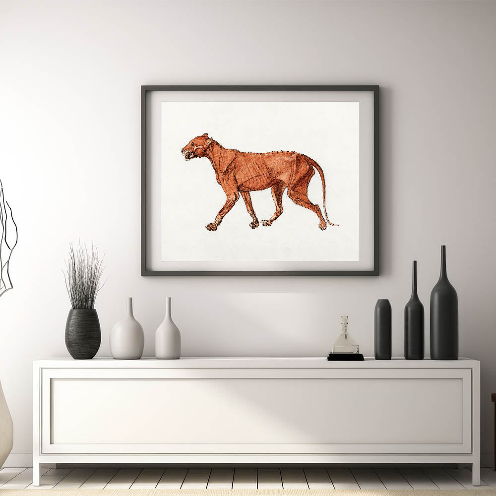 Explore the intricate details of animal anatomy with "Tiger Body, Lateral View" by George Stubbs. This realistic illustration, created between 1795 and 1806, presents the musculature and skeletal structure of a tiger with a remarkable level of scientific precision and artistic talent. Ideal for those who appreciate Realism Art Prints for Home Decor, this piece brings a unique blend of art and science into any space, perfect for natural history enthusiasts and art collectors alike.