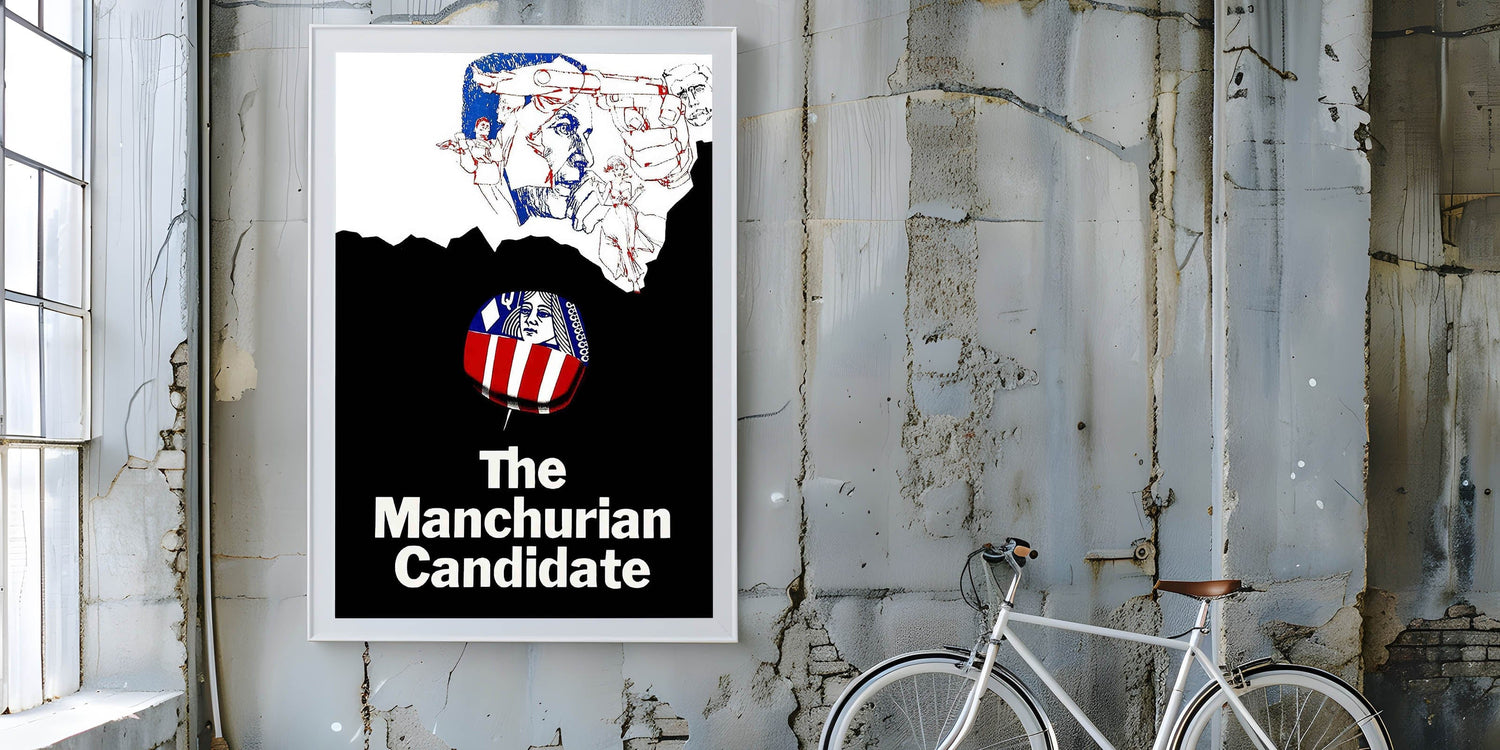Step into the world of Cold War suspense and political intrigue with this The Manchurian Candidate vintage movie poster from the 1960s. Featuring a bold and minimalist design, this classic 60s movie print captures the paranoia, mind control, and conspiracy themes of one of Hollywood’s most gripping psychological thrillers. With its dramatic red, white, and blue color palette and surreal illustration style, this retro cinema art from the 1960s is a must-have for collectors of classic Hollywood and political film enthusiasts.