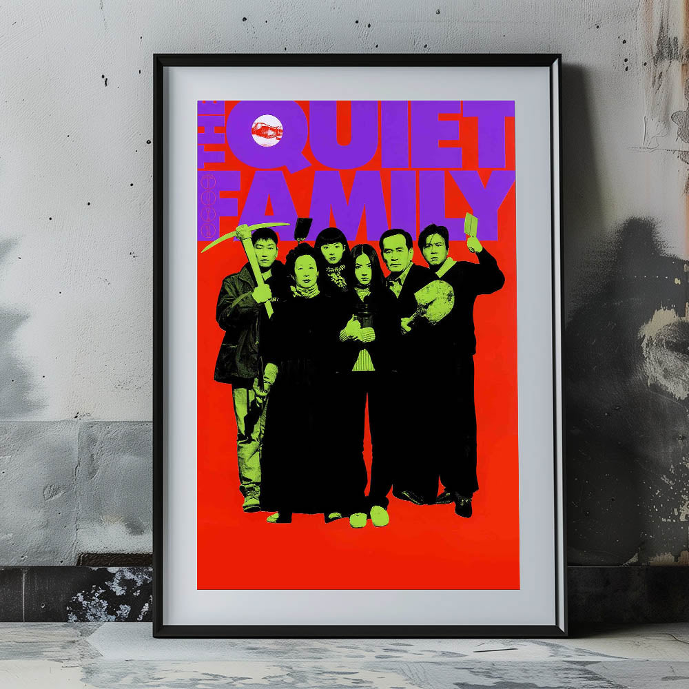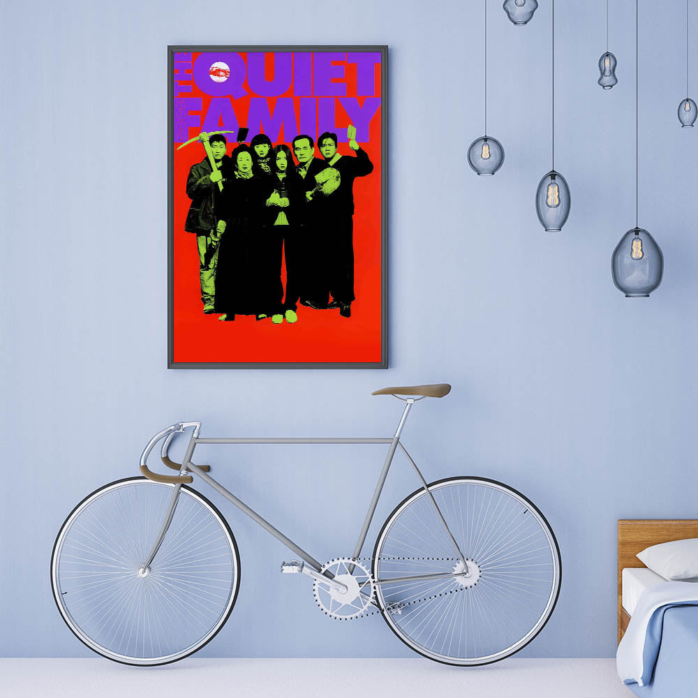 Add a bold and eerie touch to your collection with this 1990s vintage movie poster of The Quiet Family. A cult-favorite dark comedy horror from South Korea, this classic 90s film art features an eye-catching pop-art design with vivid colors and striking contrast. The retro 1990s movie print captures the film’s twisted humor and suspenseful storytelling, making it a must-have for horror and international film fans.