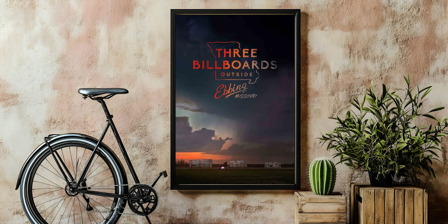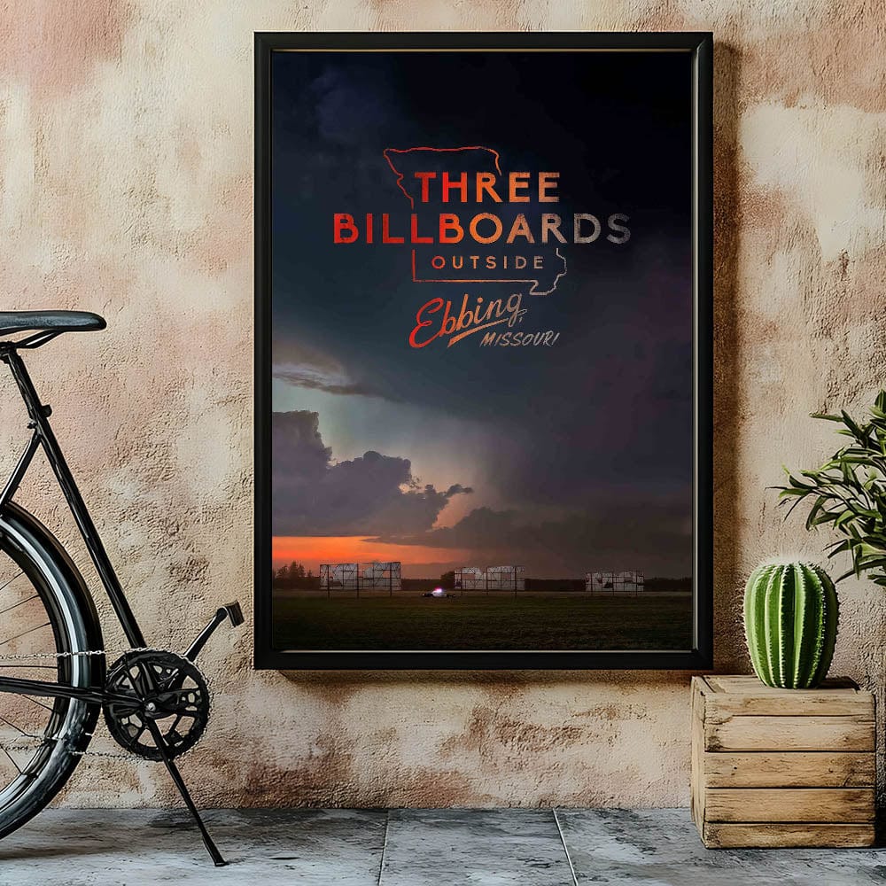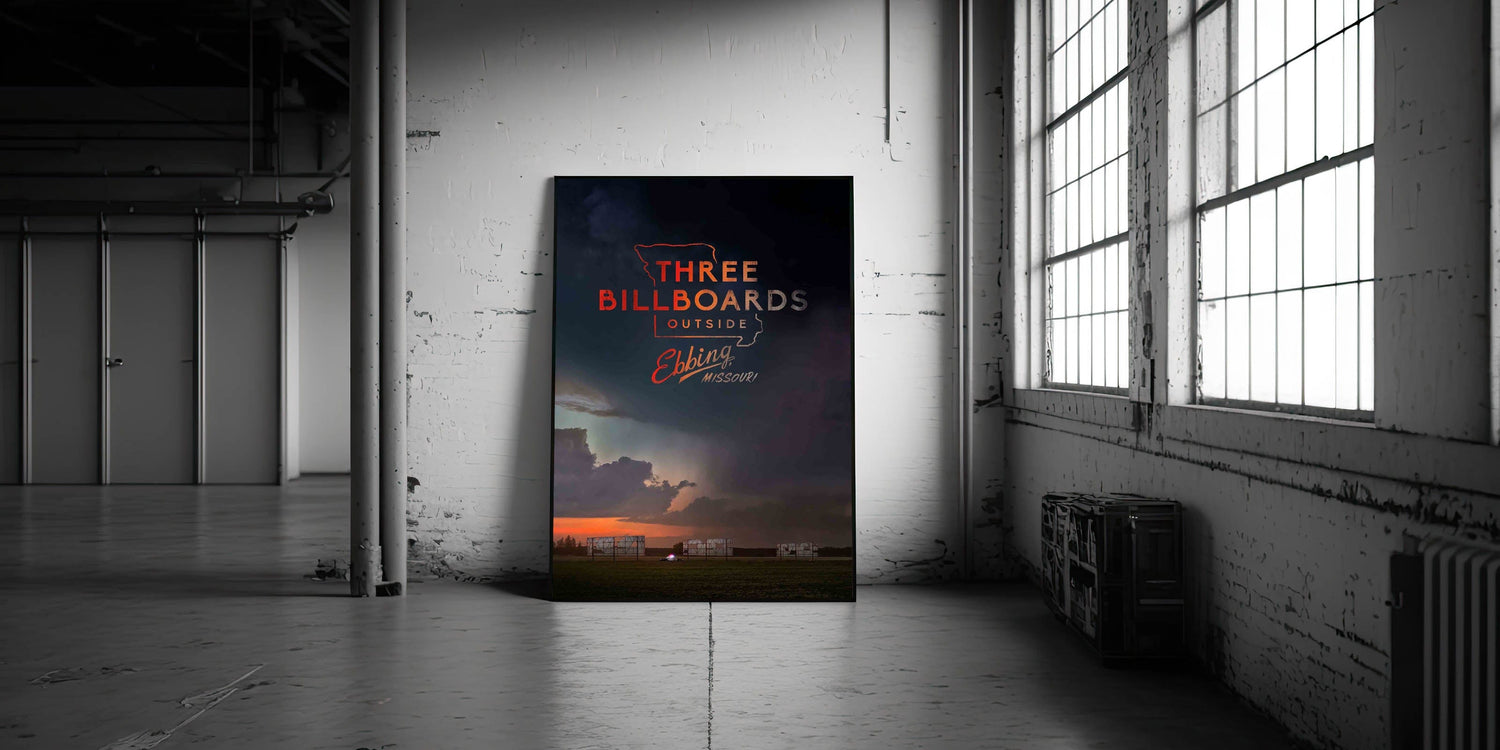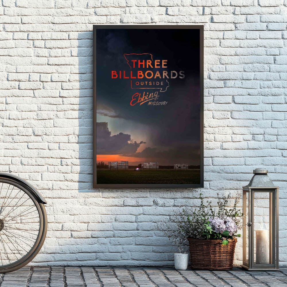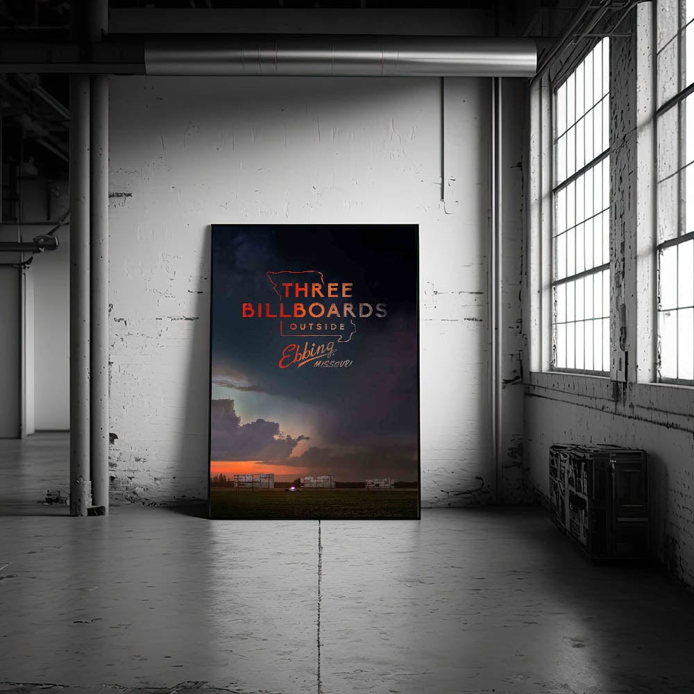 Add a touch of cinematic depth to your decor with this vintage 2010s movie poster from Three Billboards Outside Ebbing, Missouri. Featuring a dramatic, moody sunset and three ominous billboards standing in an open field, this iconic 2010s cinema art captures the film’s raw intensity and gripping storytelling. With its dark, atmospheric tones, this classic movie poster print is perfect for fans of retro movie posters and thought-provoking films.