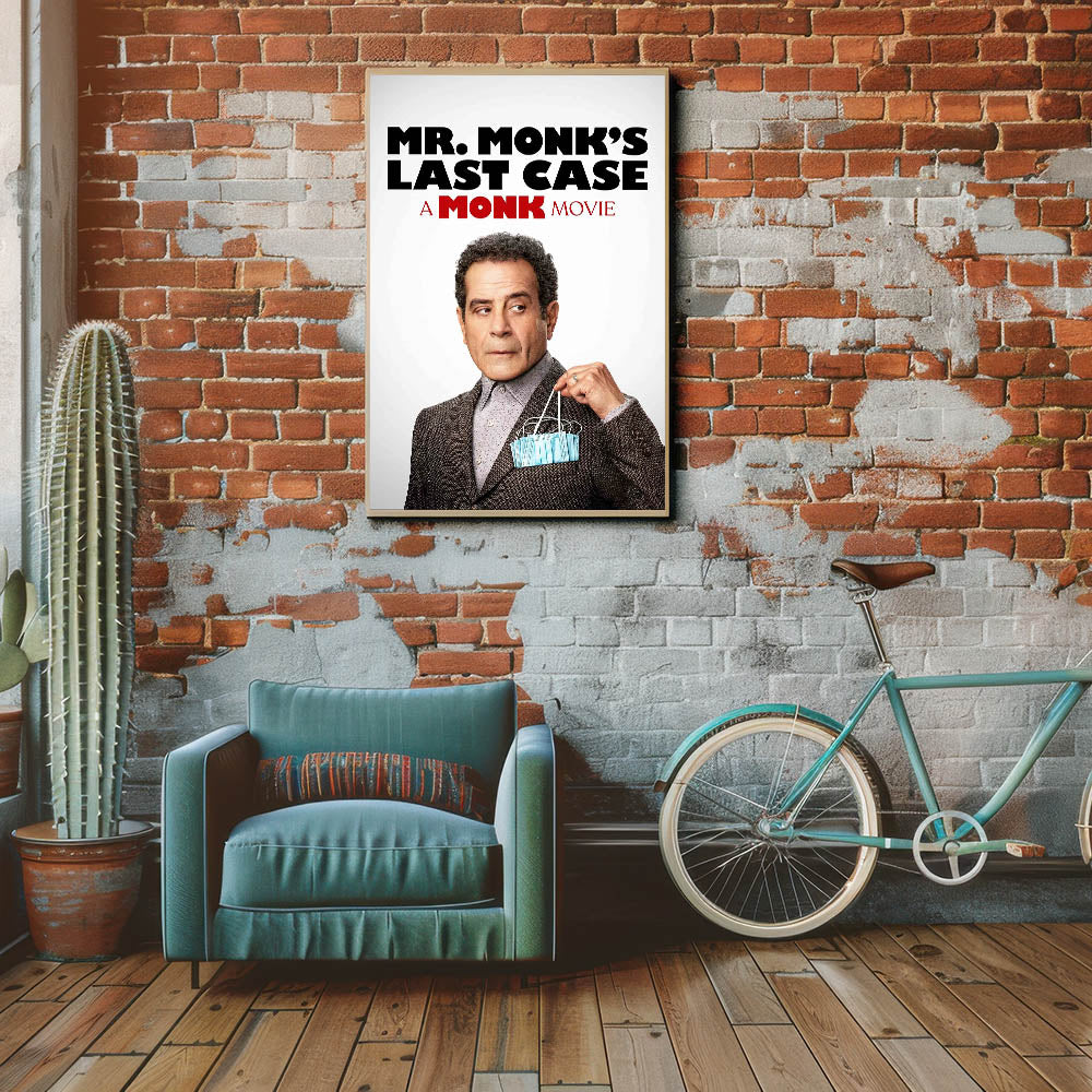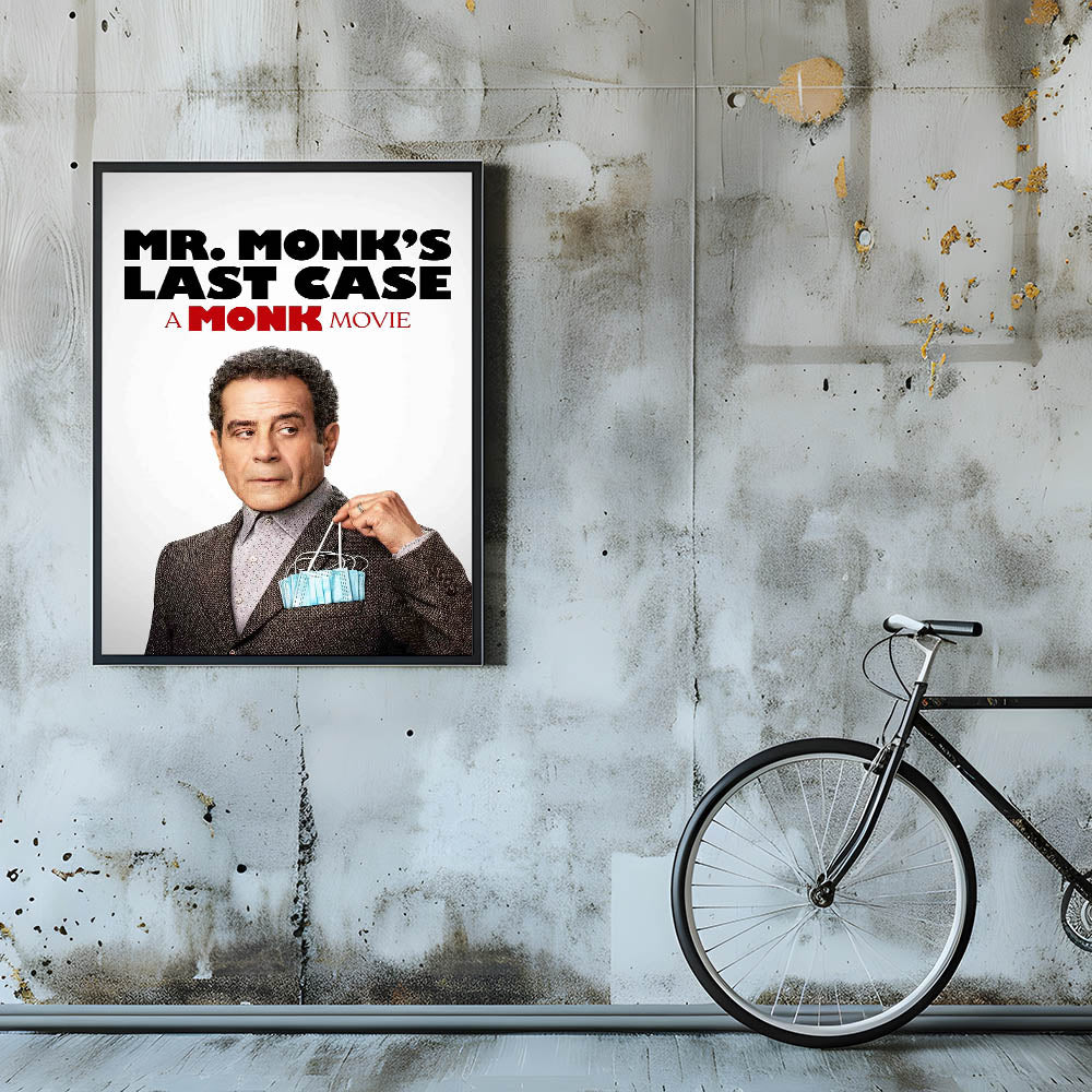 Celebrate the return of everyone's favorite obsessive-compulsive detective with this iconic Mr. Monk's Last Case vintage movie poster. This retro film art captures the charm of the beloved character in a nostalgic style, perfect for fans of classic television and movie memorabilia.