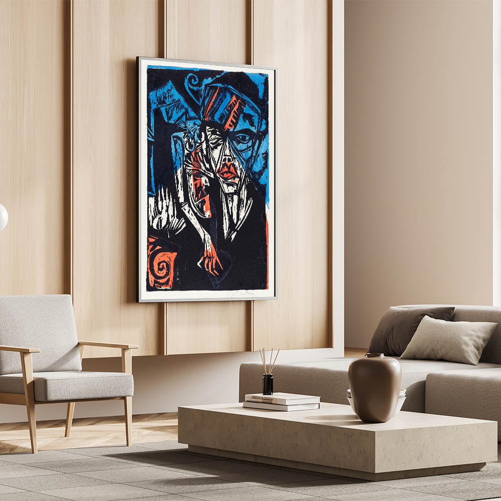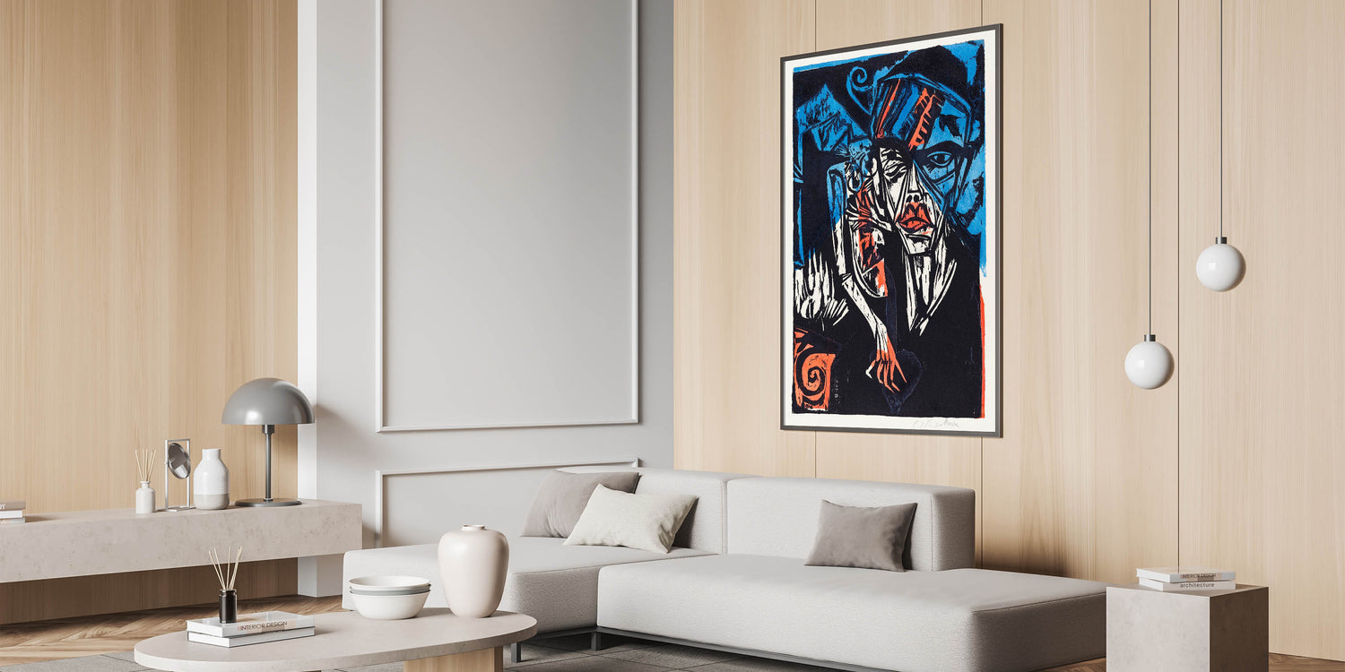 Dive into the emotive world of Expressionism with this dramatic artwork titled The Agonies of Love. Created in bold tones of blue, black, and fiery red, this piece captures the raw intensity and complexities of human emotion. The dynamic composition and abstract forms reflect the hallmark style of modern Expressionism, making it a powerful statement piece for any space.