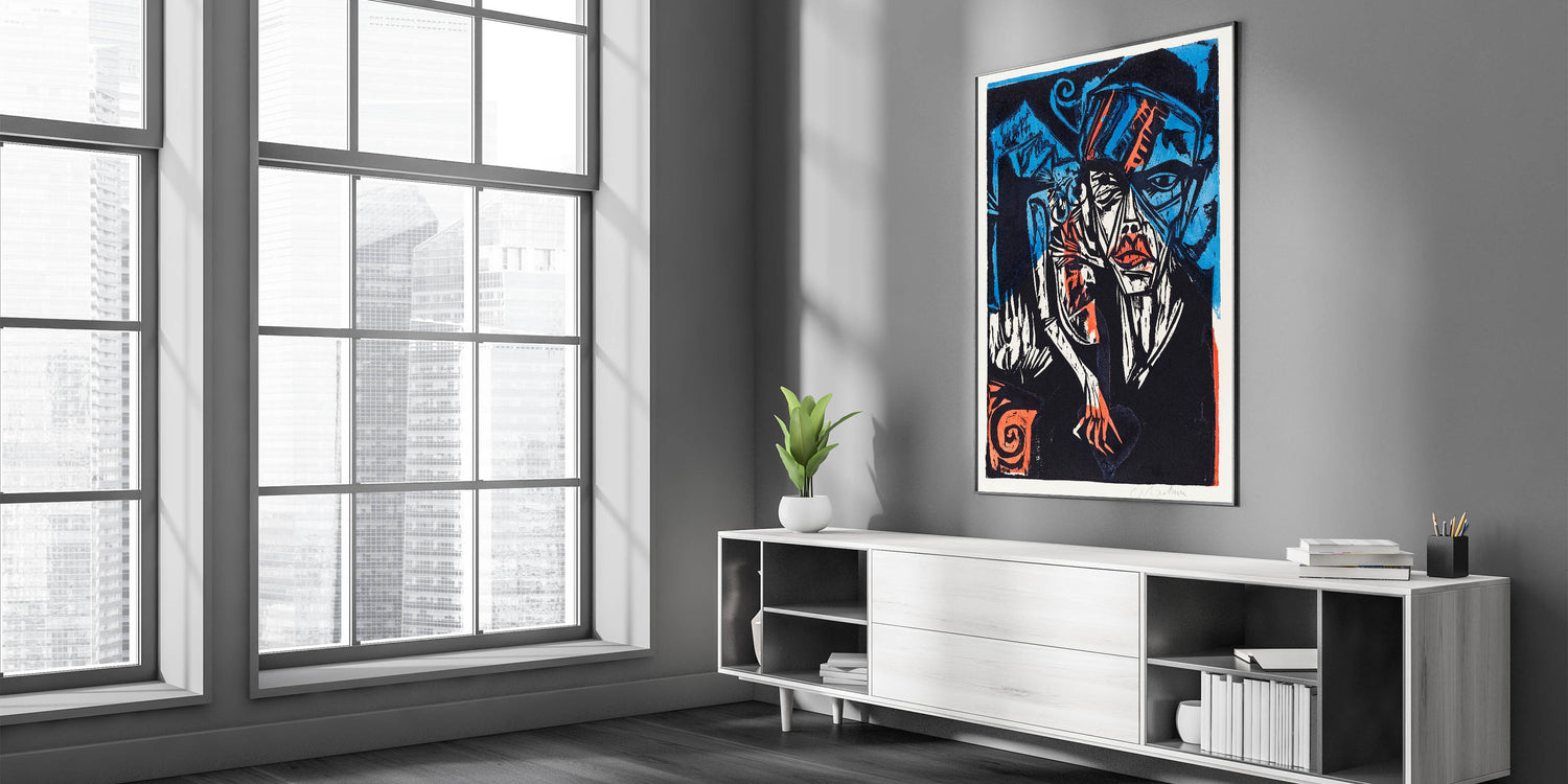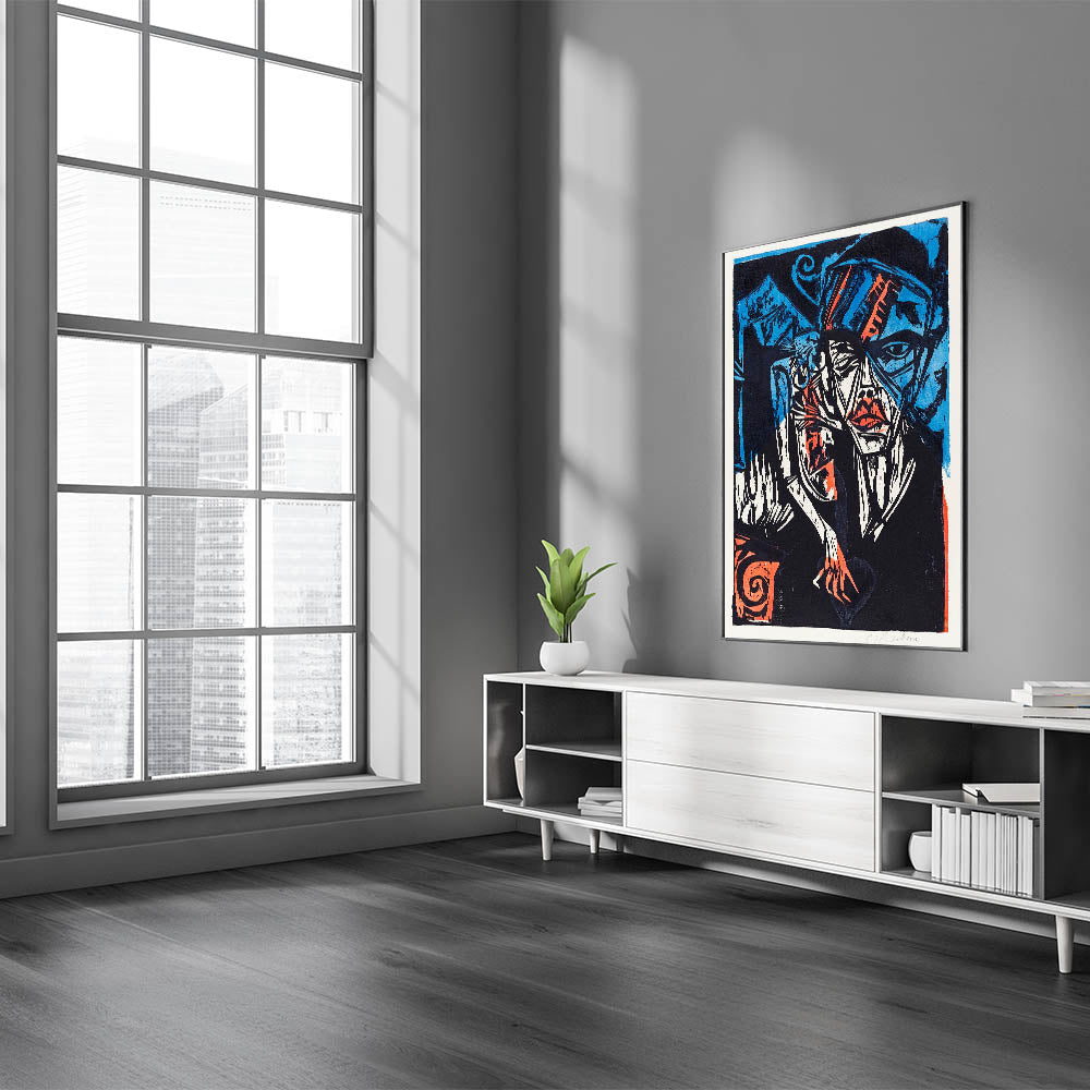 Enhance your decor with this vibrant Expressionist painting that combines dramatic colors and evocative themes. Whether displayed in your home or office, this artwork brings energy and depth to any environment.