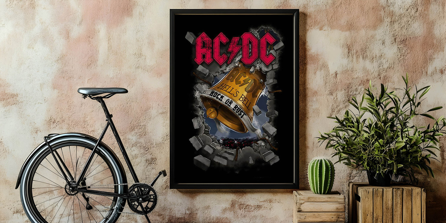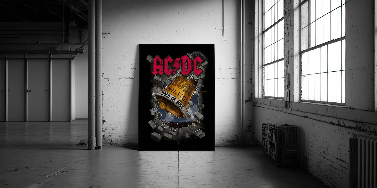 Step into the electrifying world of rock with this AC/DC Hell's Bell retro wall art. Featuring the iconic Rock or Bust album cover, this bold and powerful design captures the essence of AC/DC’s rebellious spirit and legendary sound. This vintage prints artwork brings a classic touch to your retro aesthetic and serves as the perfect homage to one of the greatest rock bands of all time.