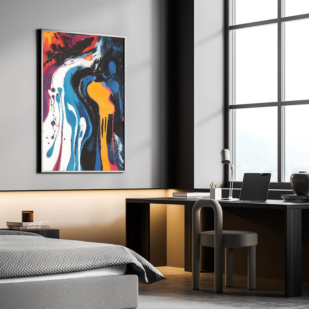 Ignite your space with the power of color and movement with this Abstract Expressionist Art for Home Decor. This Original Abstract Expressionist Painting features a dynamic fusion of blue, orange, black, red, and white, creating an electrifying composition that commands attention. The fluid brushstrokes and bold drips of this Expressionist Canvas Wall Art embody raw emotion and artistic energy, making it a statement piece for contemporary interiors.