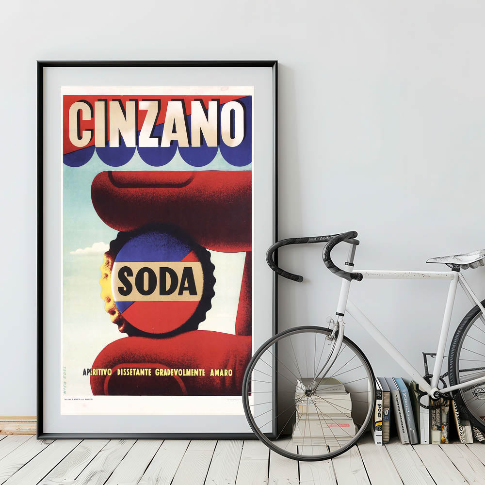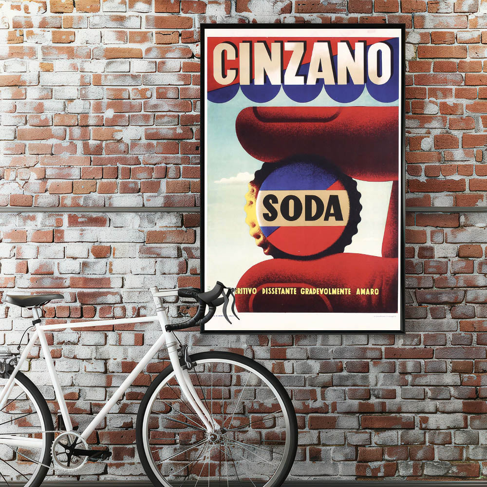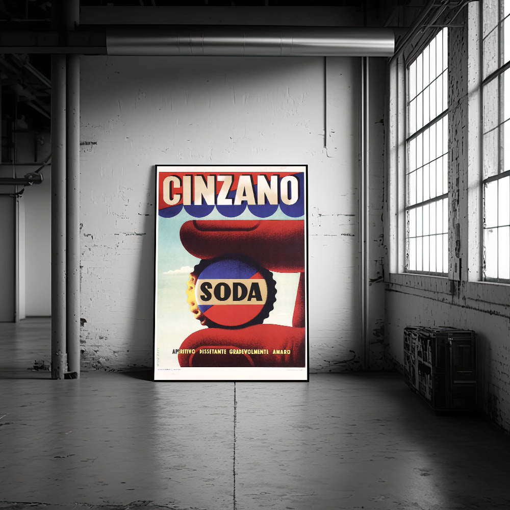 - High-quality reproduction of a classic Cinzano Soda advertisement