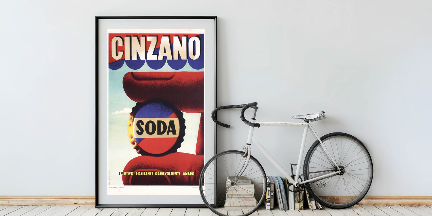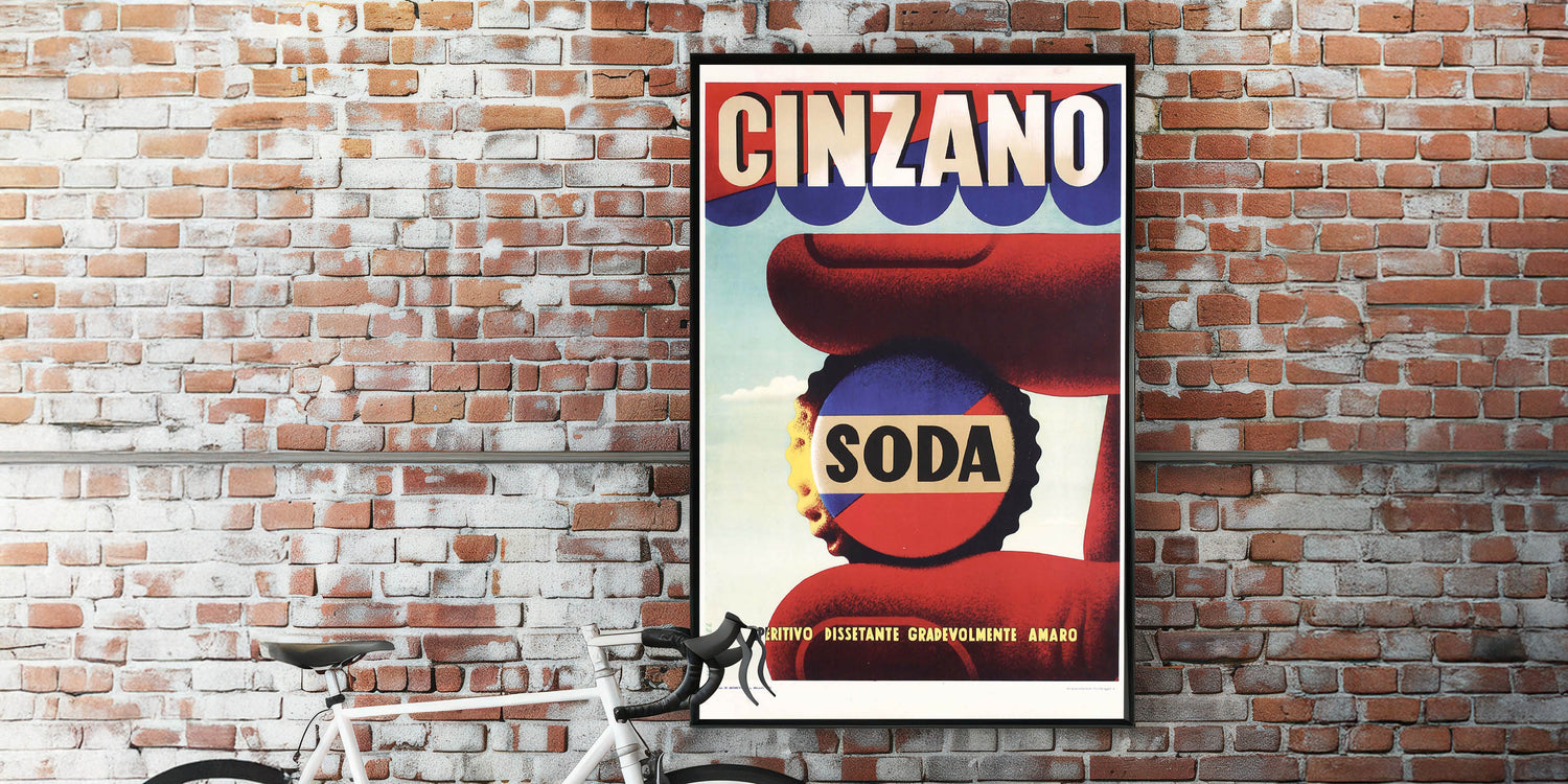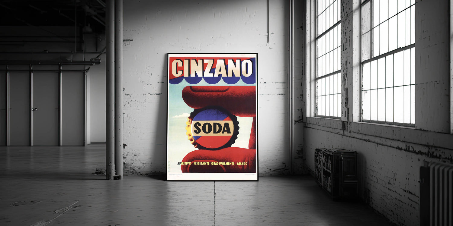 - High-quality reproduction of a classic Cinzano Soda advertisement