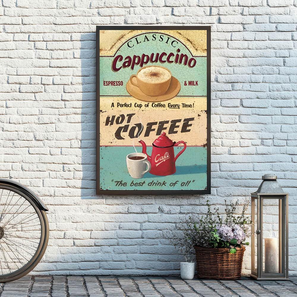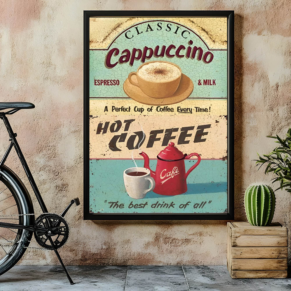 Classic Cappuccino & Hot Coffee Vintage Retro Poster Art – Coffee Print