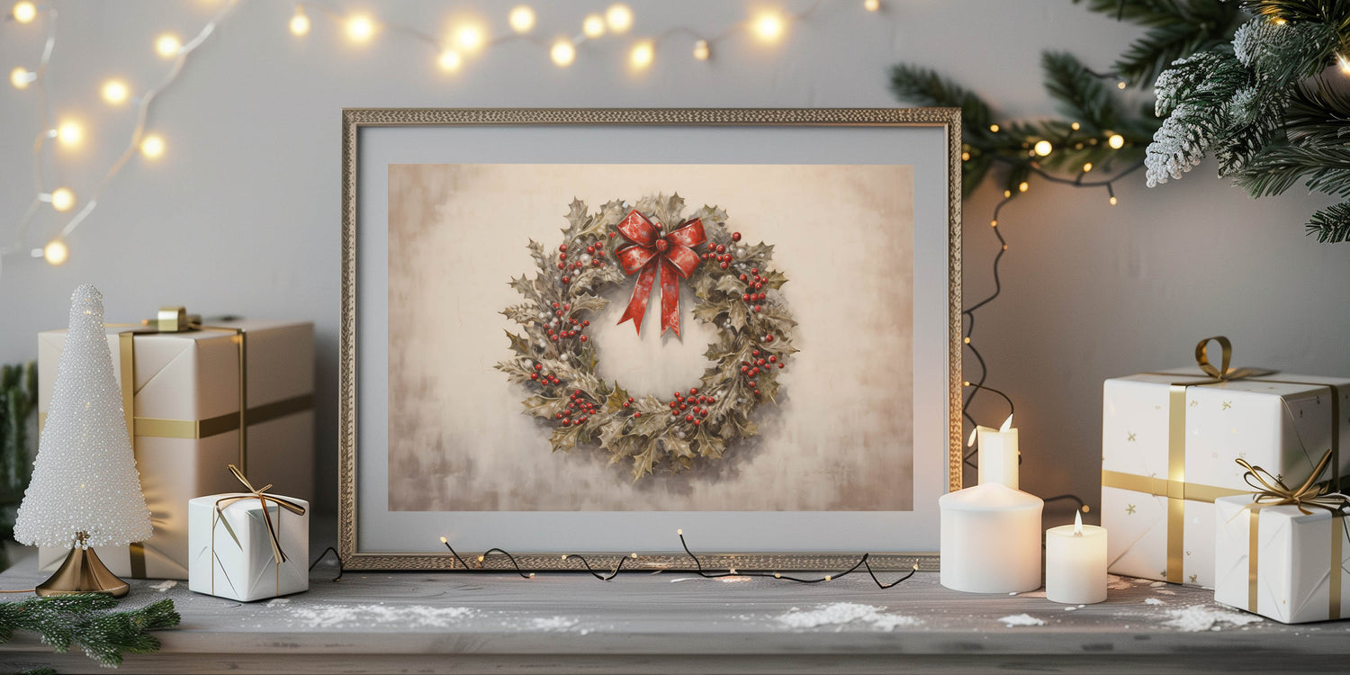 - Traditional Holiday Wreath Design – A festive mix of holly, berries, and a vibrant red bow.