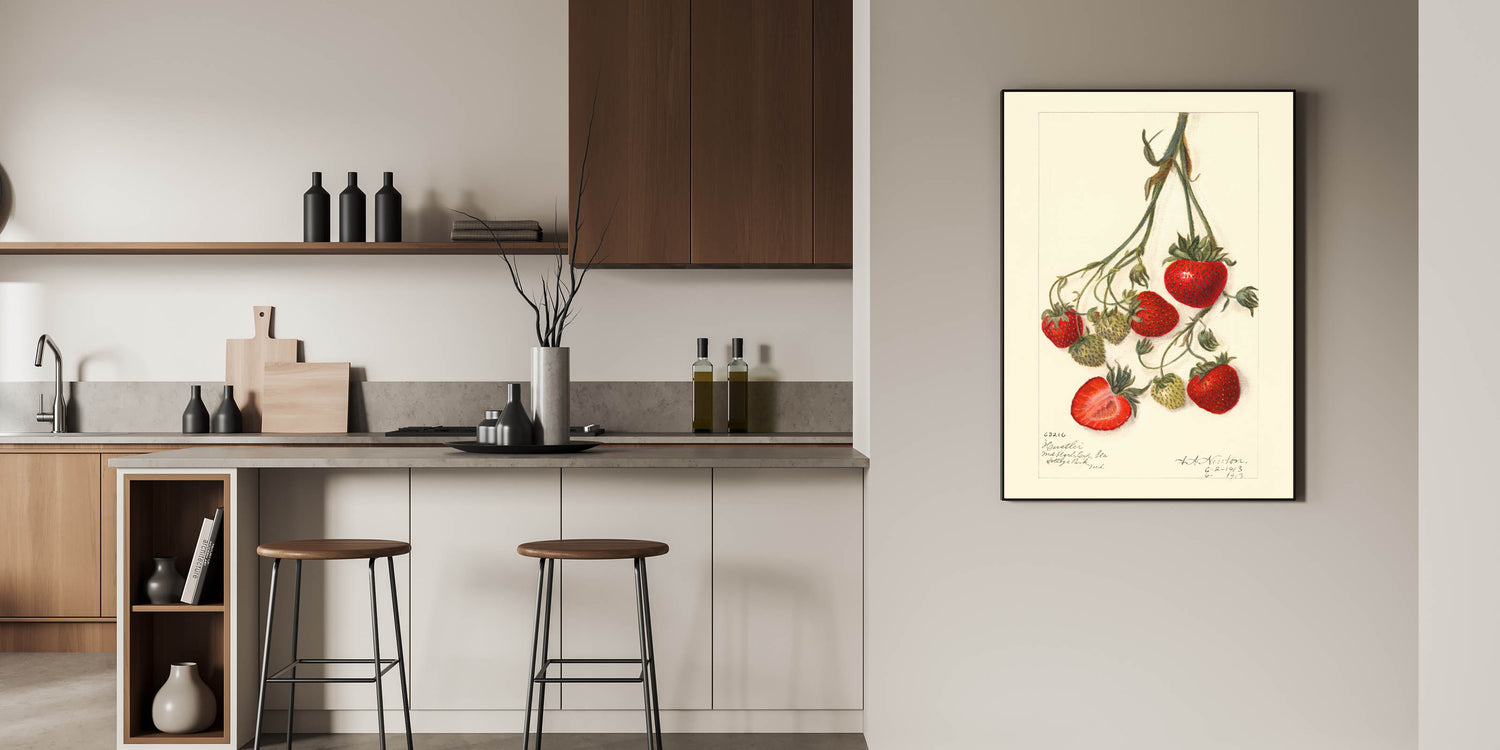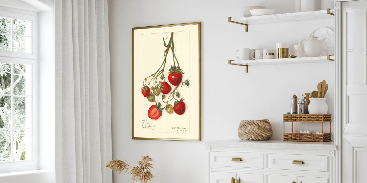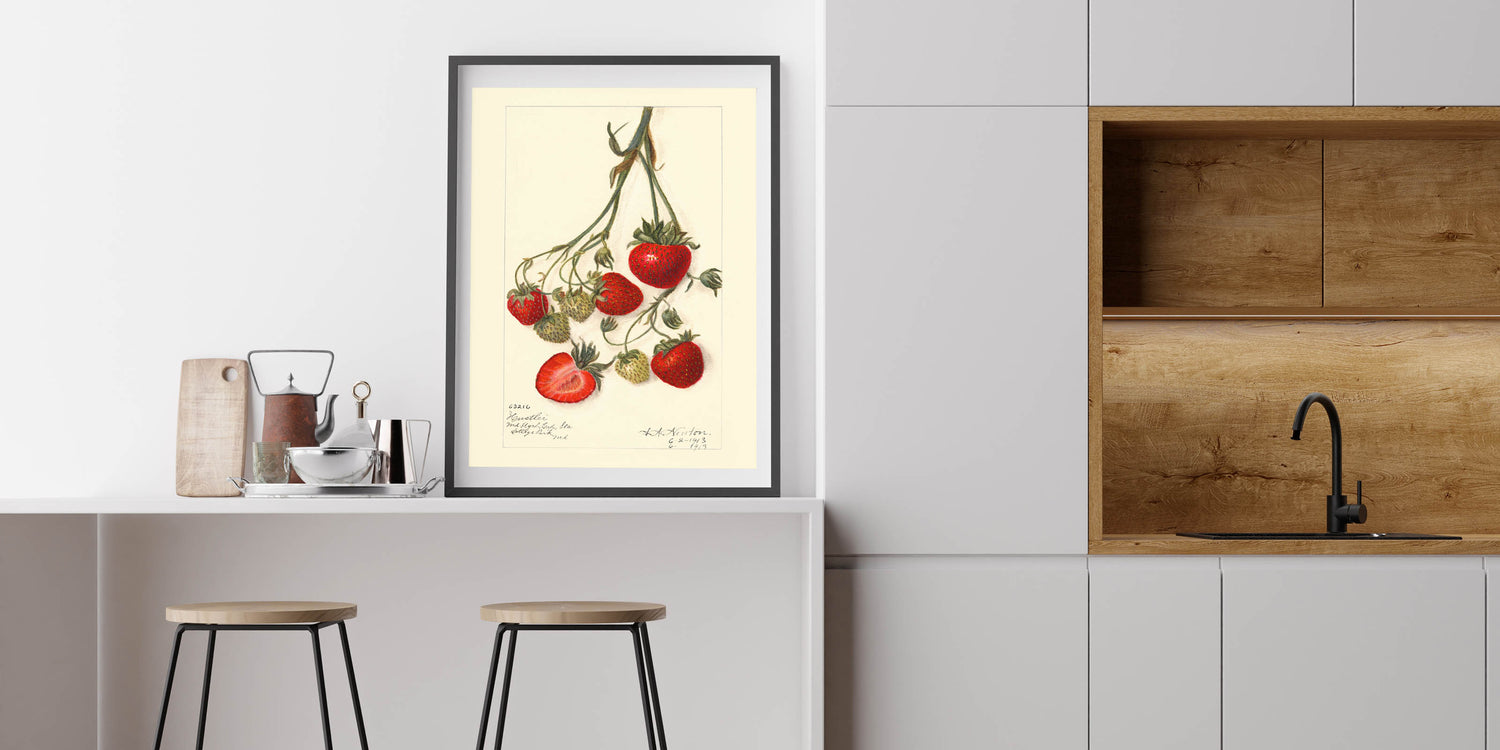 Classic Strawberry Botanical Prints – Timeless Kitchen Wall Art