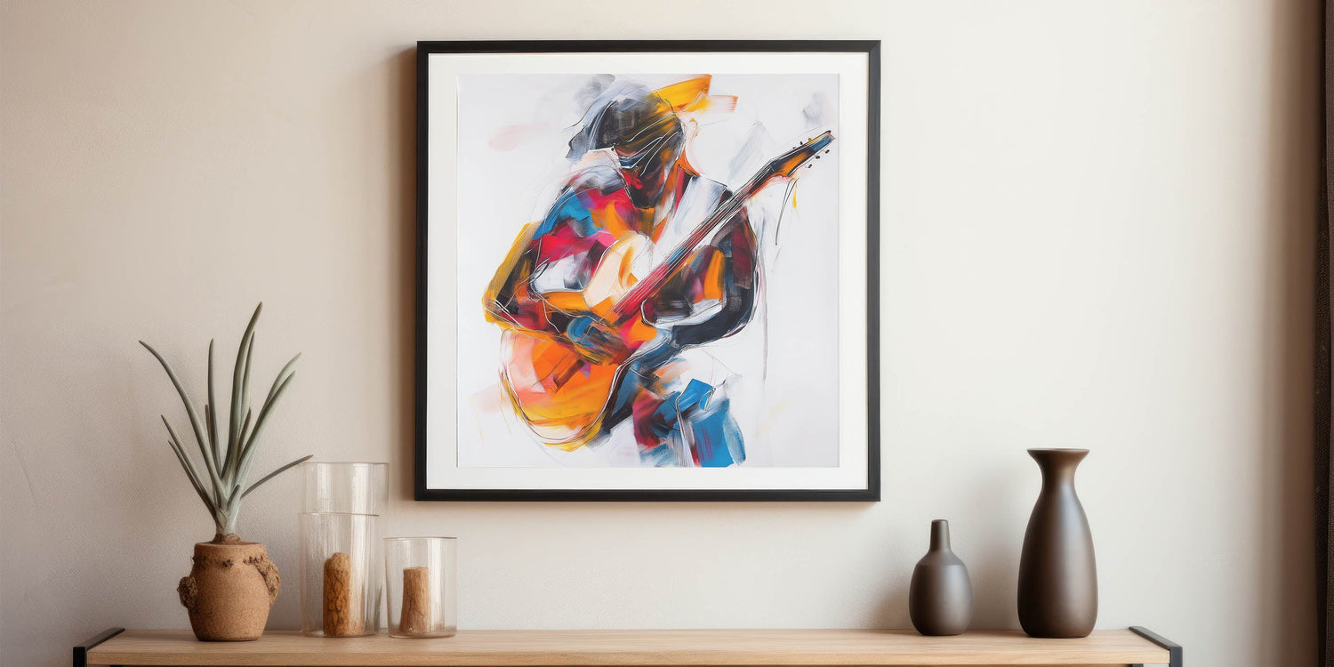 Colorful Abstract Figurative Wall Art – Expressive Guitarist Painting