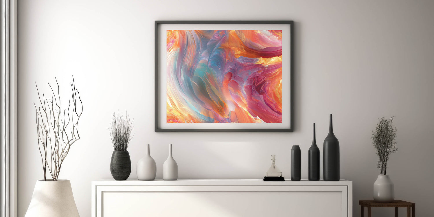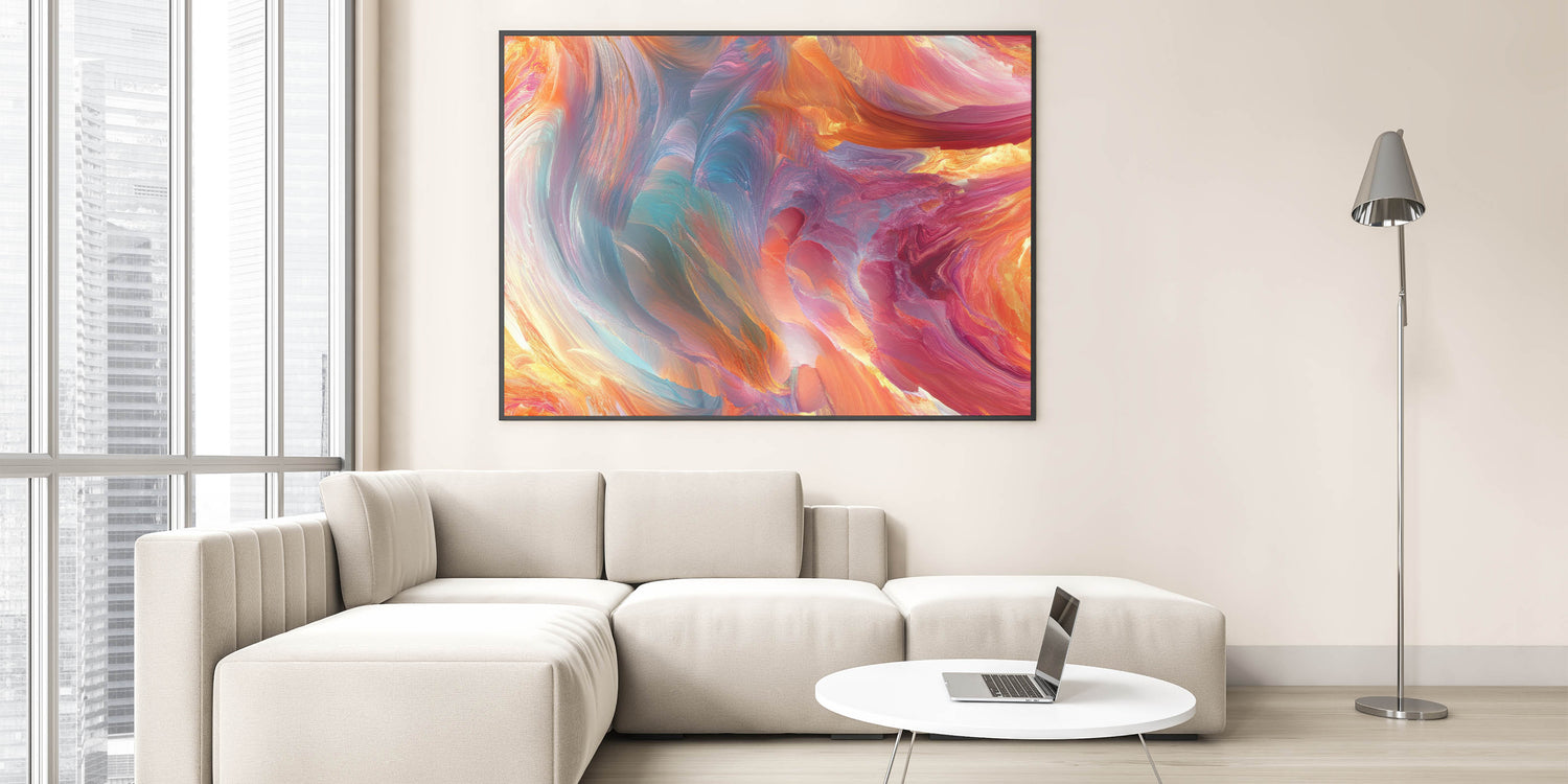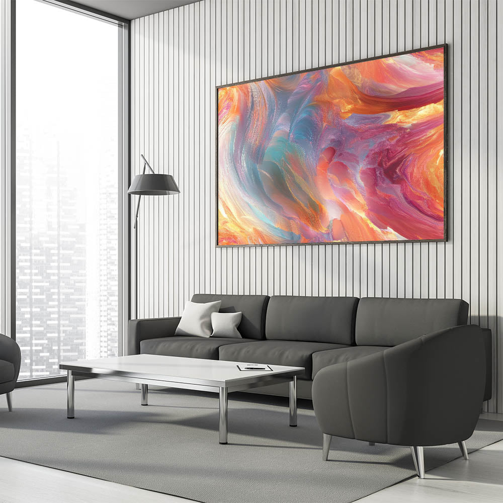 This piece is a standout among large abstract wall decor for living spaces and a perfect match for contemporary abstract art pieces for interior design. Let color and emotion flow freely on your wall with this vibrant and captivating design.