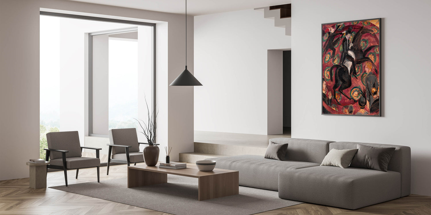 Add the dramatic flair of the Expressionist movement to your space with Ernst Ludwig Kirchner's Circus Rider. This energetic masterpiece captures the chaotic and thrilling atmosphere of a circus, with a rider at the center of a swirling, colorful scene. Kirchner's dynamic brushstrokes and bold use of red, orange, and green create a sense of movement and excitement, making this artwork a striking addition to any modern or eclectic interior.