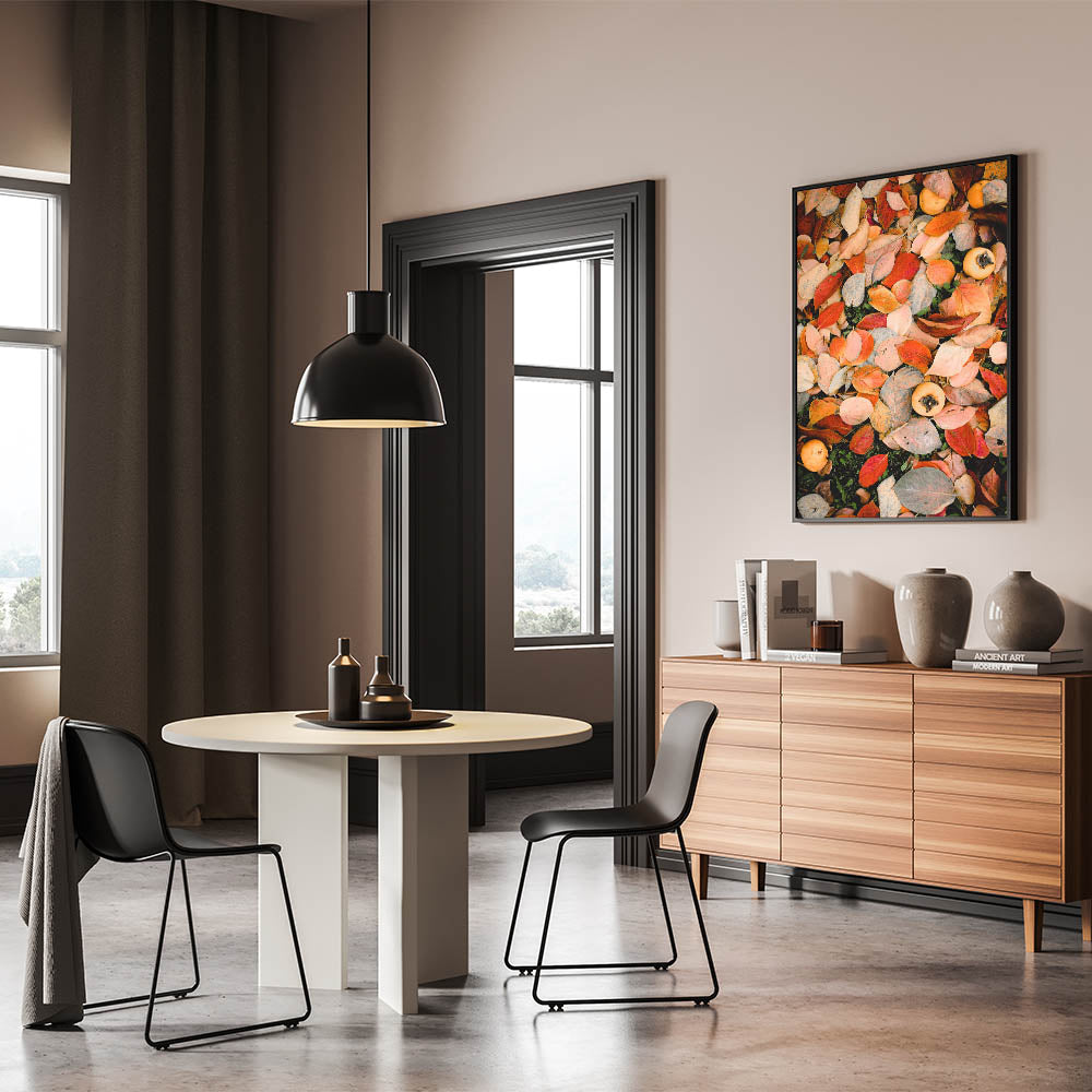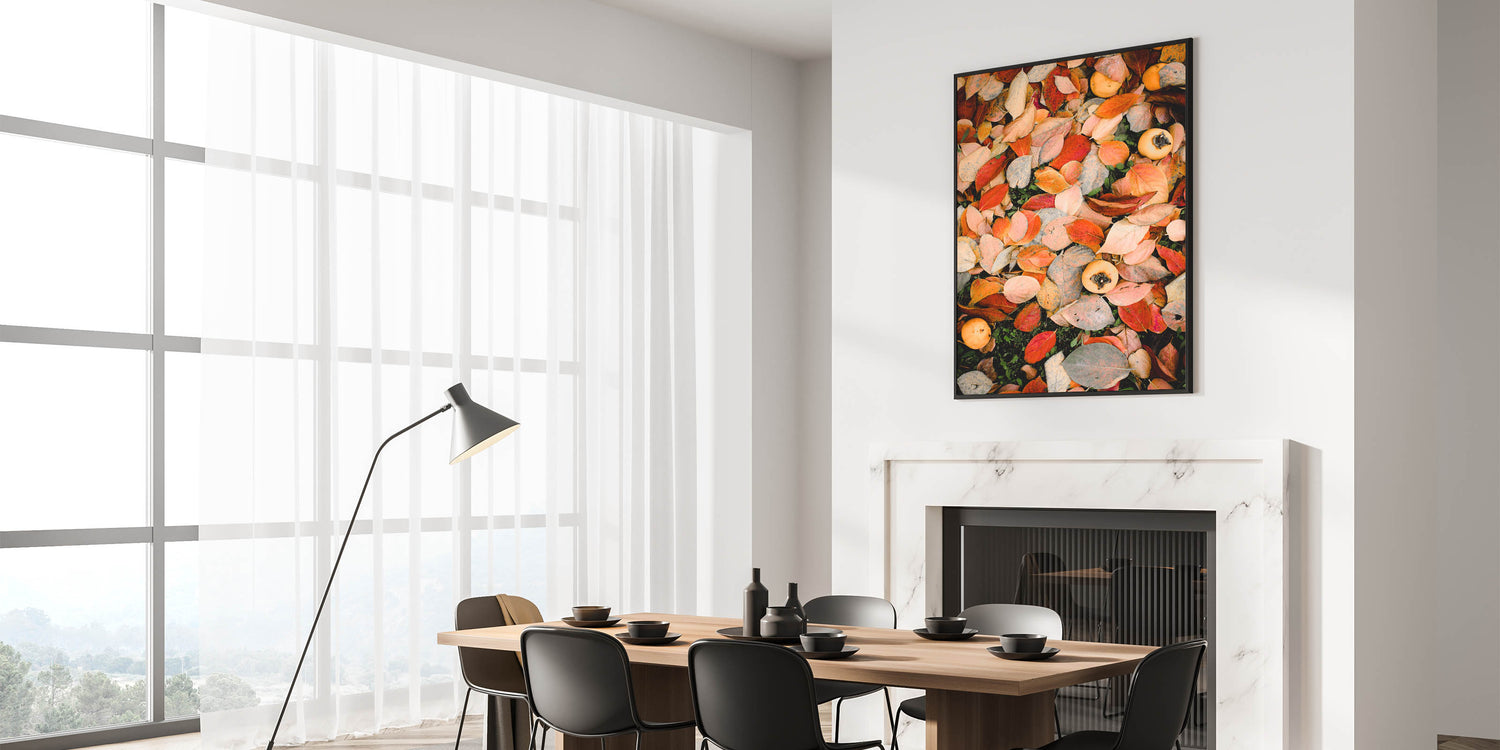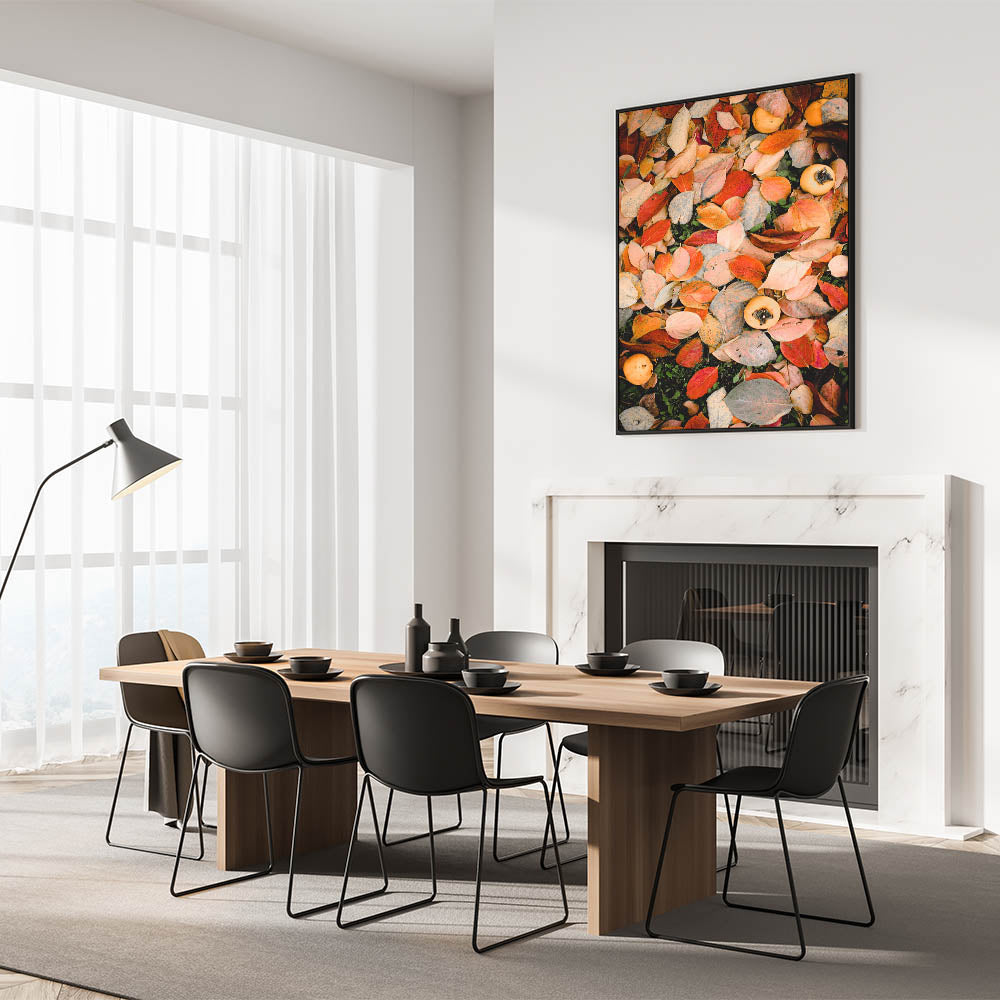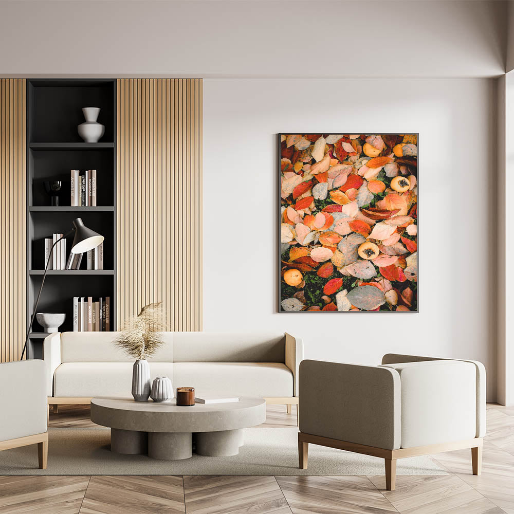 Celebrate the beauty of the season with this fall canvas art, featuring a rich composition of autumn leaves in shades of red, orange, and beige. The scattered persimmons add a rustic, nature-inspired charm, making this autumn wall art a perfect piece for those who love the warmth of fall. Whether you’re refreshing your home decor or adding a seasonal touch, this fall wall decor brings an inviting, cozy feel to any space.