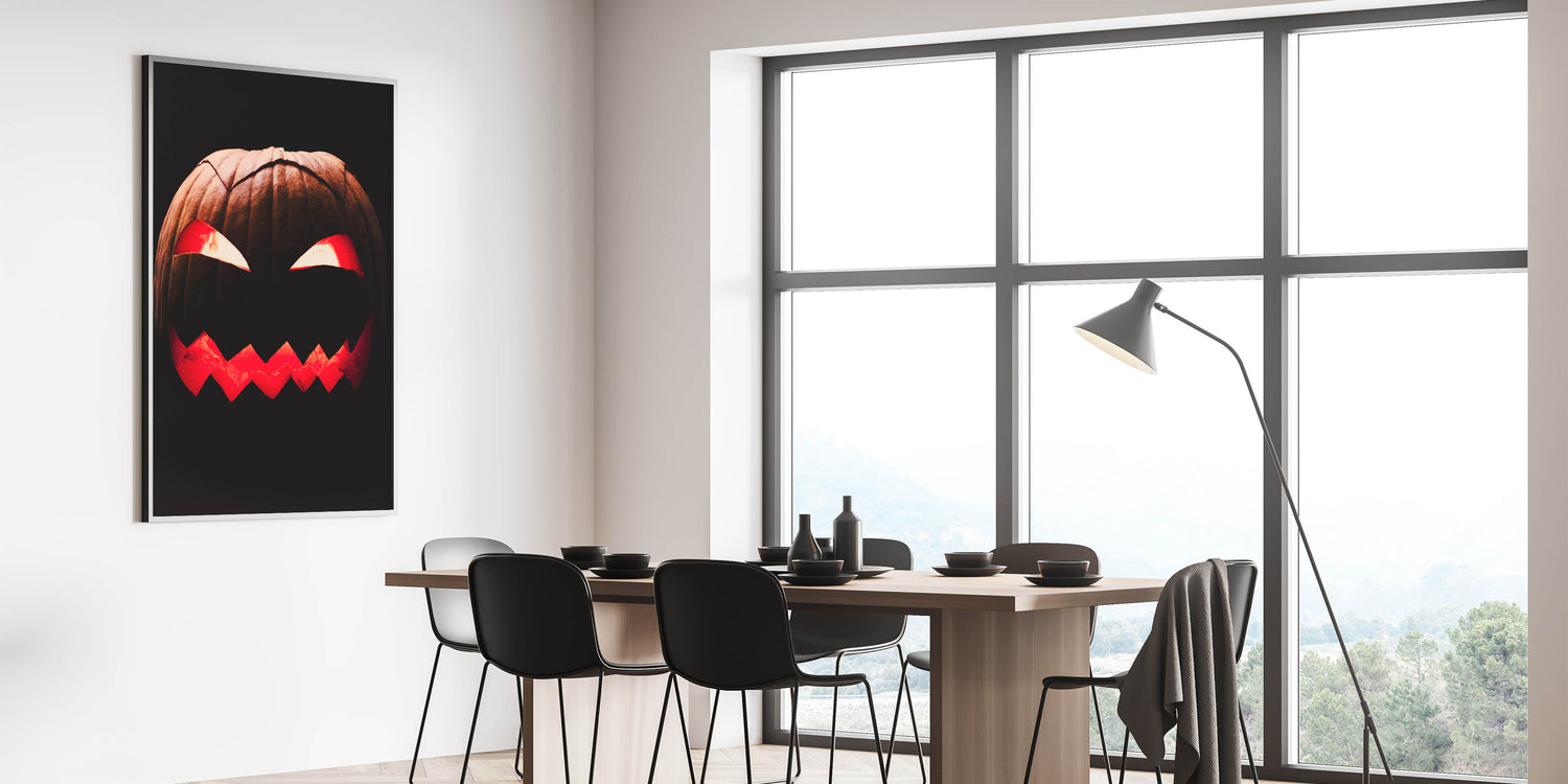 This fall art print is an eye-catching addition for those who love Halloween-inspired decor. Whether displayed as a seasonal highlight or kept year-round for a bold, eerie aesthetic, this autumn canvas art transforms your space into a dark and mysterious haven.