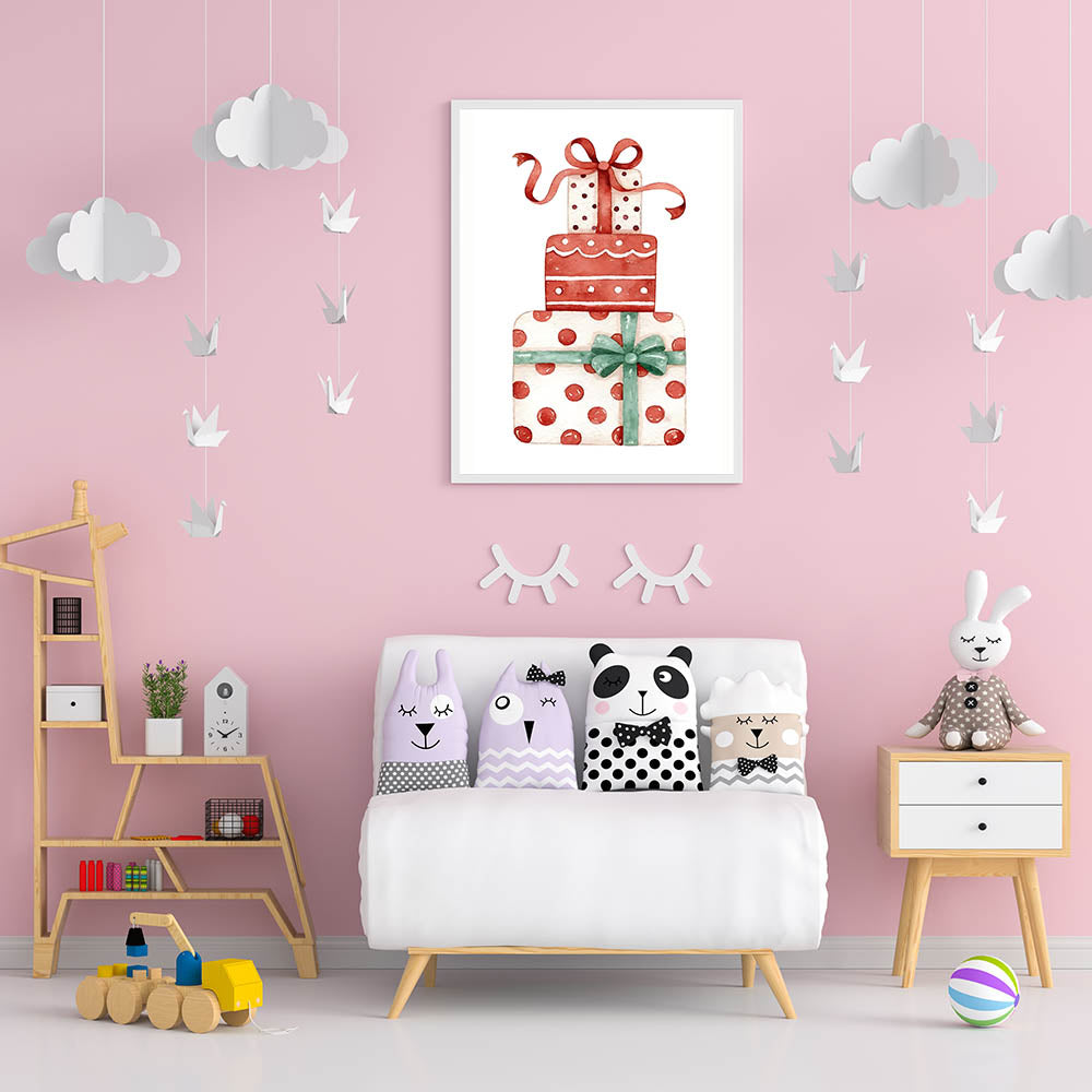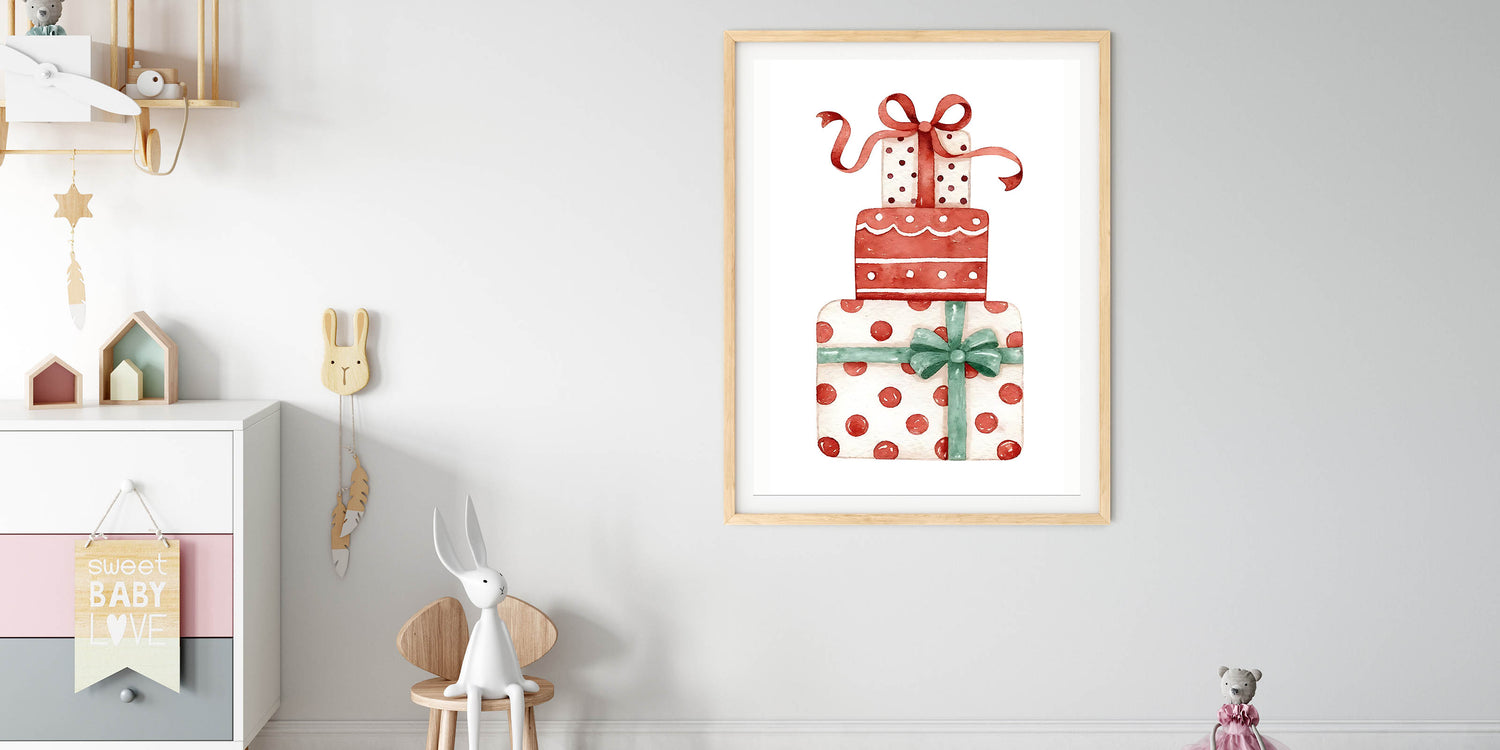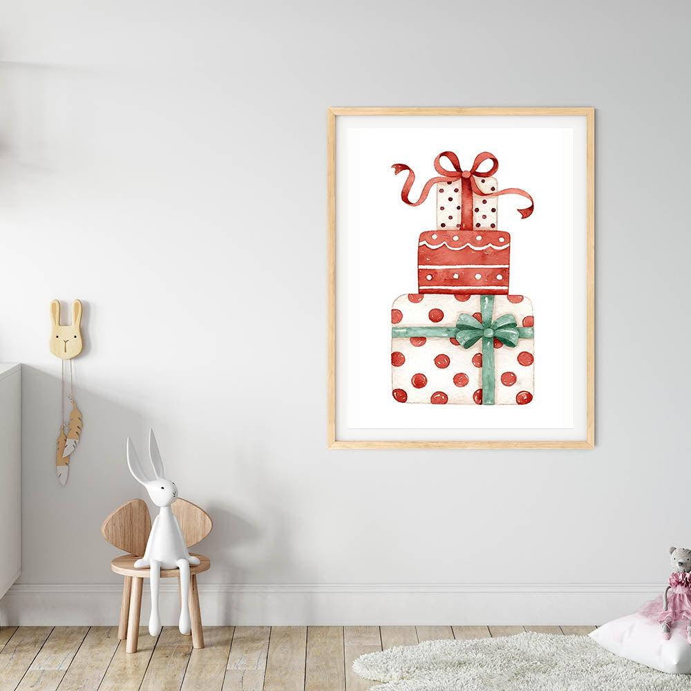 Festive Gift Stack Girls Room Wall Art – Kids Room Art Print