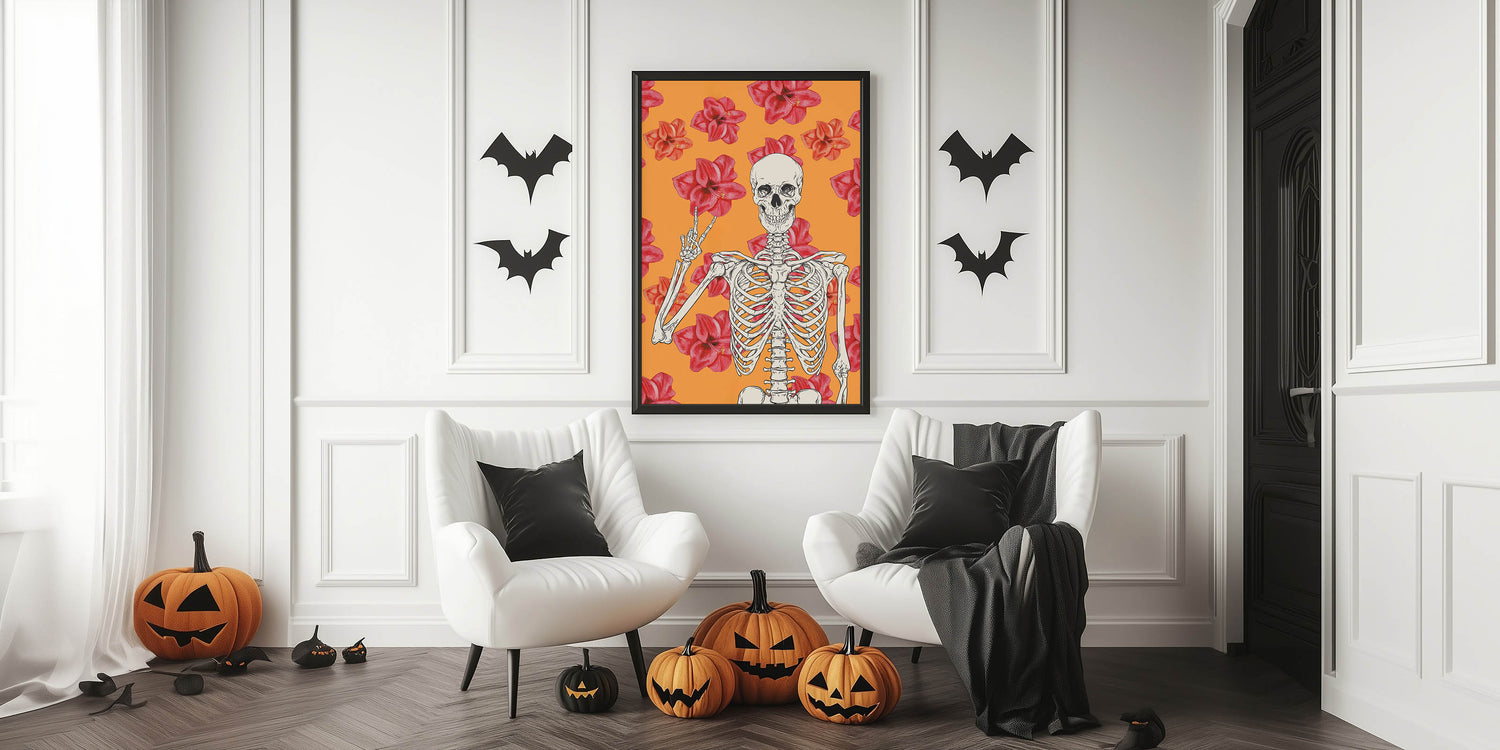 Floral Skeleton Halloween Wall Art - Spooky Chic Halloween Decor