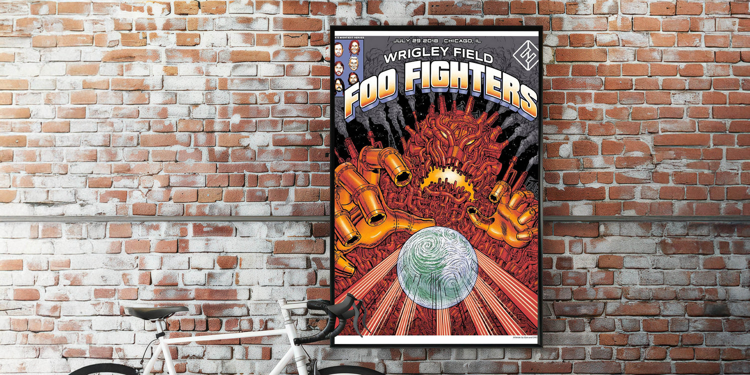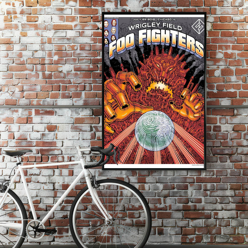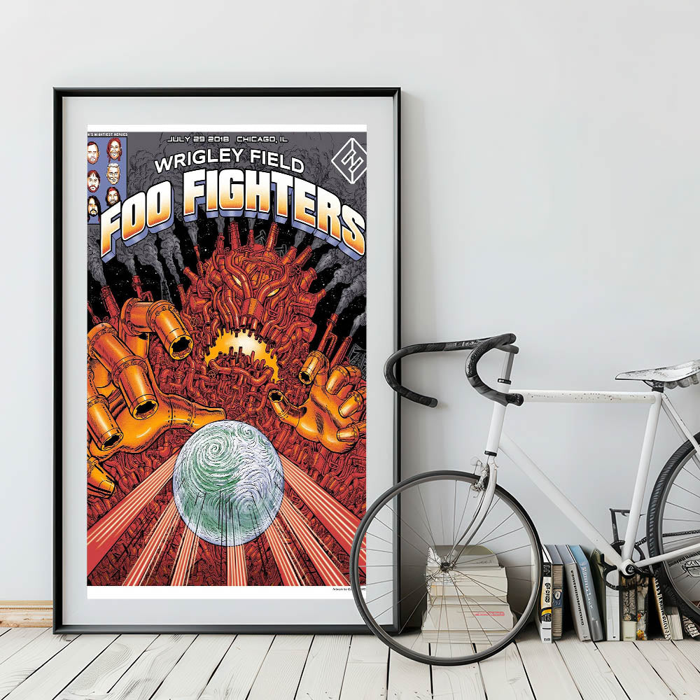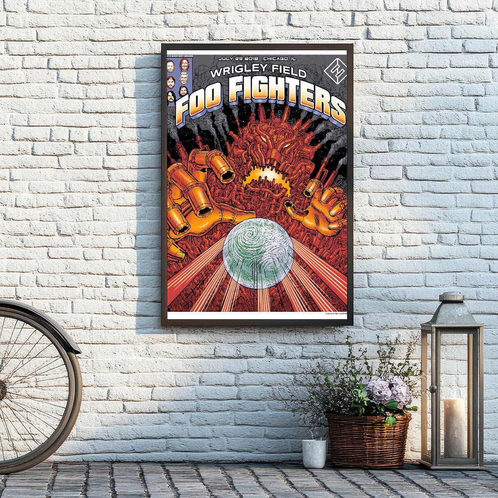 Bring a bold and futuristic vibe to your space with this Foo Fighters Retro Wall Art, an electrifying vintage print inspired by sci-fi and rock culture. Featuring an intricate robotic design with a swirling planet, this retro poster art embodies classic retro style with a mix of industrial and cosmic elements. Perfect for nostalgic art prints collectors and Foo Fighters fans, this piece adds an edgy and dynamic touch to any setting.