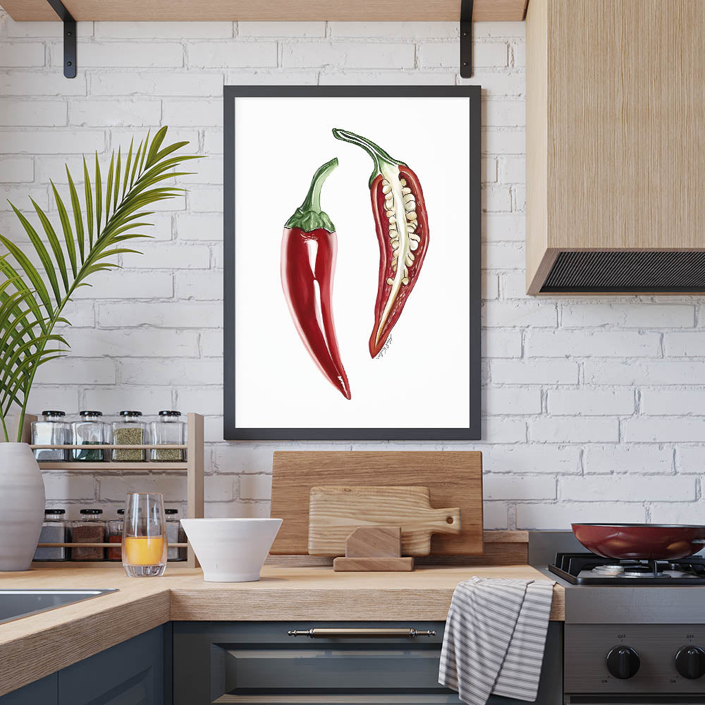 Fruit Wall Decor – Spicy Red Chili Pepper Kitchen Art Print