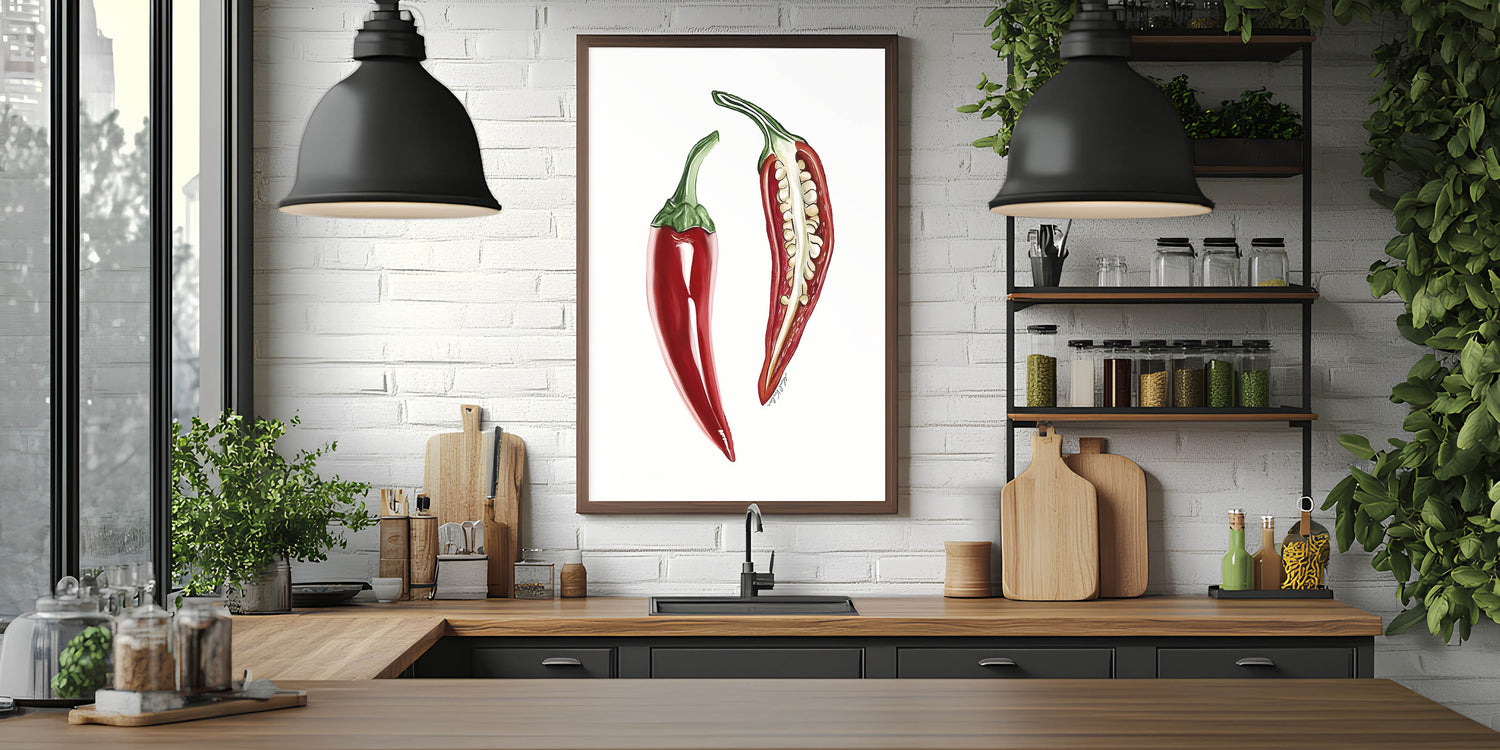 Designed for lovers of spice and contemporary decor, this fruit poster art brings a dynamic and sophisticated feel to any setting. Whether displayed in a home, pizzeria, or cafe, this fruit canvas art is sure to spark conversation.