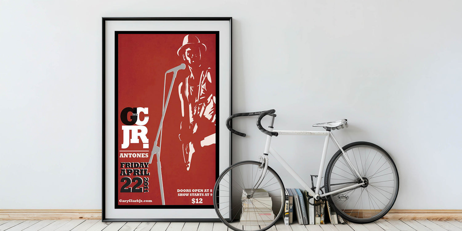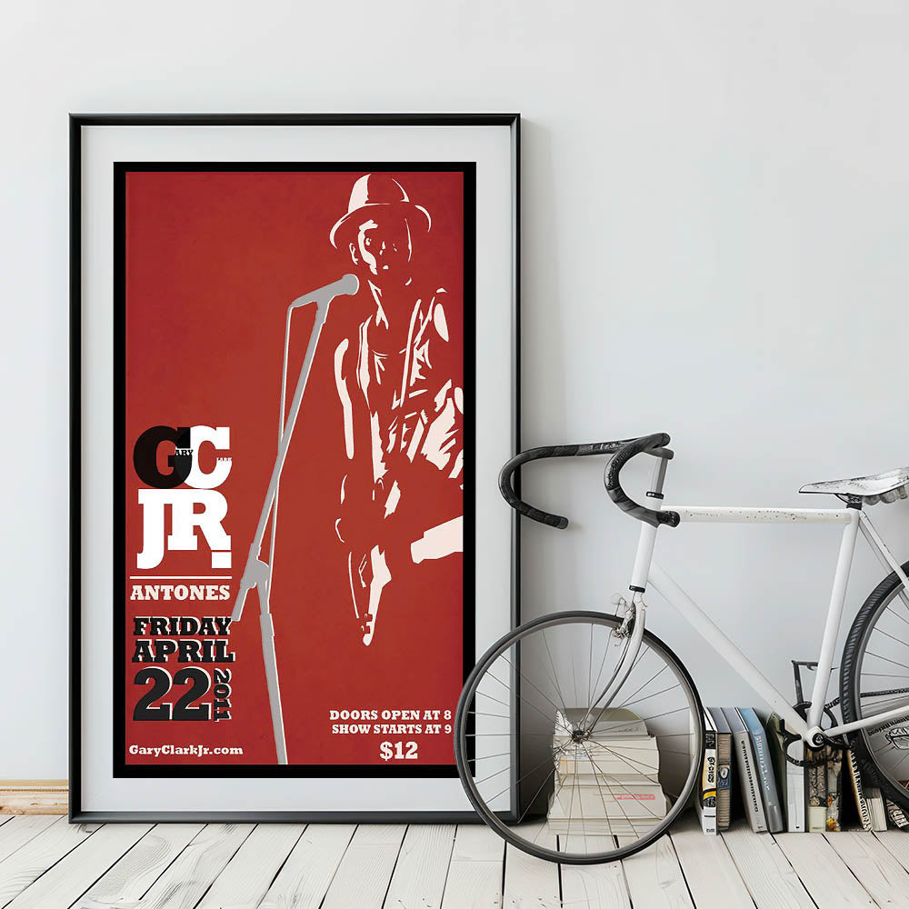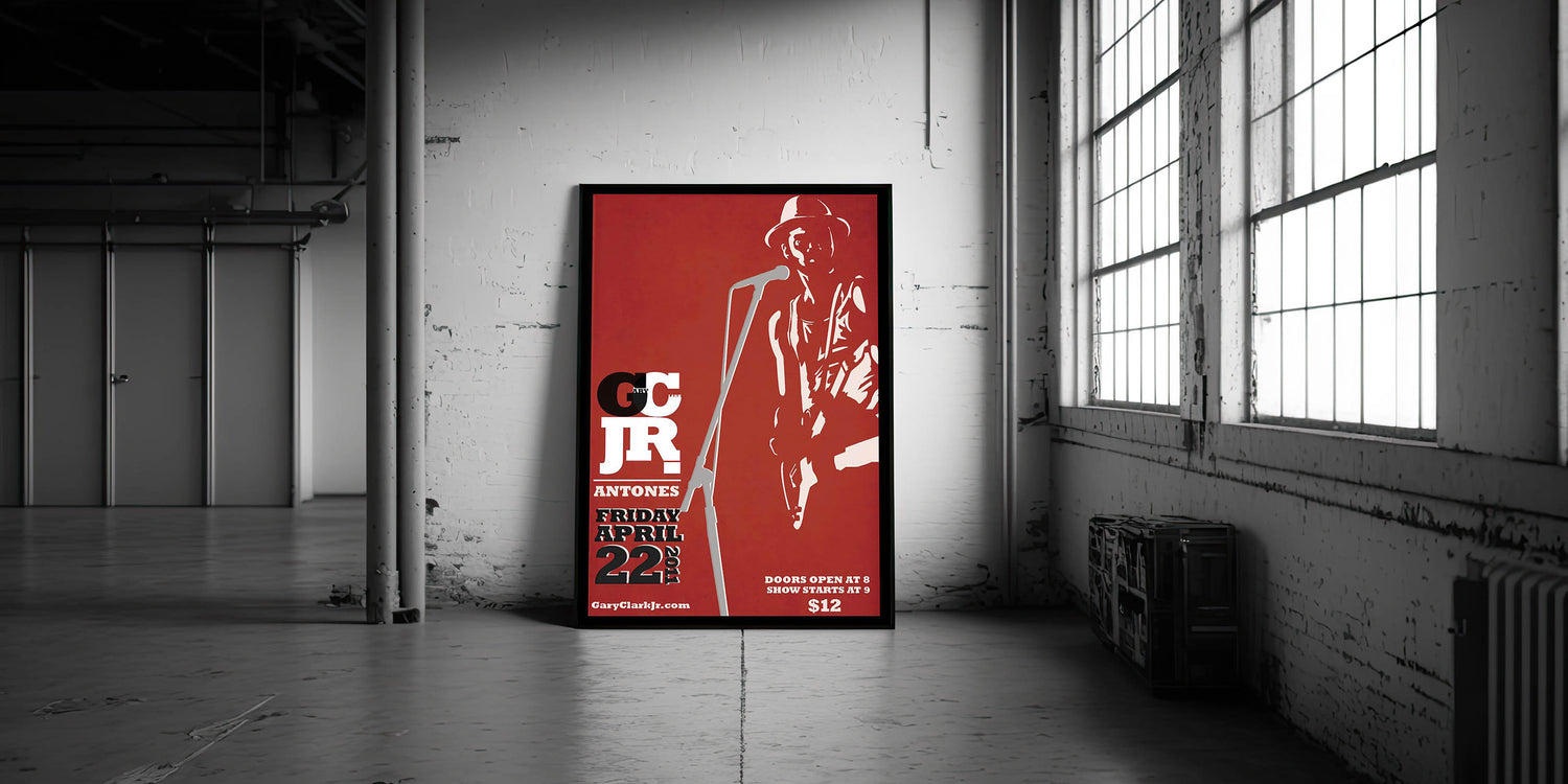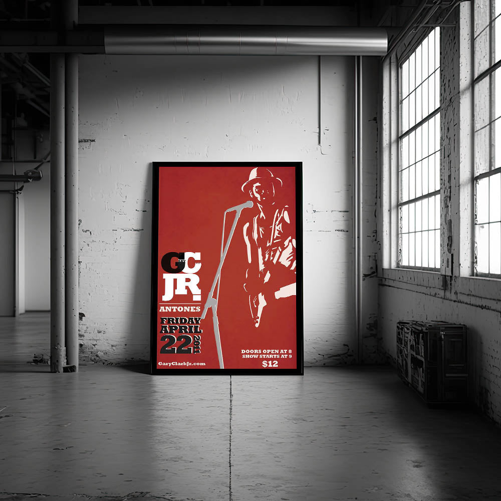 Celebrate the raw power of blues and rock with this Gary Clark Jr. Retro Wall Art, a vintage print from his legendary 2011 performance at Antone’s. Designed in a minimalist, bold style, this retro poster art features a striking silhouette of Gary Clark Jr. against a rich red backdrop, embodying classic retro style with a modern, timeless touch. Perfect for fans of nostalgic art prints and collectors of timeless retro designs, this piece brings a soulful and electrifying energy to any space.
