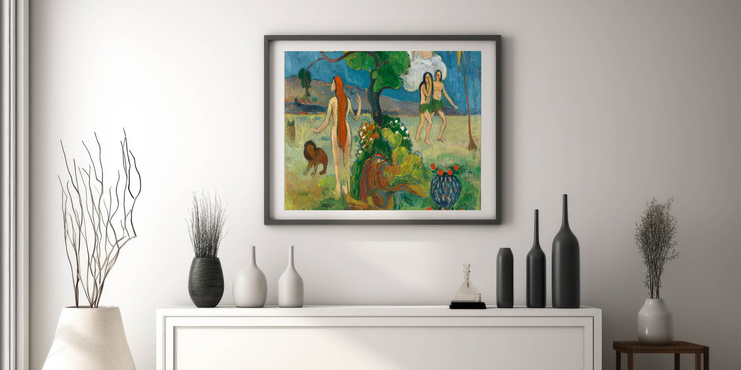 - A vibrant reproduction showcasing Gauguin’s distinctive use of color.