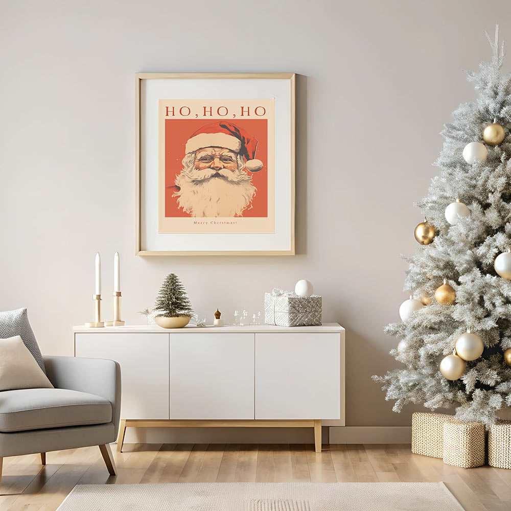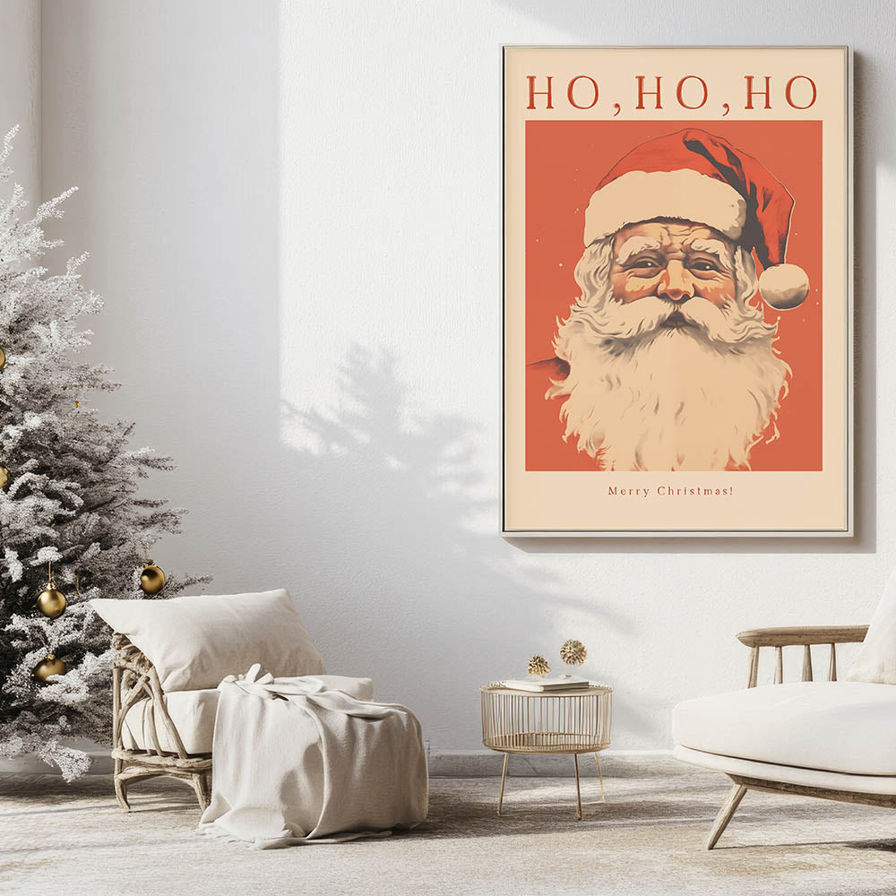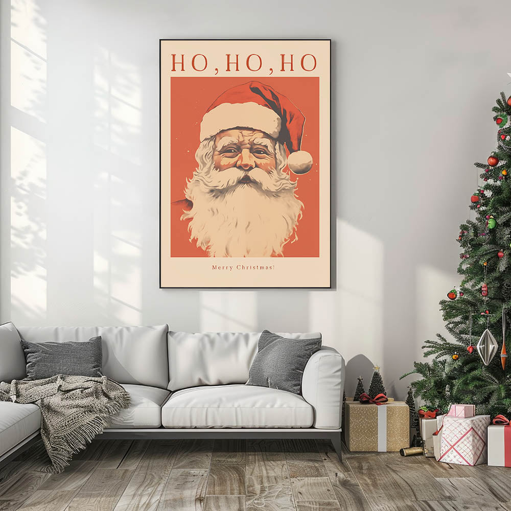 Celebrate the joy of the holiday season with this festive Christmas Wall Decorations design, featuring a vintage-inspired Santa Claus with the iconic "Ho, Ho, Ho" greeting. The bold red and beige color palette, classic typography, and nostalgic illustration make this artwork a timeless addition to your Christmas decor. Whether displayed in your living room, office, or entryway, this piece adds a cheerful and stylish touch to your holiday setup.