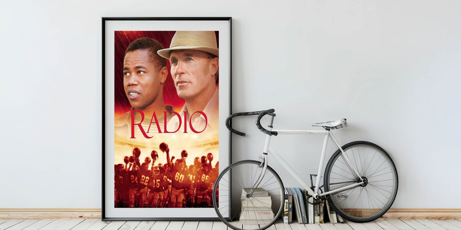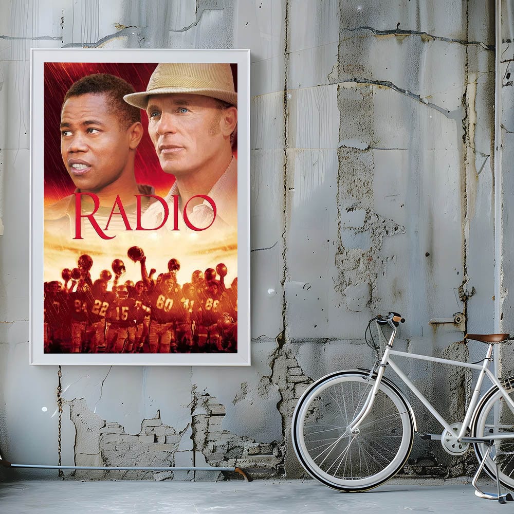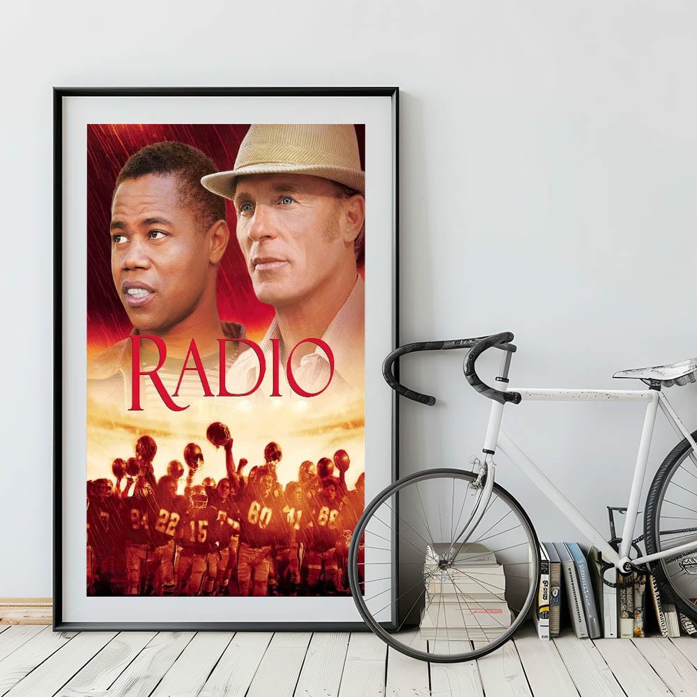 Celebrate the inspiring story of Radio with this vintage 2000s movie poster. This collectible movie poster from the 2000s captures the heartwarming and motivational essence of the film, making it a perfect addition to any movie lover’s collection. Featuring bold red and golden tones, this artistic poster of an iconic 2000s film stands out as a striking display piece for any room.