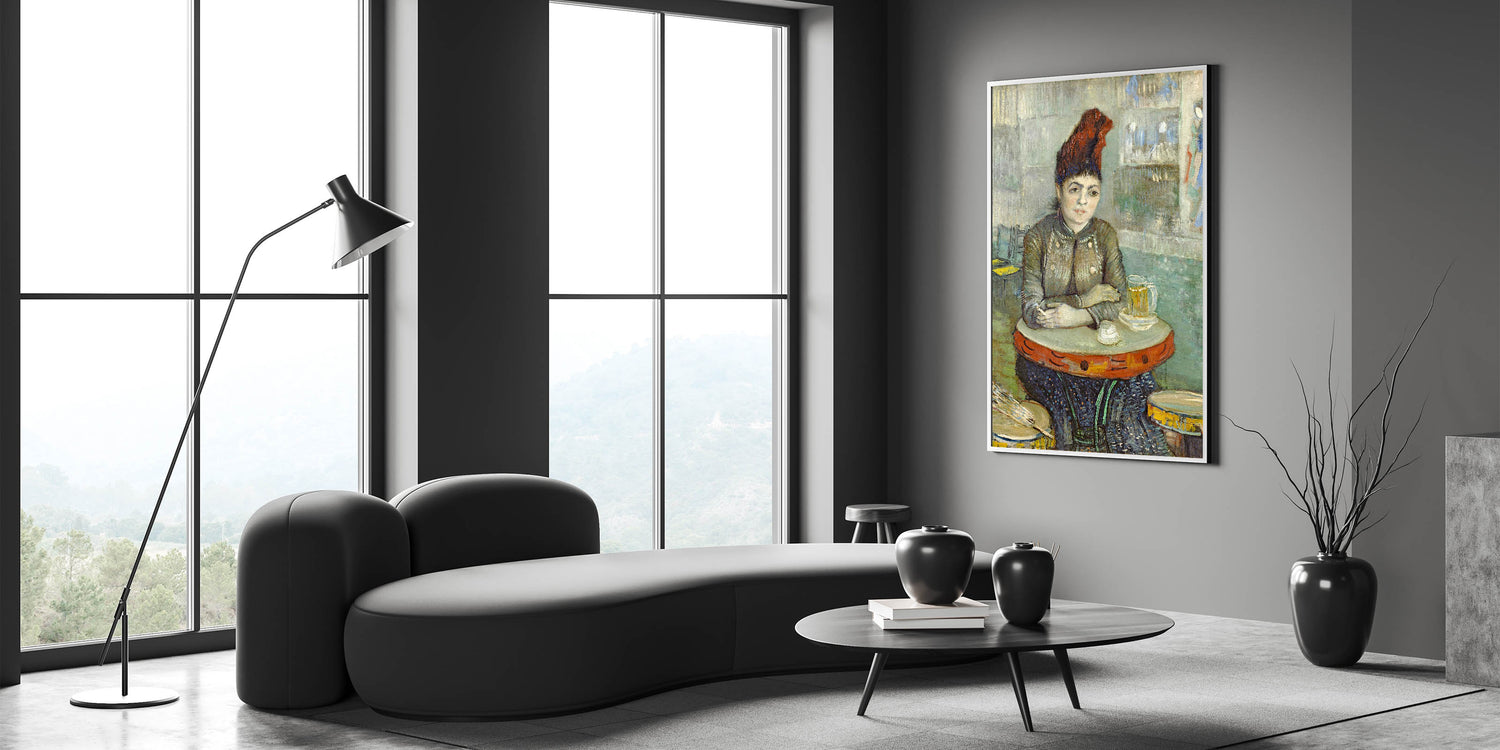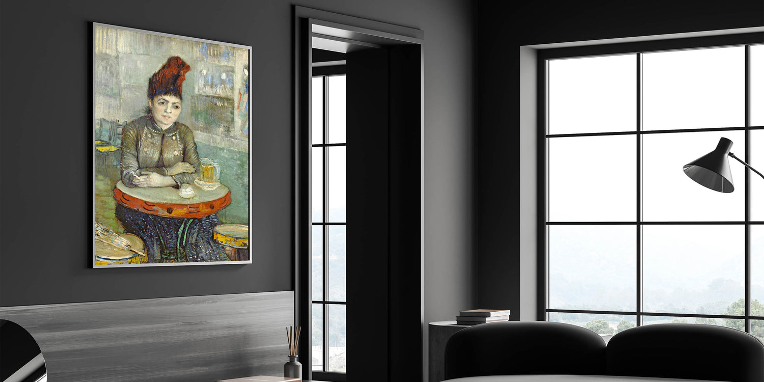 Step into the bohemian world of Paris with "Agostina Segatori Sitting in the Café du Tambourin" by Vincent van Gogh. This striking portrait captures the essence of Parisian café culture, blending Van Gogh’s expressive brushwork with a warm, earthy palette. The intricate details, from Agostina's poised expression to the vibrant surroundings, make this piece a unique addition to your art collection. Perfect for lovers of Impressionist decor and captivating portraits.