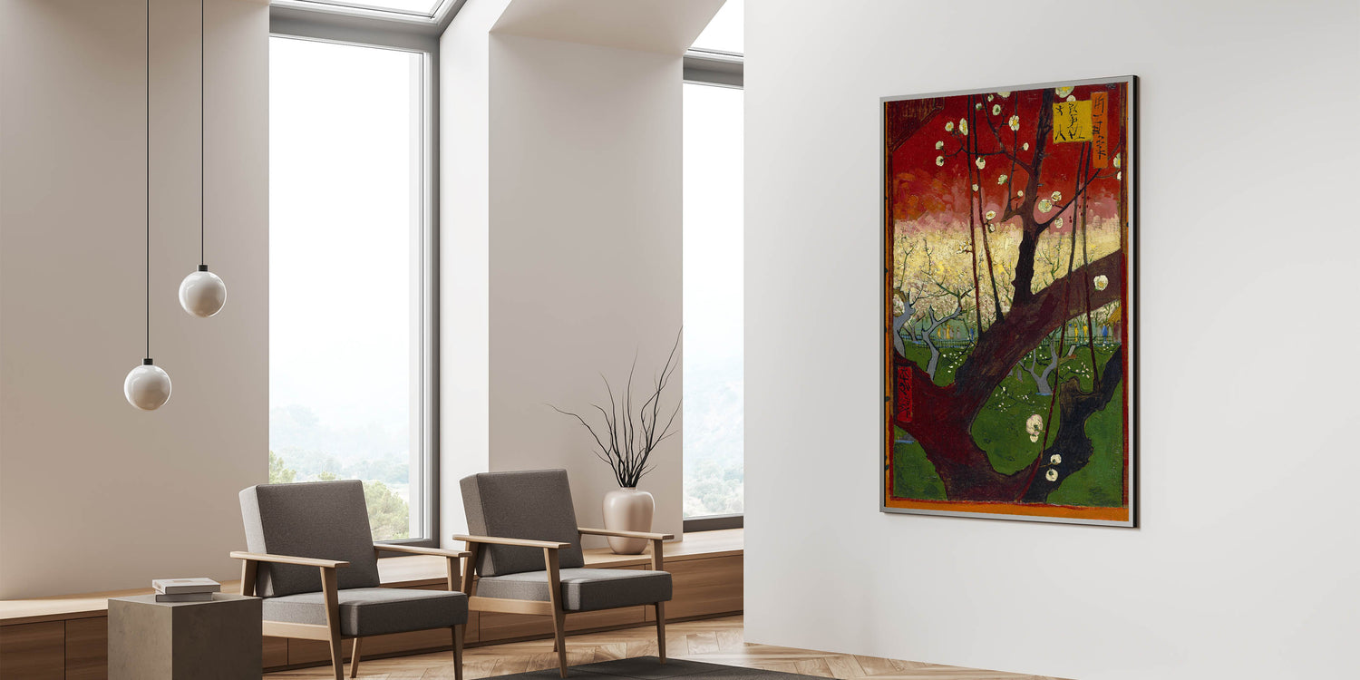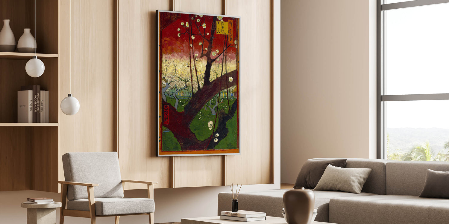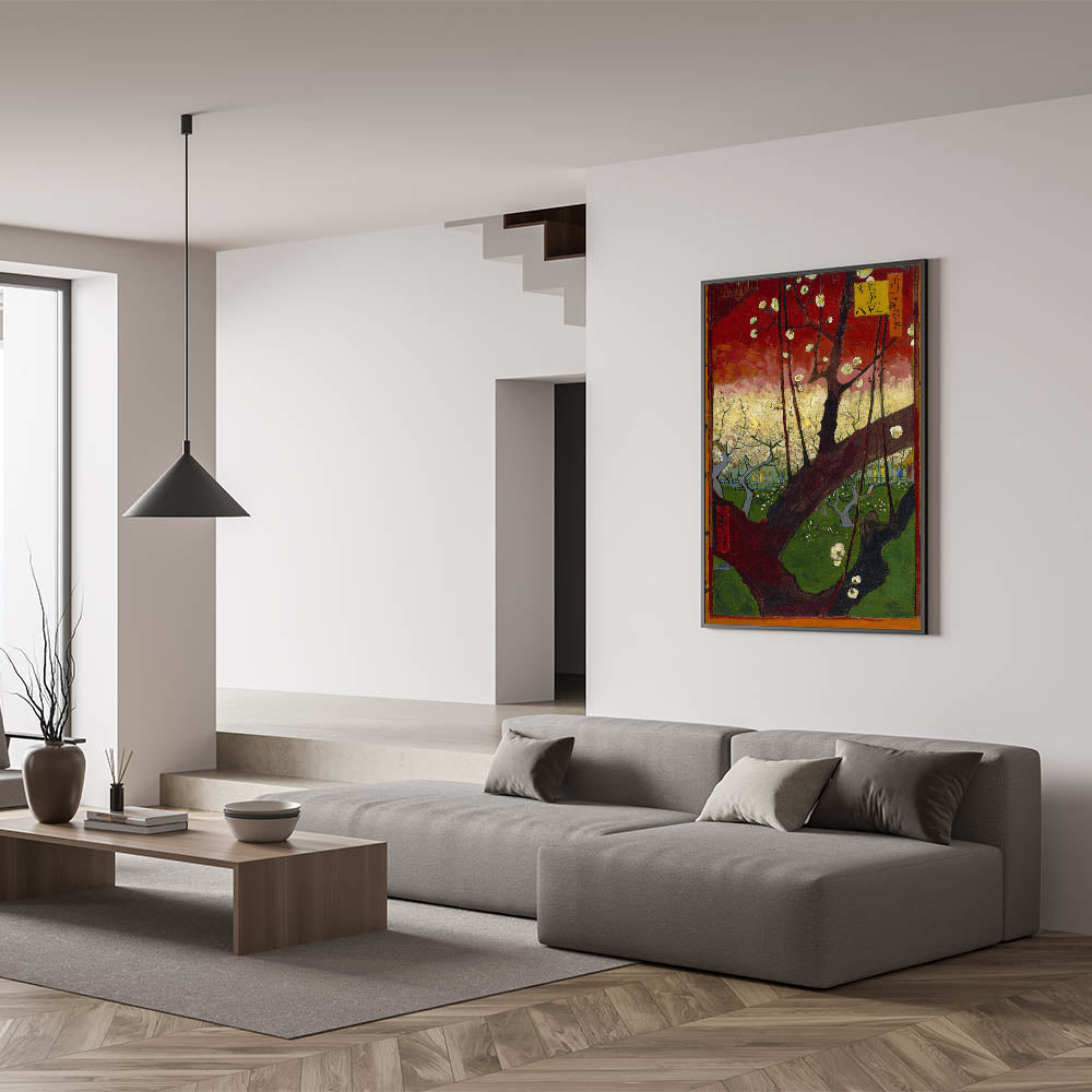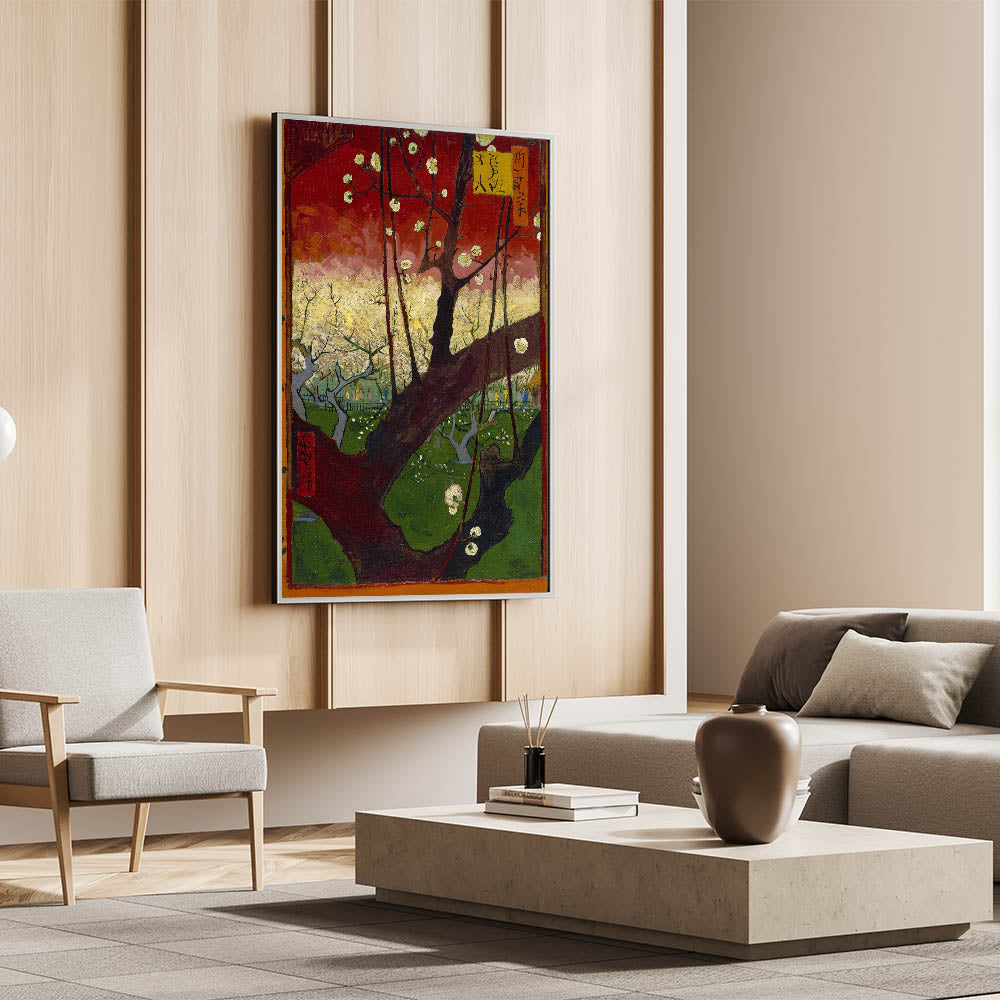 - High-quality reproduction of Van Gogh’s "Blooming Plum Orchard"