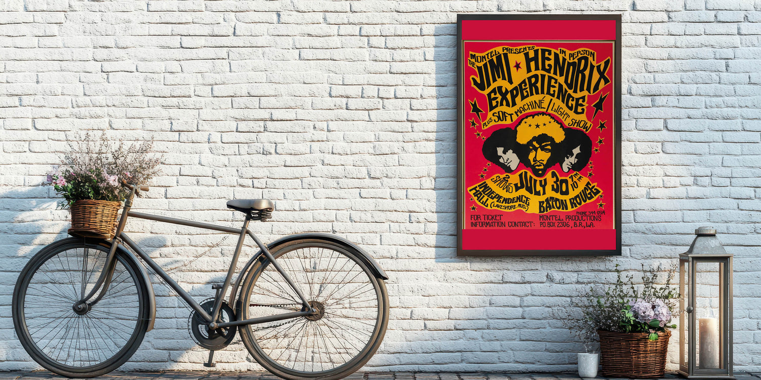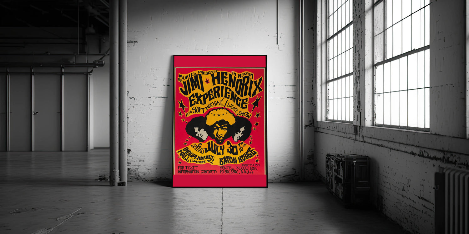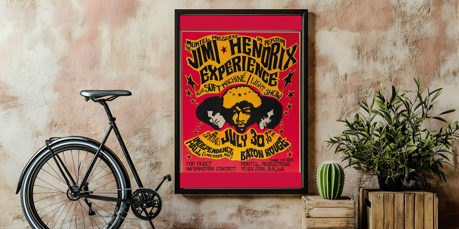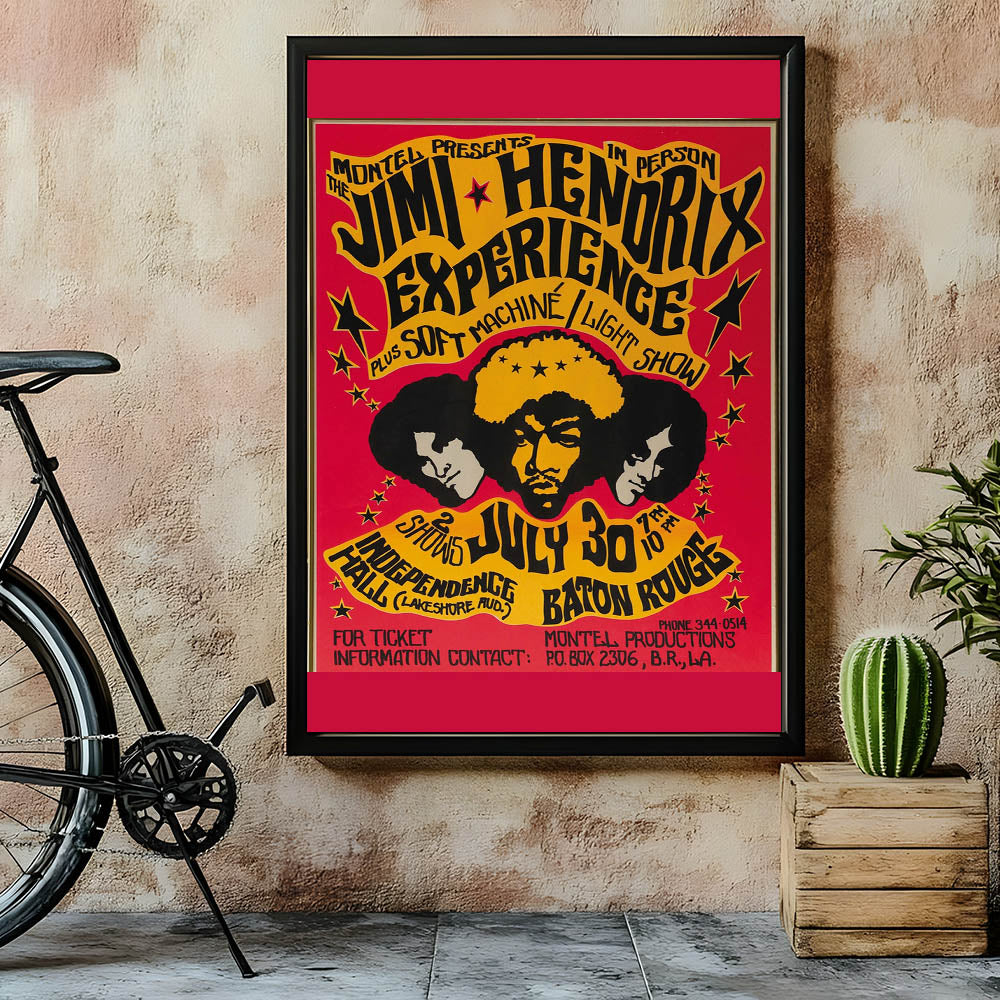 Jimi Hendrix Retro Wall Art – Vintage Baton Rouge Concert Print