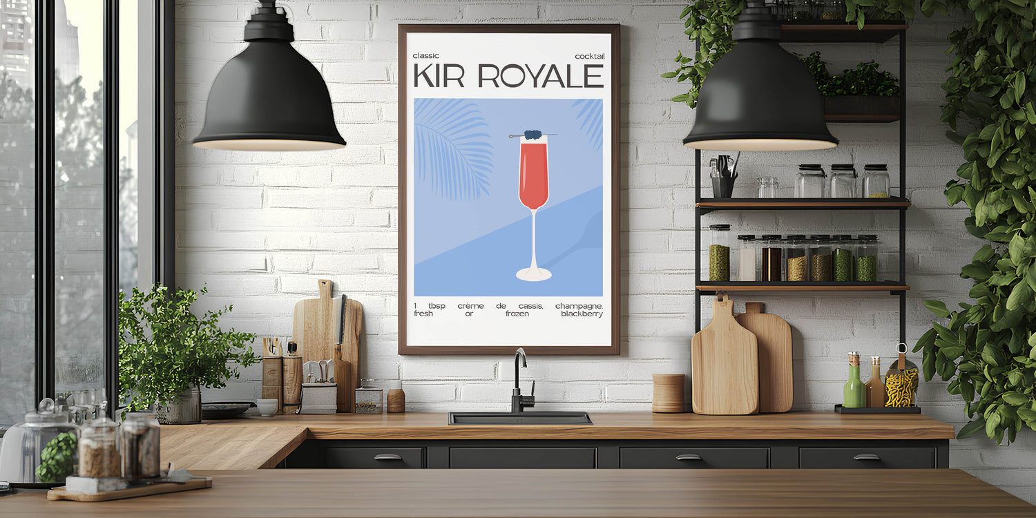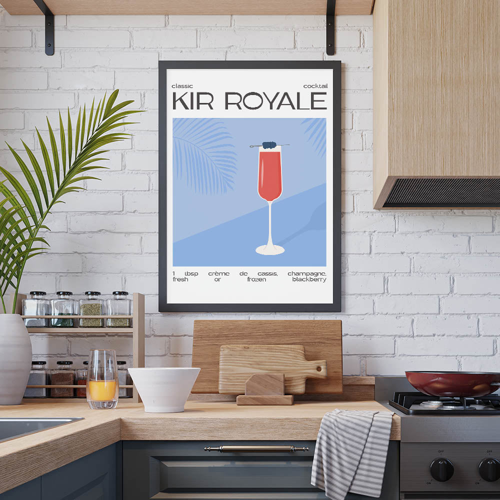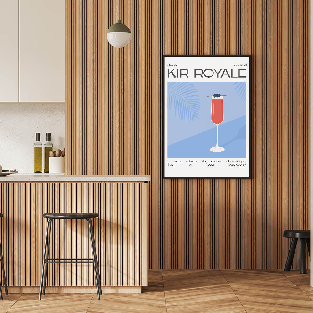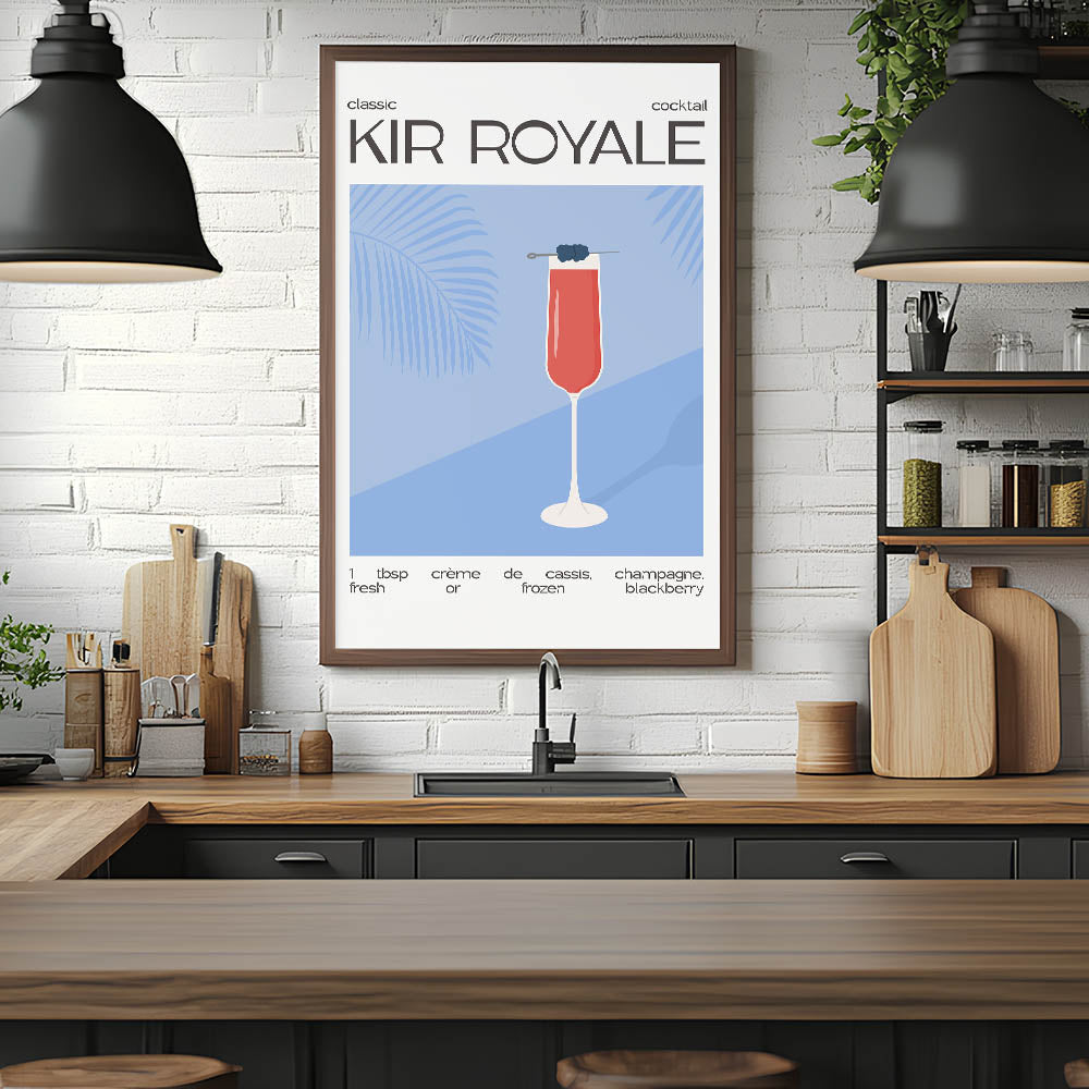 - Minimalist & Sophisticated Design: A refined cocktail art print that highlights the Kir Royale’s luxurious appeal.