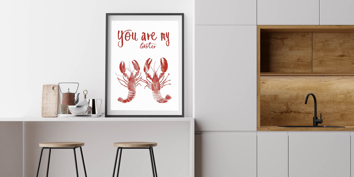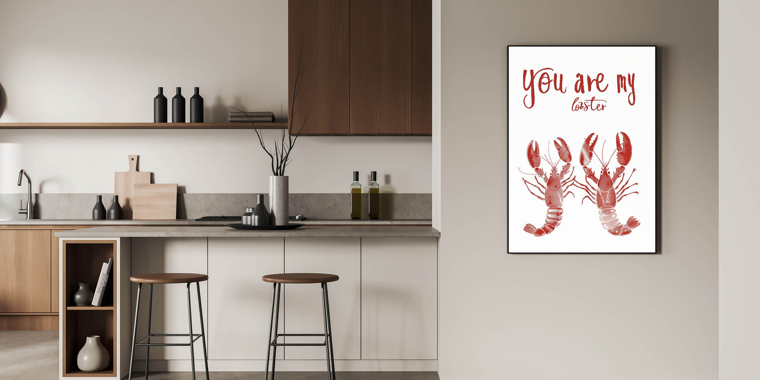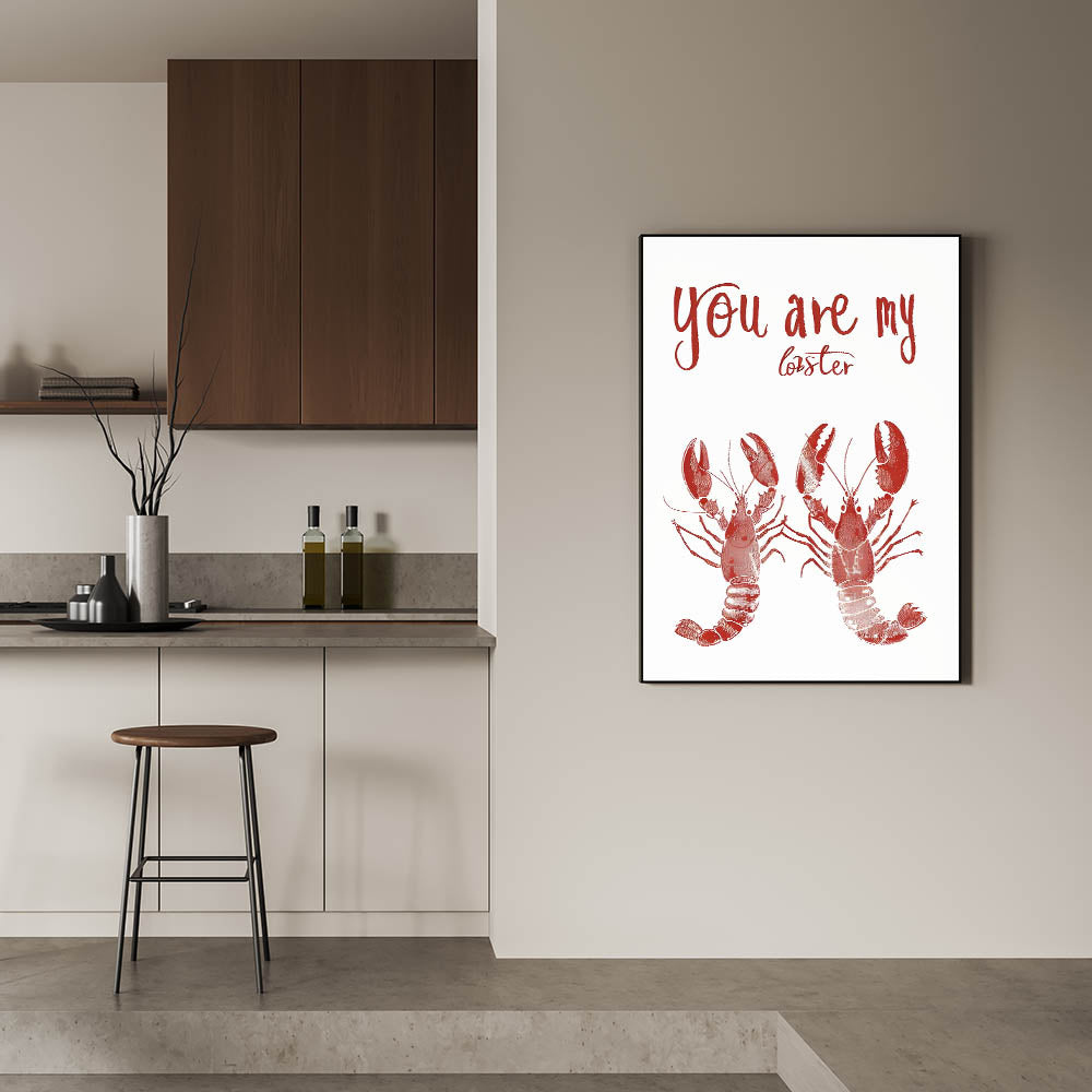 Add a playful and romantic touch to your space with this Kitchen Wall Art with Quotes featuring the charming phrase "You Are My Lobster." This Inspirational Kitchen Wall Art is a tribute to love and companionship, making it a perfect piece for couples, seafood lovers, or coastal-themed kitchens. The deep red lobsters and bold handwritten typography give this Motivational Kitchen Art Prints design a stylish and unique look.