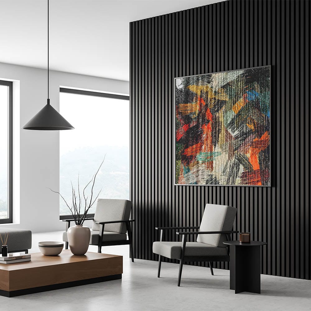 This modern abstract painting is ideal for those who appreciate expressive textures and high-contrast color palettes. Enhance your decor with this large abstract wall art, a visually striking blend of movement, depth, and modern sophistication.