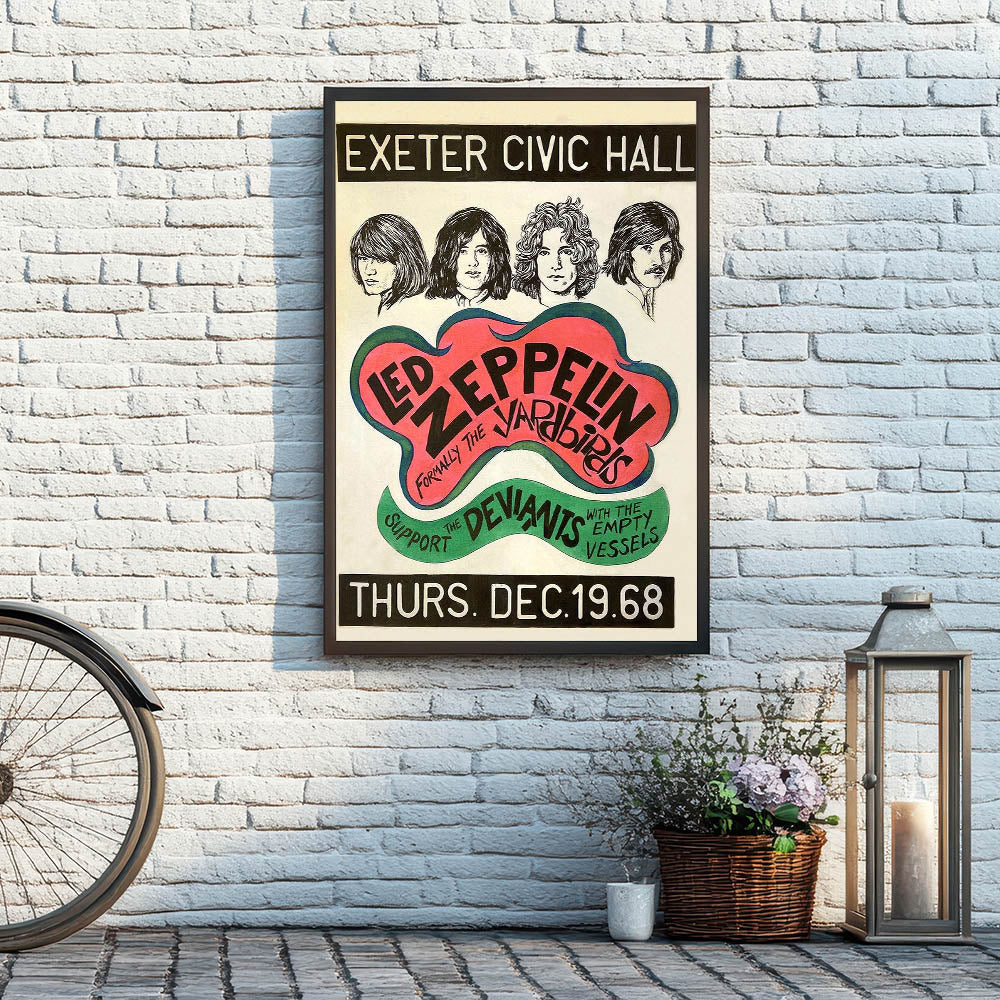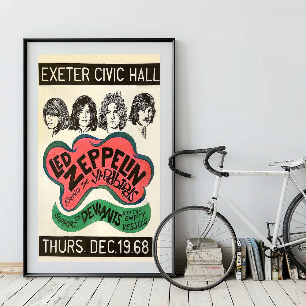 Led Zeppelin Exeter Civic Hall 1968 Poster | Retro Music Wall Art