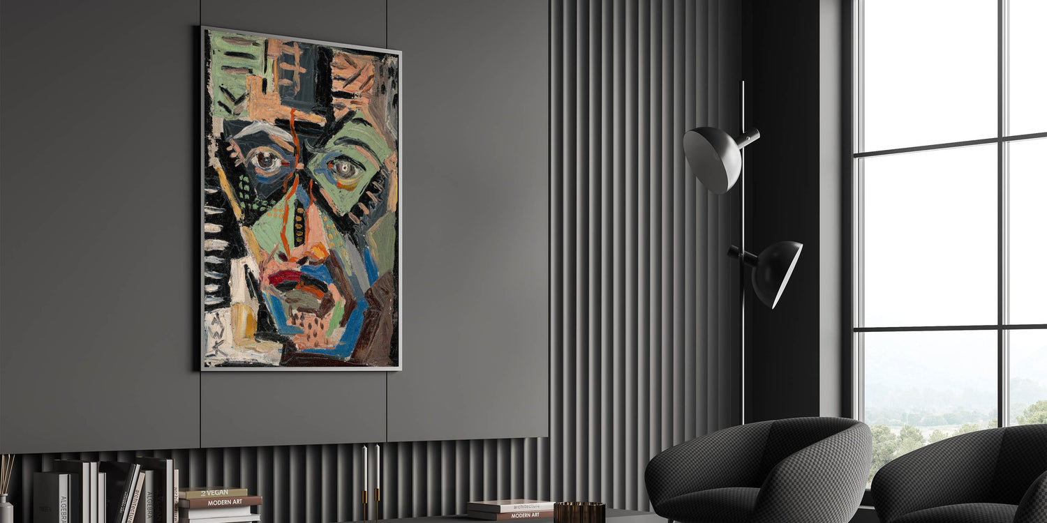 - Design: A striking Expressionist portrait featuring fragmented shapes and vibrant, emotive colors.