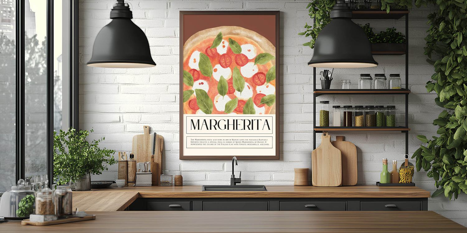 Whether you're a pizza enthusiast or looking for a stylish kitchen decor addition, this food art print is a must-have. Enjoy the charm of ceramic plate wall art and bring the heart of Italy into your home.