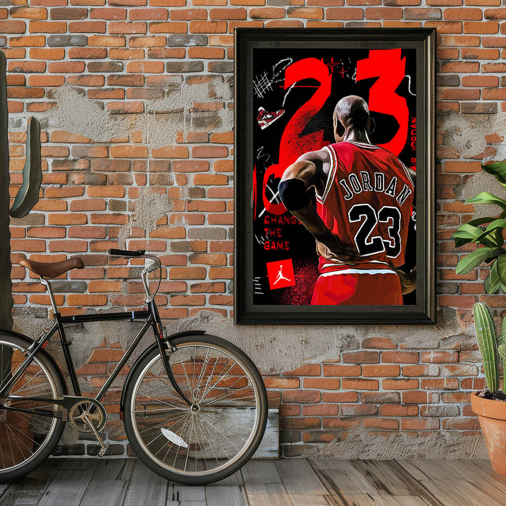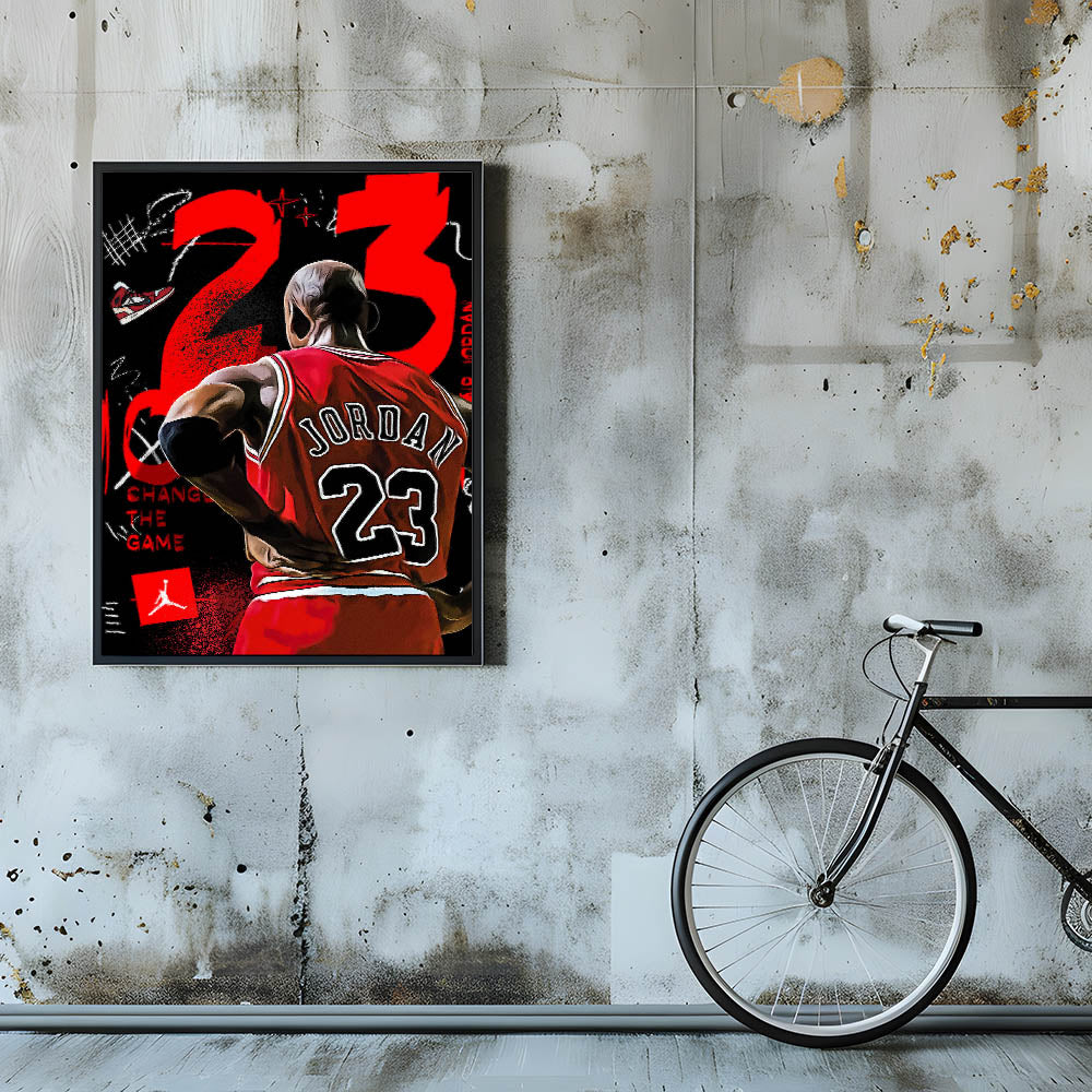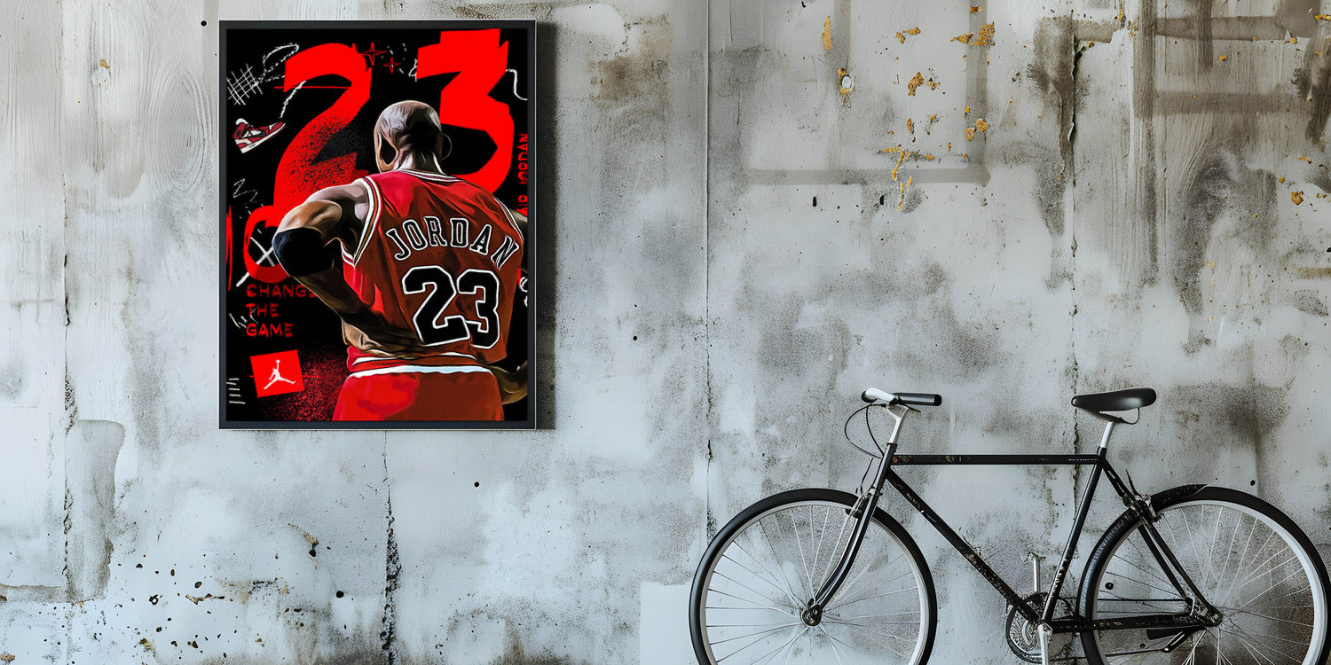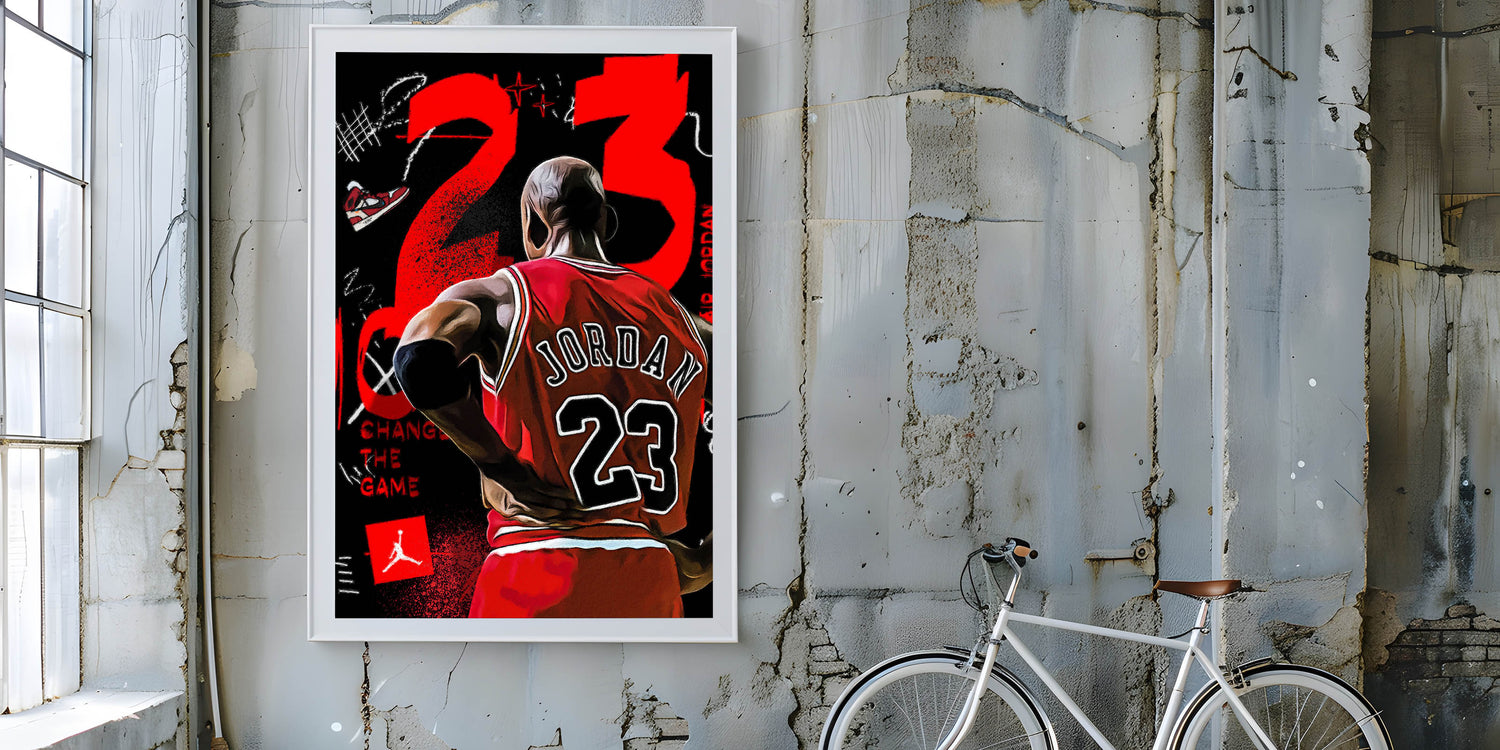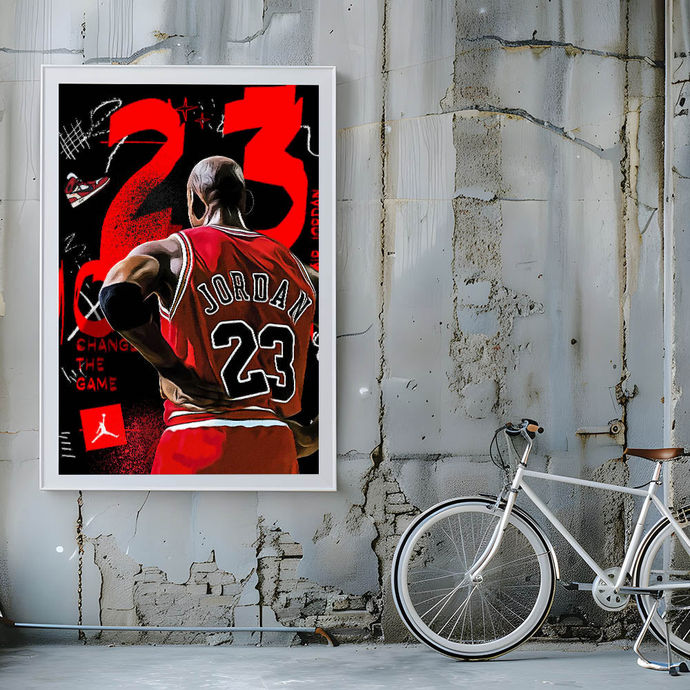 Pay tribute to the GOAT with this bold pop art wall art featuring Michael Jordan in his iconic #23 jersey. Designed with a striking mix of red, black, and white, this modern pop art print captures the energy and legacy of basketball's greatest. The graffiti-inspired elements and powerful silhouette make this piece a must-have for basketball fans and art enthusiasts alike.