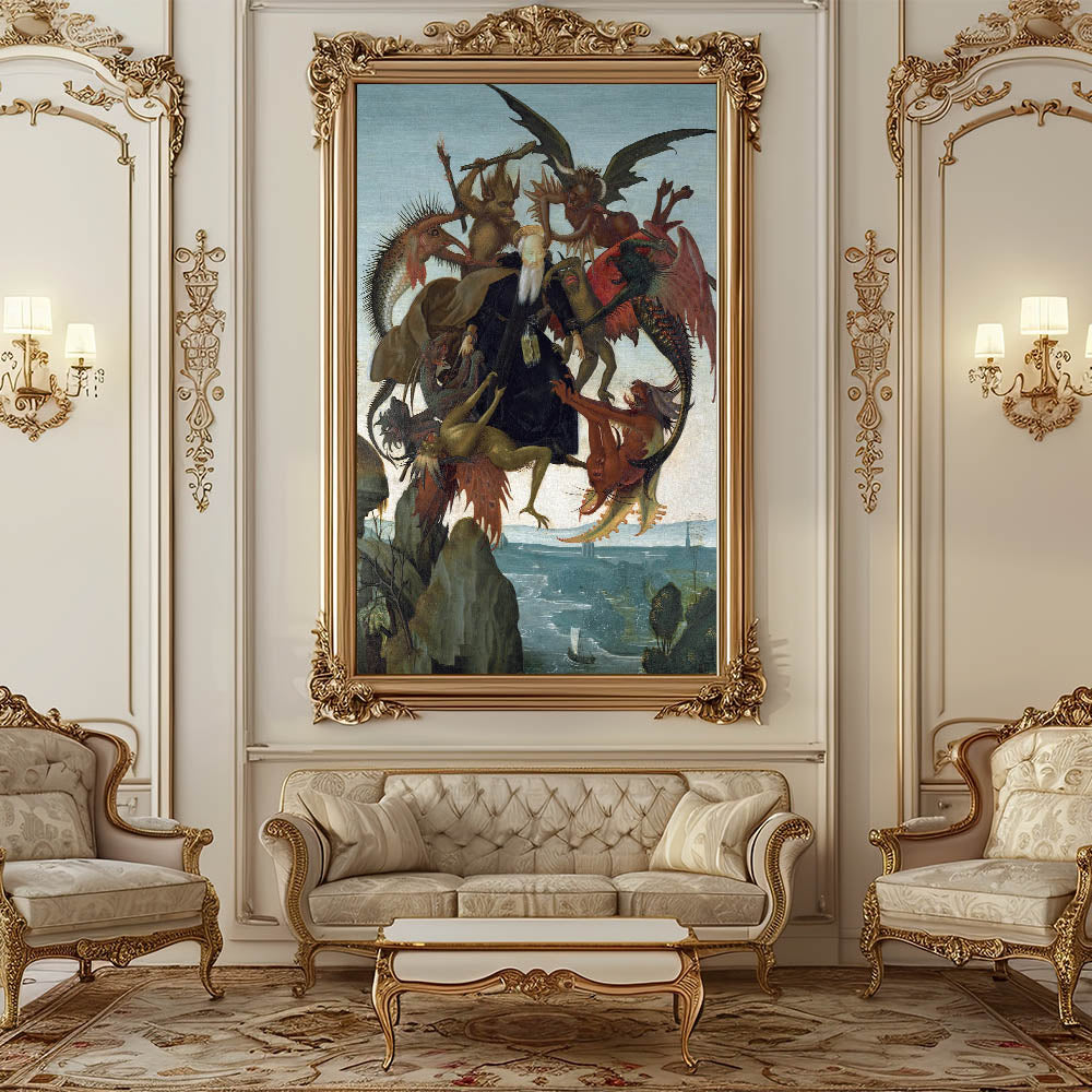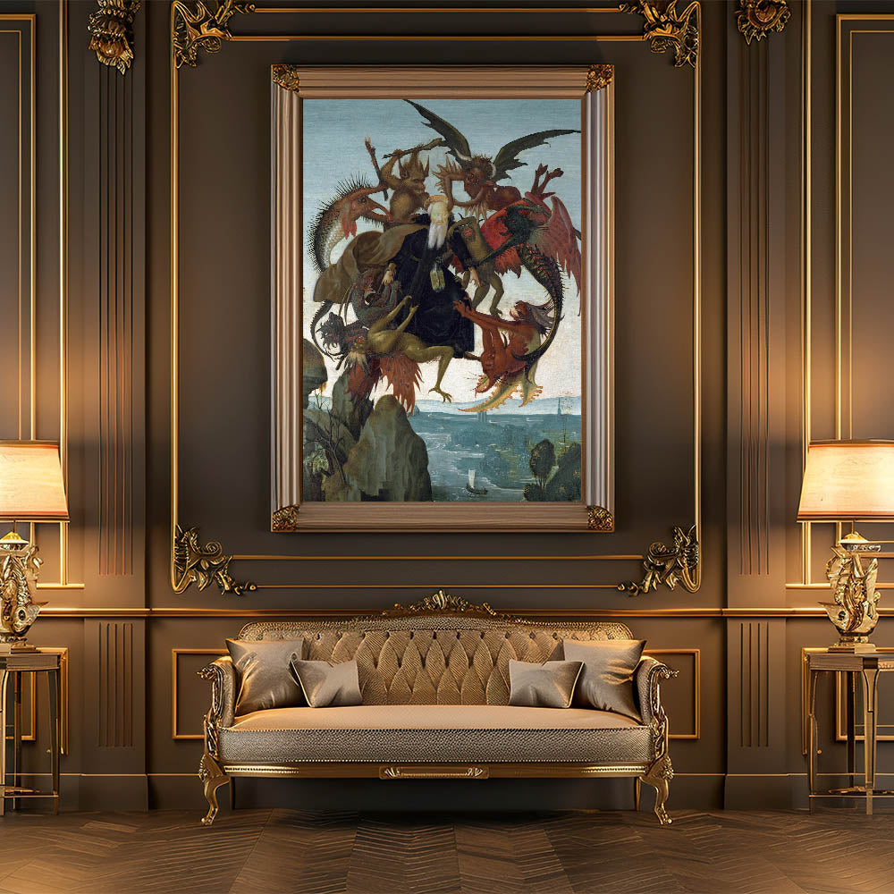 This Torment of Saint Anthony print combines artistic brilliance with intense storytelling, making it a captivating addition to any art collection. Its dynamic composition and striking imagery resonate with those who appreciate the emotional depth and creativity of Renaissance art.