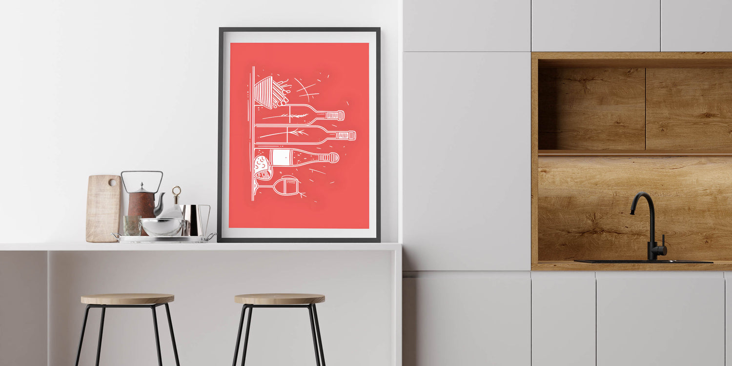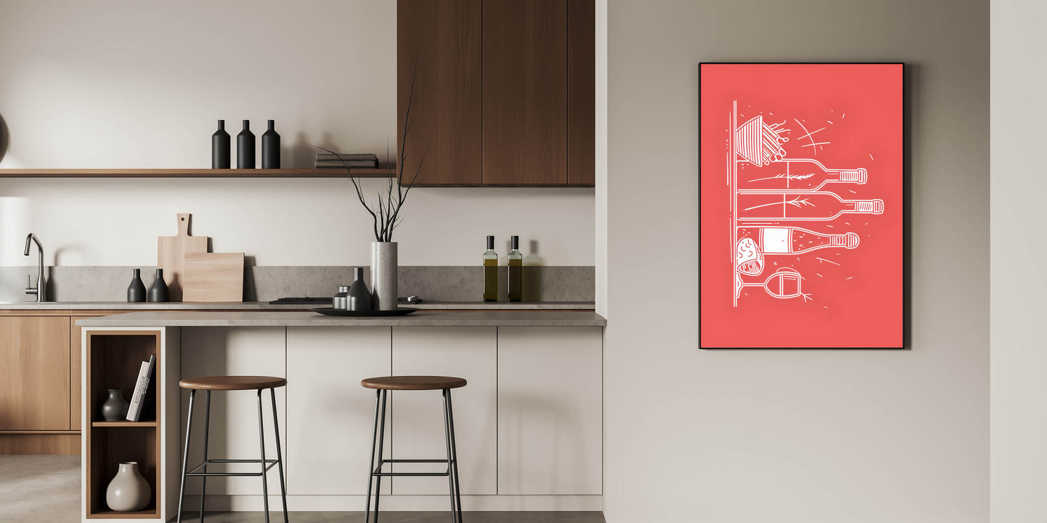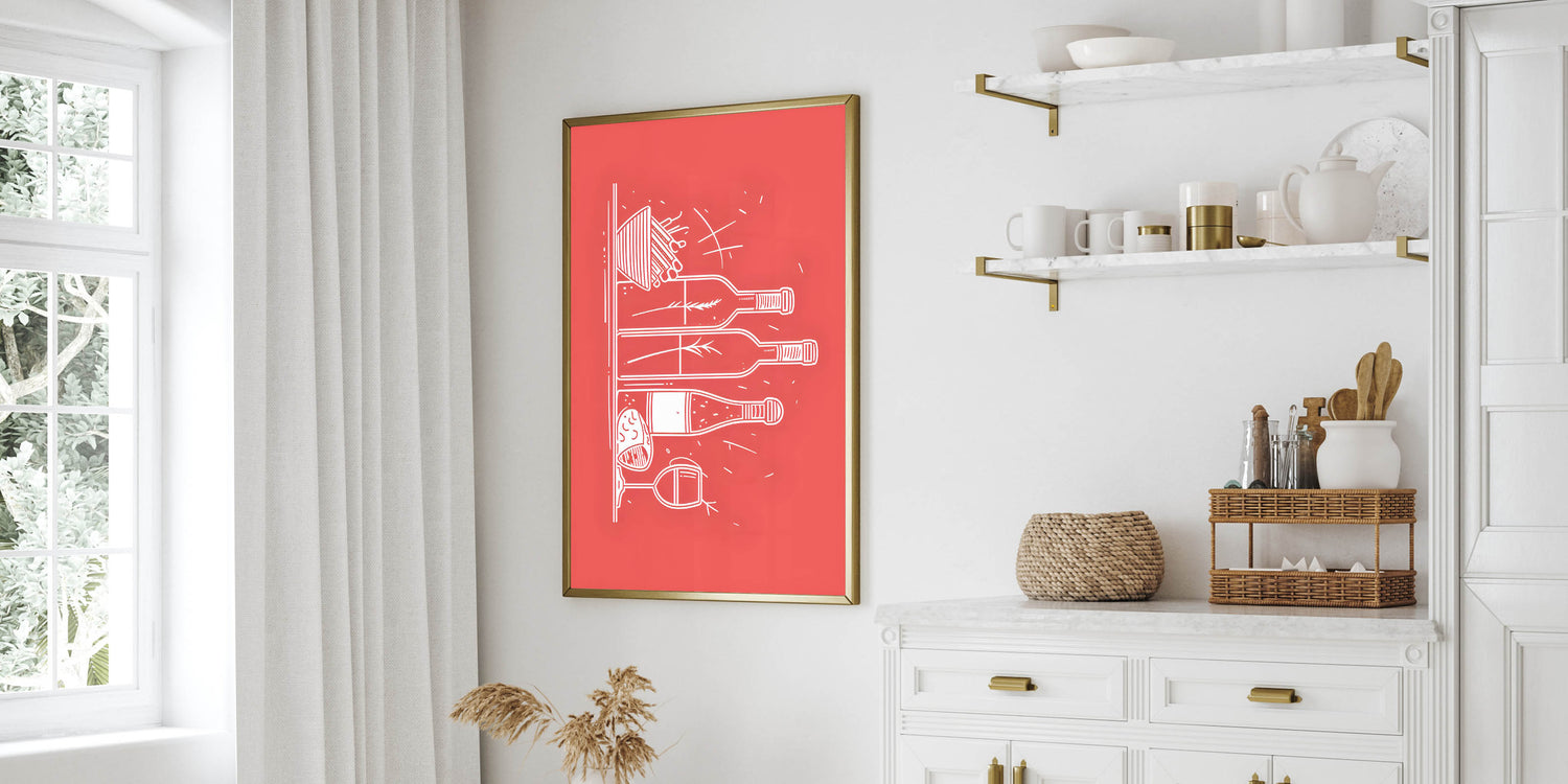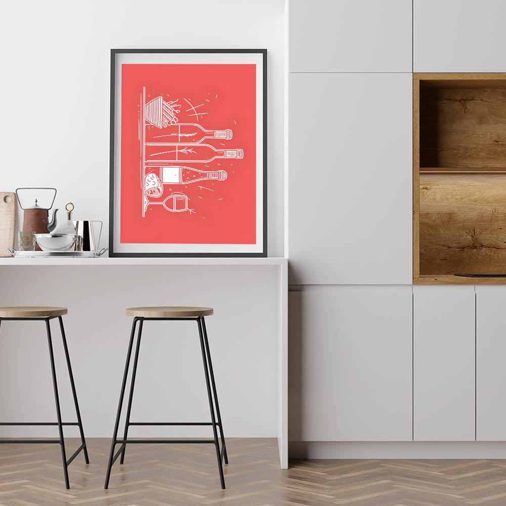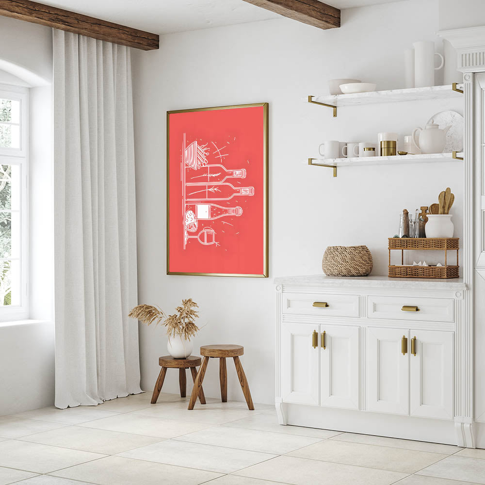 This drink-themed art print makes an excellent gift for wine lovers, bar owners, or those looking to elevate their kitchen art decor with a touch of modern elegance. Add a refined yet playful statement piece to your collection today.