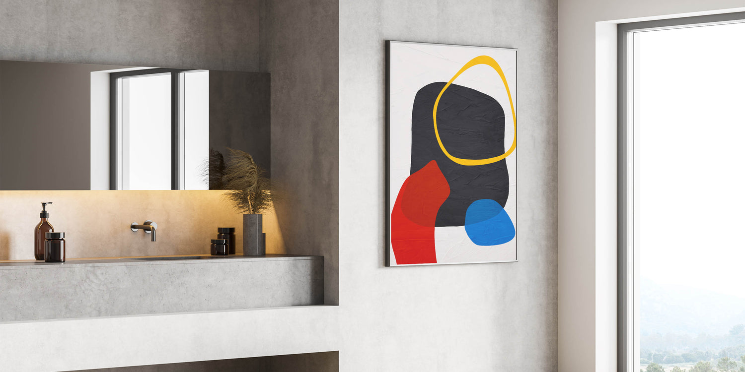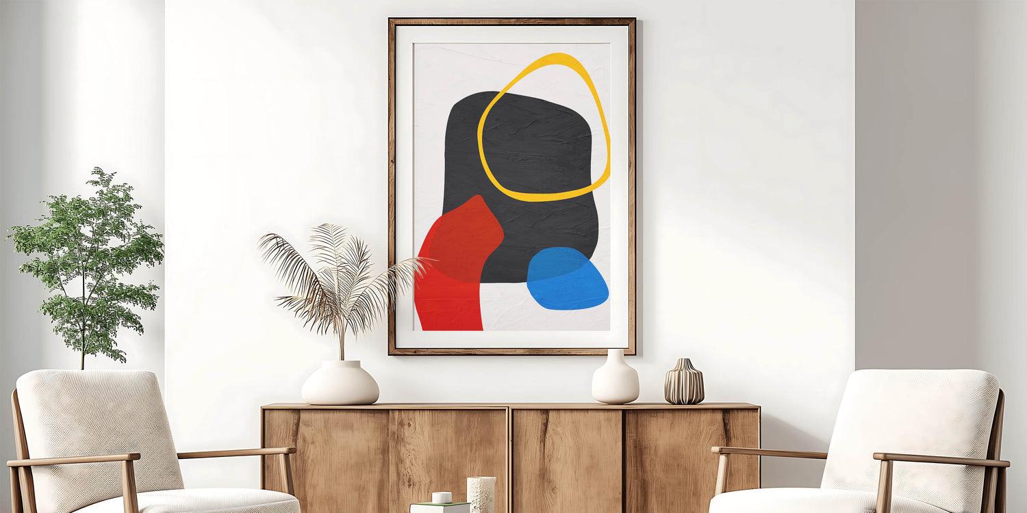 - Contemporary wall art design with a bold mix of geometric shapes and colors