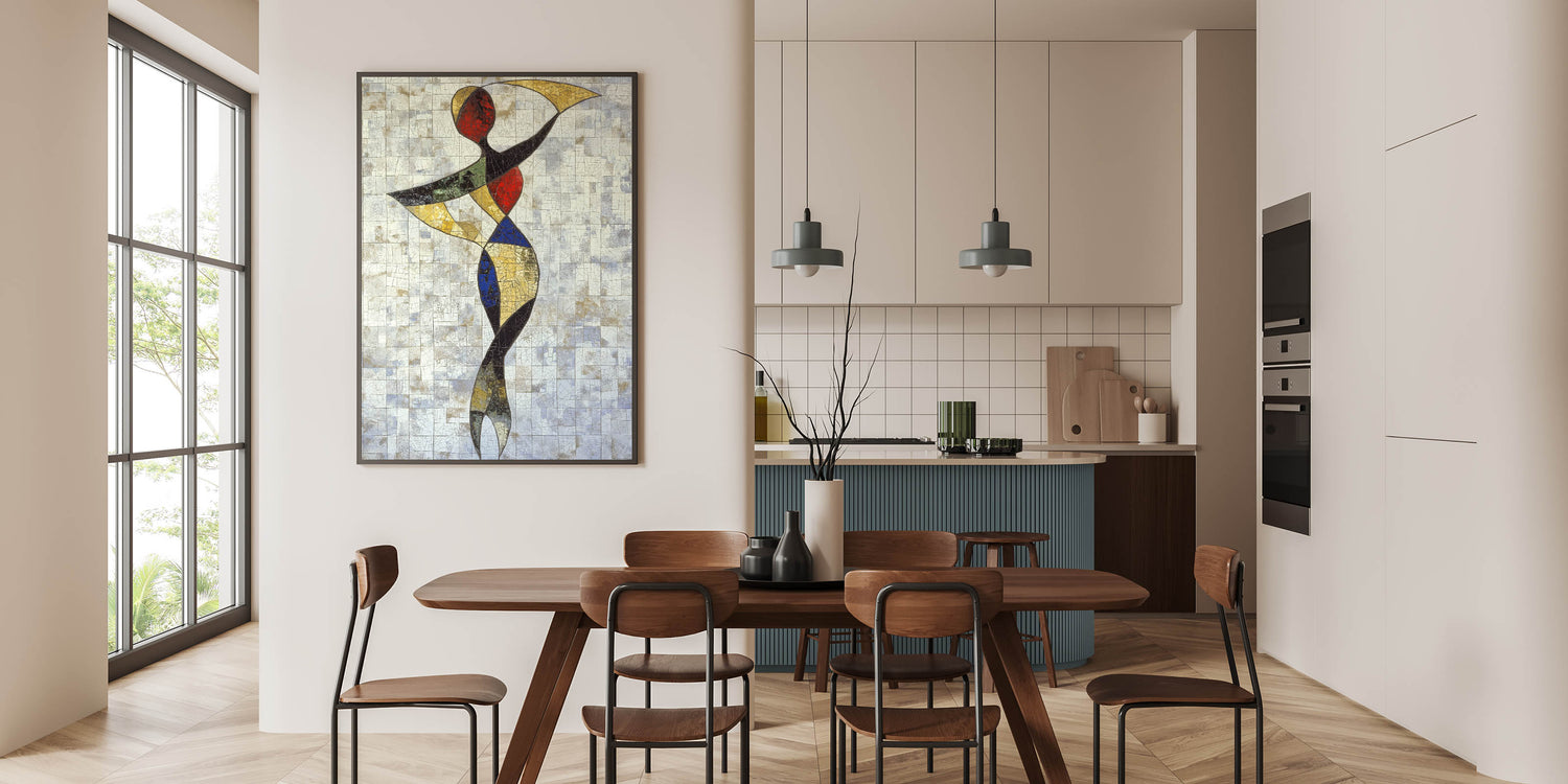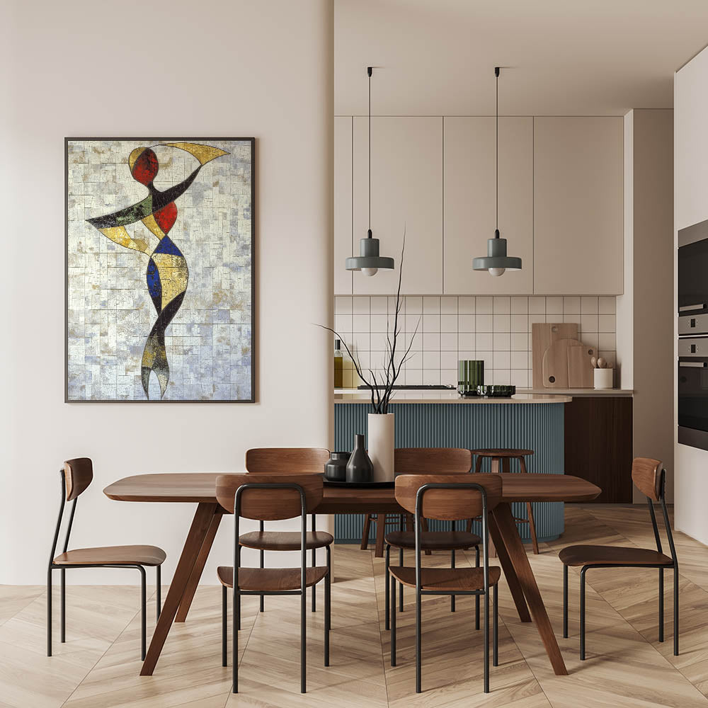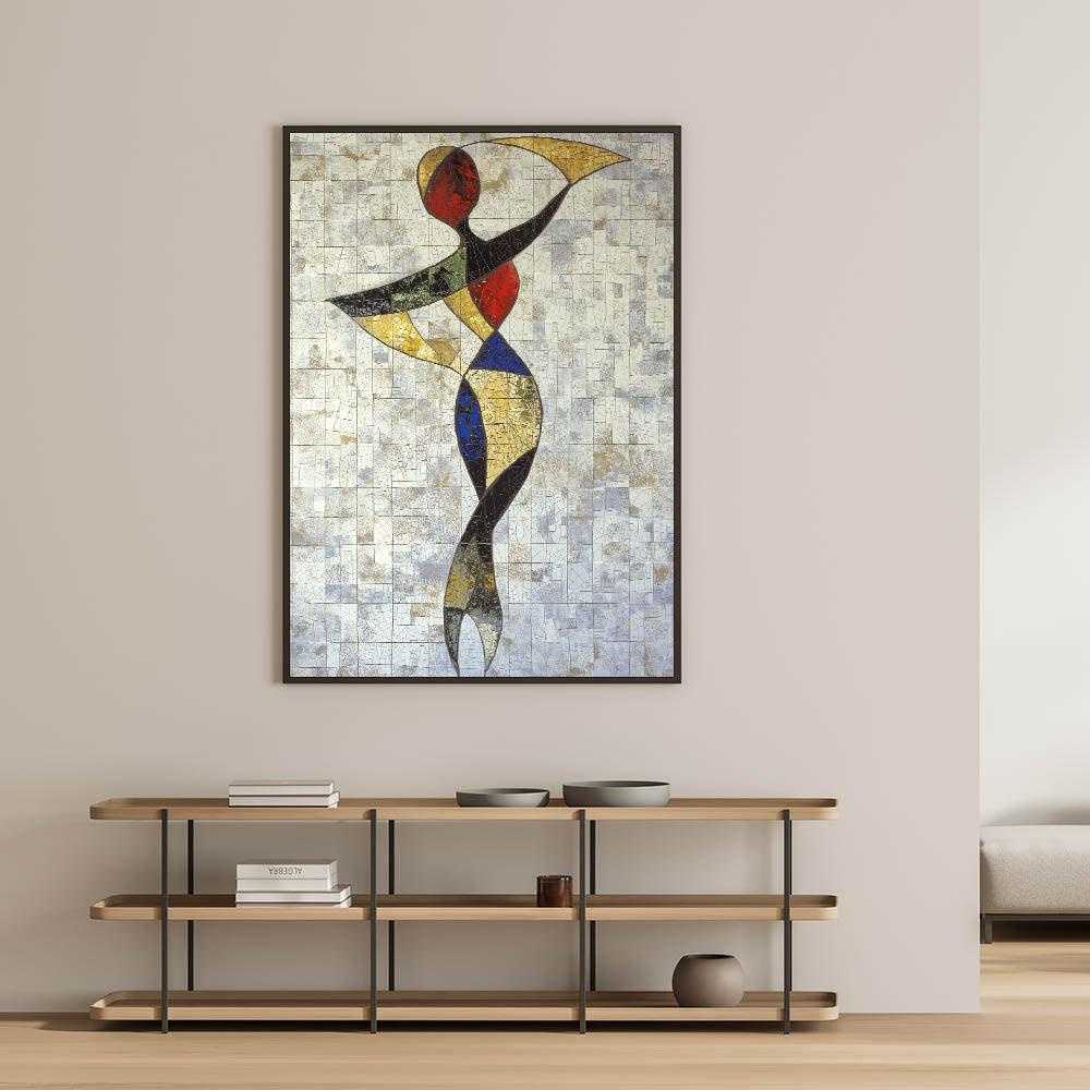 Enhance your space with this stunning mosaic-inspired abstract wall art, featuring an expressive figure in bold geometric shapes and vibrant colors. This canvas wall art brings a modern artistic touch to living room décor, making it an eye-catching centerpiece for contemporary interiors.