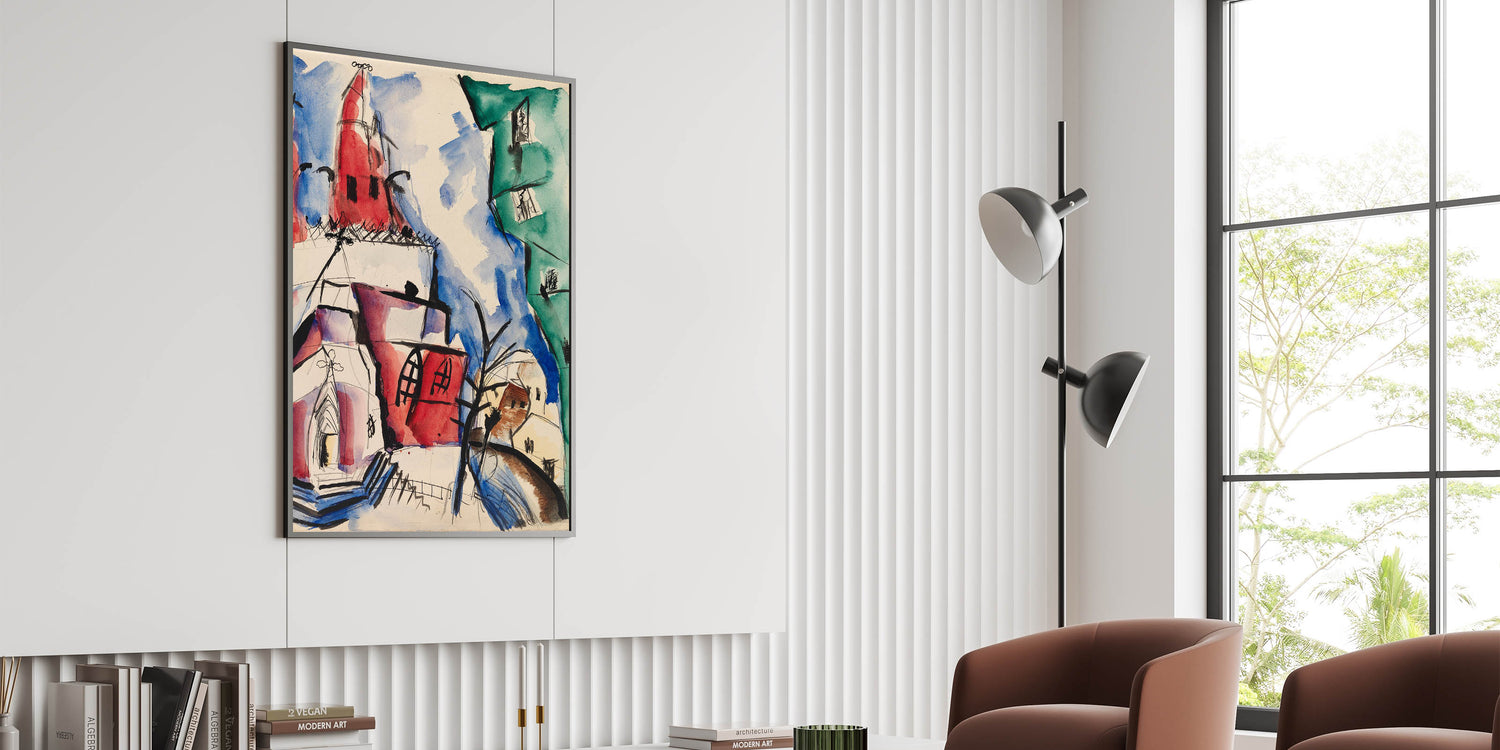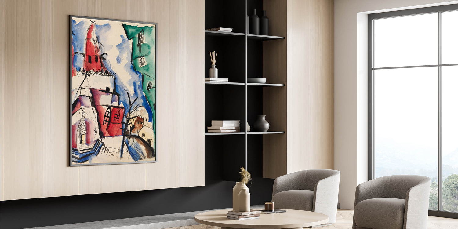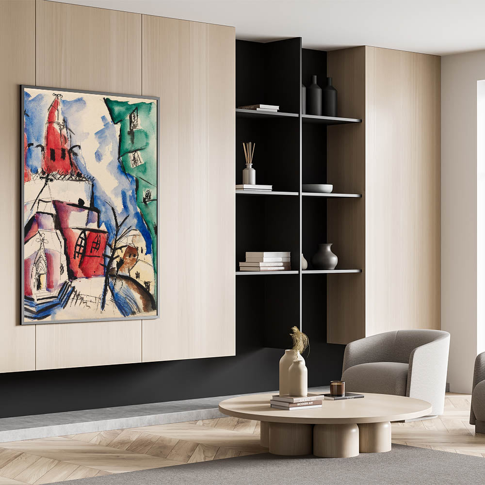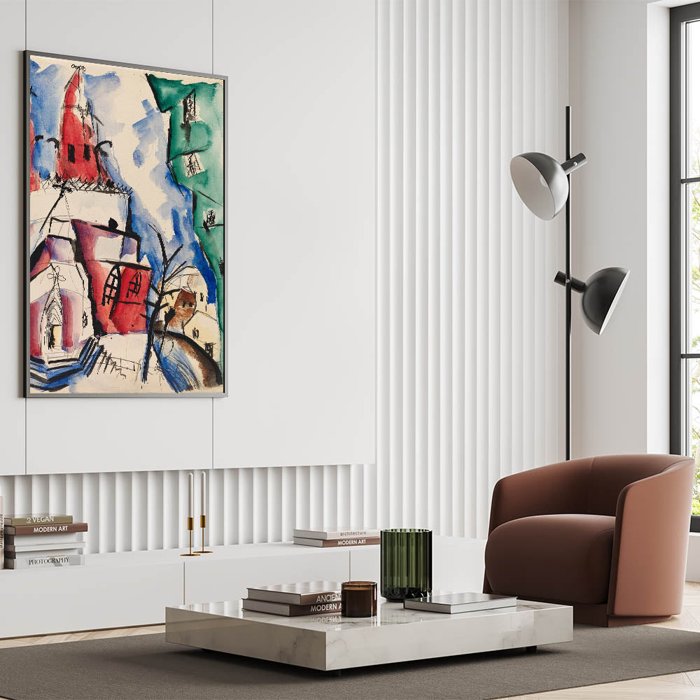 Infuse your home with vibrant energy and artistic charm with this modern wall art, featuring an abstract church scene painted in bold reds, blues, and greens. The dynamic brushstrokes and expressive lines bring life to the architecture, creating a whimsical and dramatic composition. Perfect for lovers of contemporary art, this piece adds a striking focal point to any room.