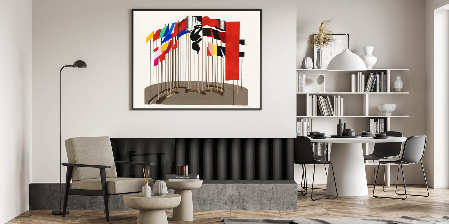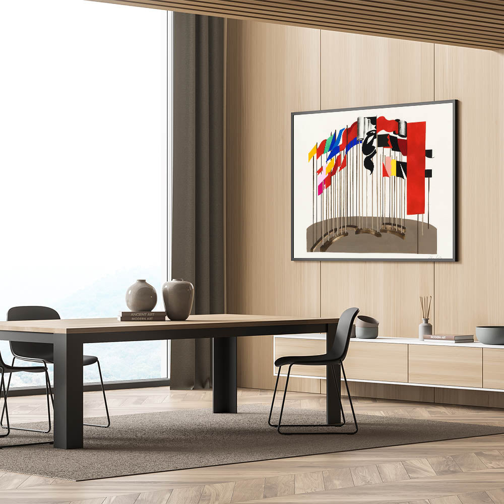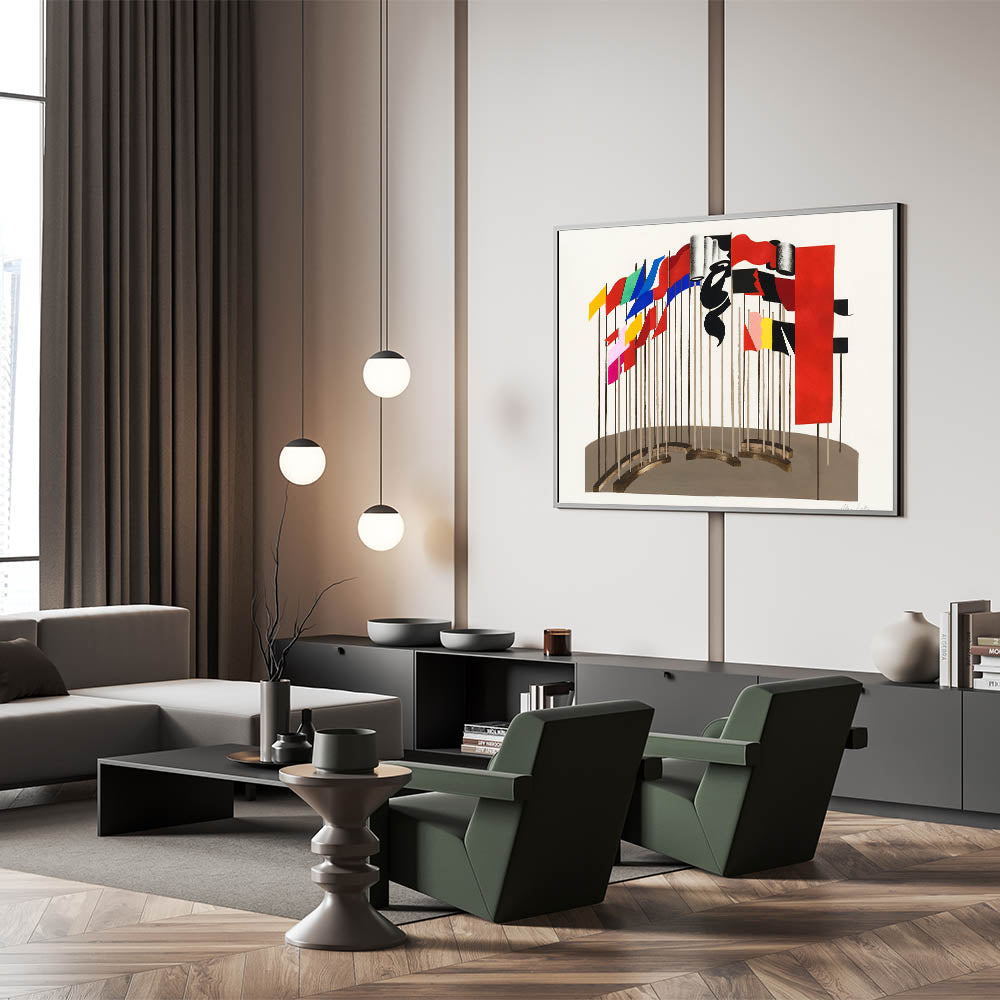 - Design: Abstract display of flags in vibrant, modern tones, perfect for minimalist interiors.