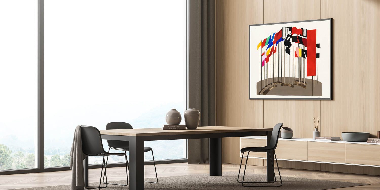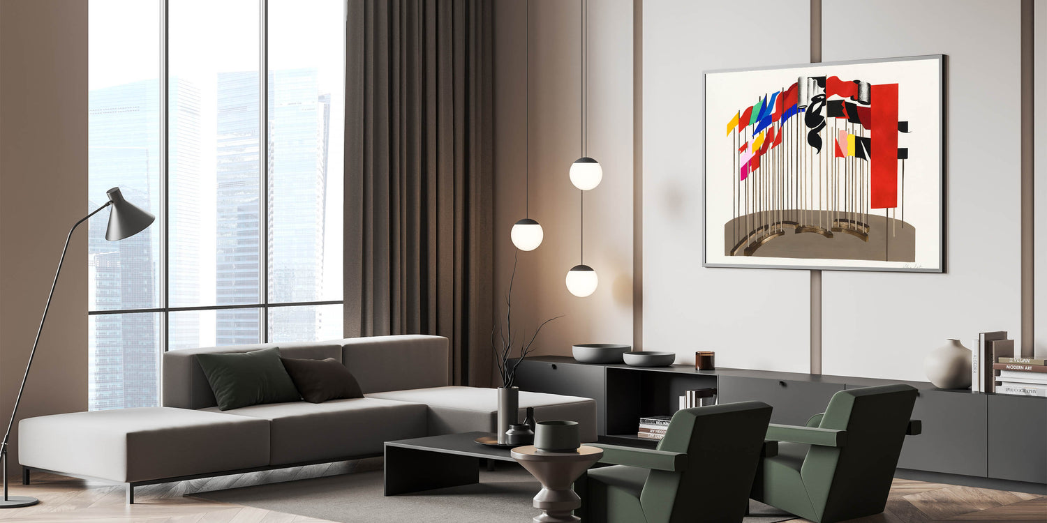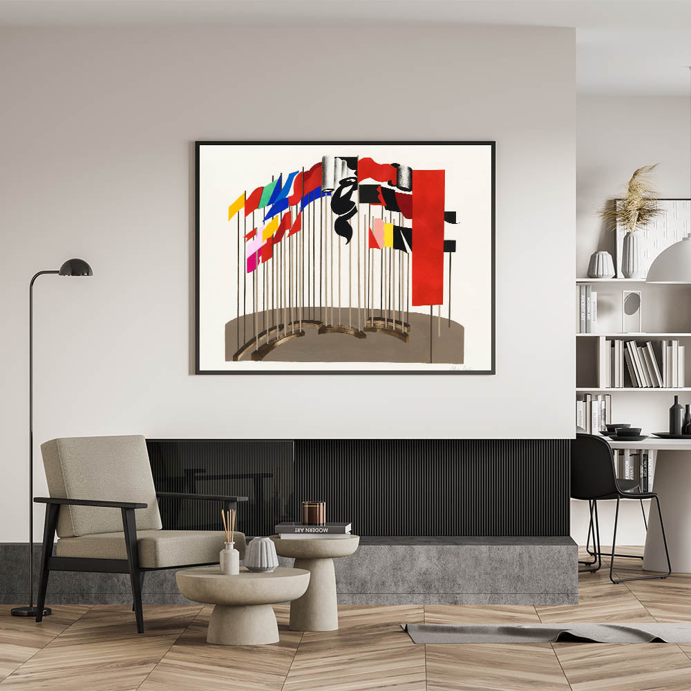 - Design: Abstract display of flags in vibrant, modern tones, perfect for minimalist interiors.