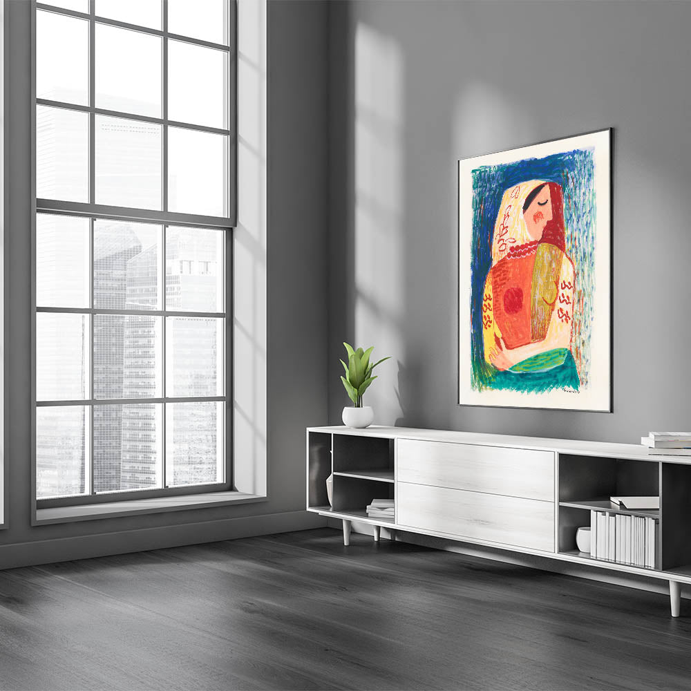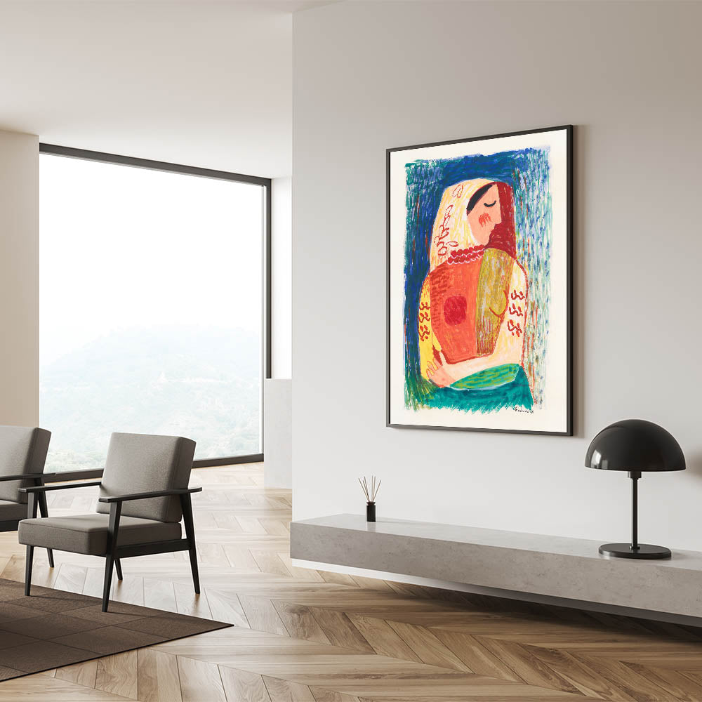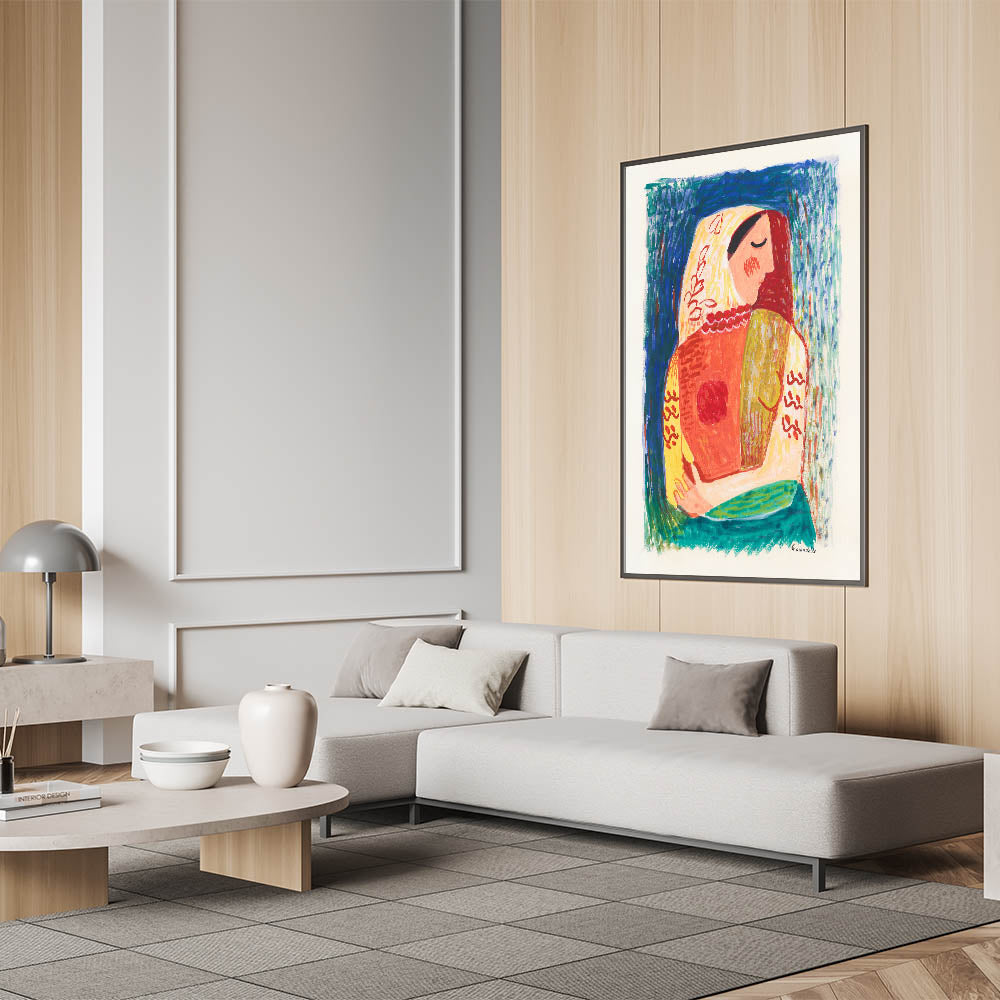 Celebrate artistic expression with Modern Wall Art, featuring Woman (1938) by Mikuláš Galanda. This striking illustration blends vivid colors and bold patterns to create a dynamic portrait of femininity and grace. The expressive brushstrokes and harmonious palette of blues, reds, and yellows make this artwork a captivating addition to trendy home decor and a must-have for lovers of unique modern art.